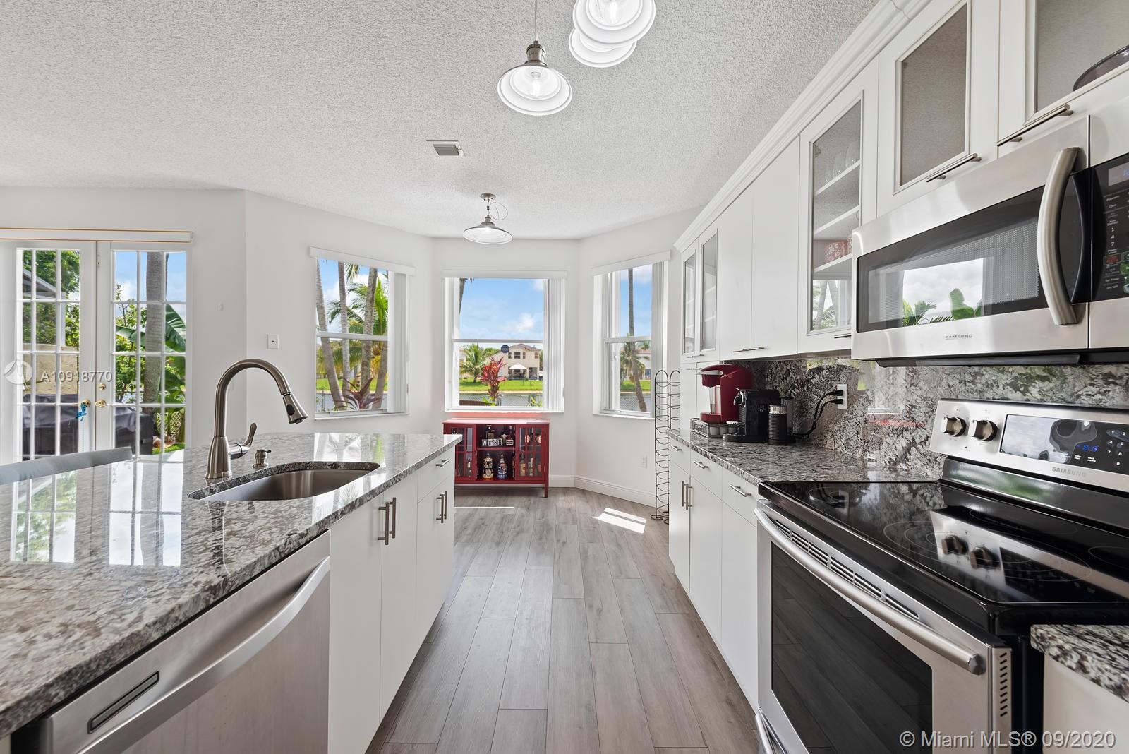 Towngate best buy! Beautifully renovated home on spectacular lakefront lot. Newly remodeled kitchen (2018) with granite countertops and stainless steel appliances. Wood-like waterproof vinyl flooring on lower level, wood laminate on stairway and second floor. Upgraded French doors, vaulted ceilings, updated verticals and partially updated bathrooms. Recently painted inside and out. Accordion shutters. Beautifully landscaped fenced-in backyard with lots of palms, fruit trees and added foliage. Exterior fountains and outdoor oven included. Community pools and amenities as well.