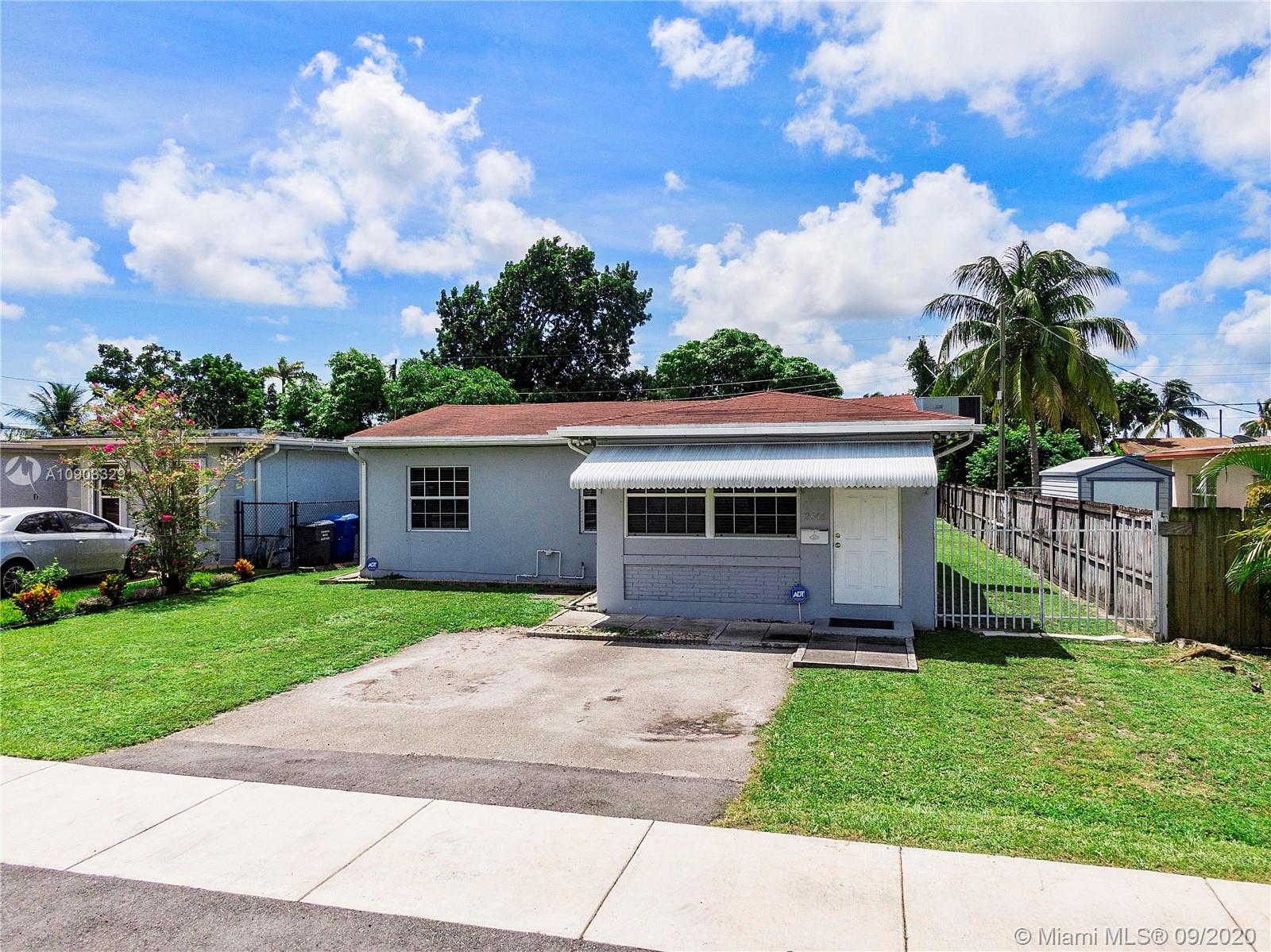 Charming 3 Bed, 1 Bath + Front Family/Florida Room Home On Oversized Fenced Lot Located In The Heart Of Hollywood. Open White Kitchen With Lots Of Cabinets, White Appliances, Tile Backsplash, Pantry & Pass-Through Window Towards The Living Room. This Home Features Tile Flooring Throughout. Front Family Room Leads Into Living Room/Dining Area. Hall Bath Has White Vanity, Tiled Shower, Mirrored Medicine Cabinet & Tiled Shower. Large Laundry/Utility Room Has Newer Washer & Dryer. Water Heater (2011). Large Private Fenced Yard With Screened Patio, Large Storage Shed (10X30), & 2nd Smaller Storage Shed. Long Driveway For Extra Parking And Large Side Yard And With Room to Park Cars. Hurricane Shutters. No HOA! Close To Beach, Hard Rock, Hospital, And More. This One Will Not Last!