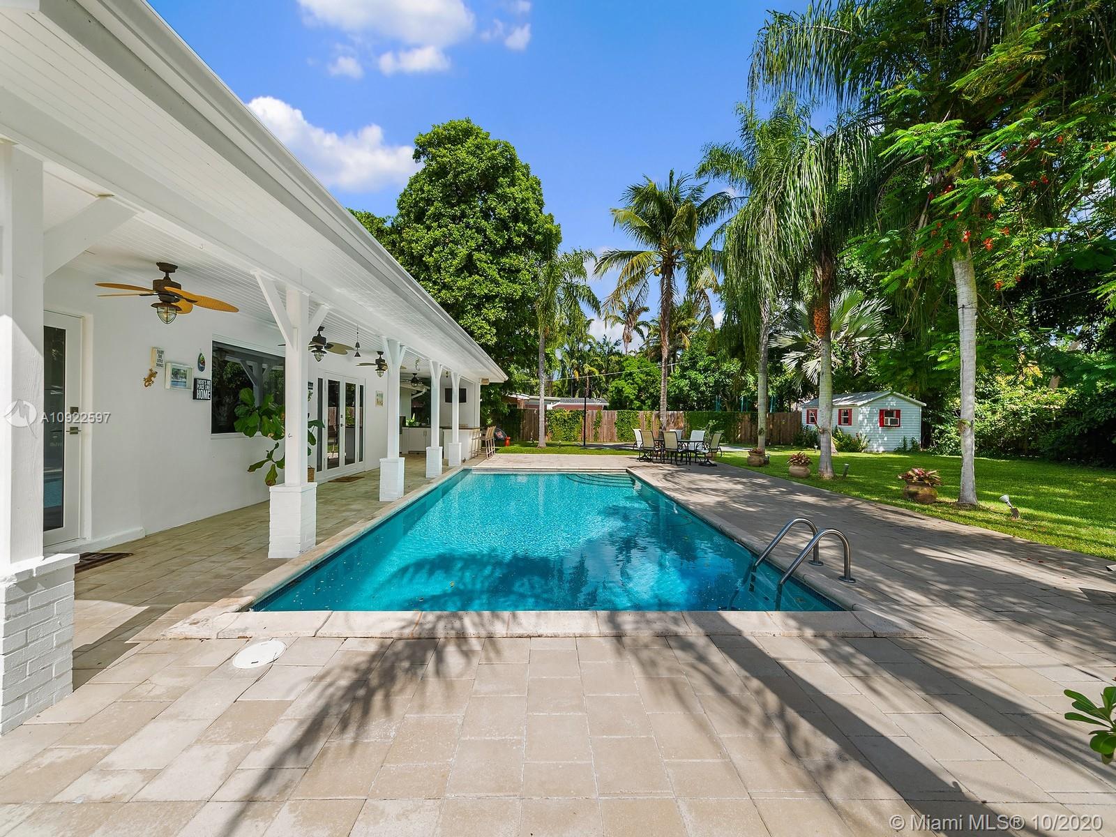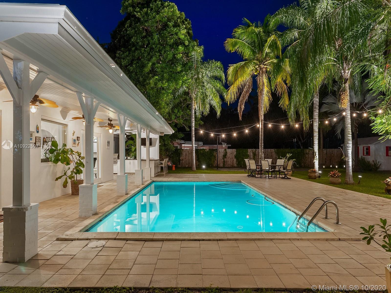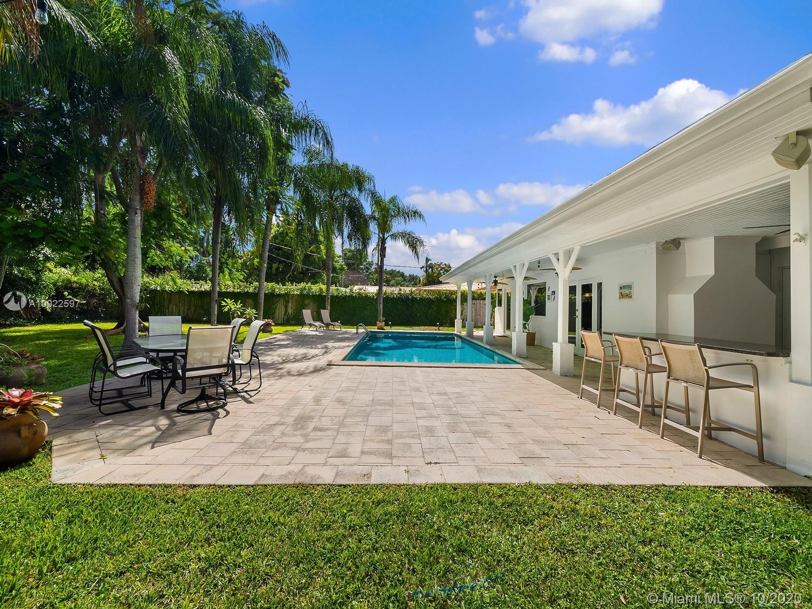 Welcome home! This perfect retreat awaits you, with stunning views of it’s spectacular yard and pool area. It offers 3 bedrooms (plus a den/home office), 2 baths, a brand new roof, impact windows, fireplace and spacious laundry room with tons of storage. It is nestled on a 15,000 SqFt. lot surrounded by luscious grounds accentuated by beautiful palm and royal Poinciana trees that provide additional seclusion. Indoor/outdoor living with full size summer kitchen overlooking the pool, basketball court and its manicured grounds. Amenities include half Basketball court, a custom built playhouse with brand new roof and a half bath, great for entertaining. Located in the Village of Pinecrest within a 5 min drive to all the best rated schools in the district, parks, shopping and entertaining.
