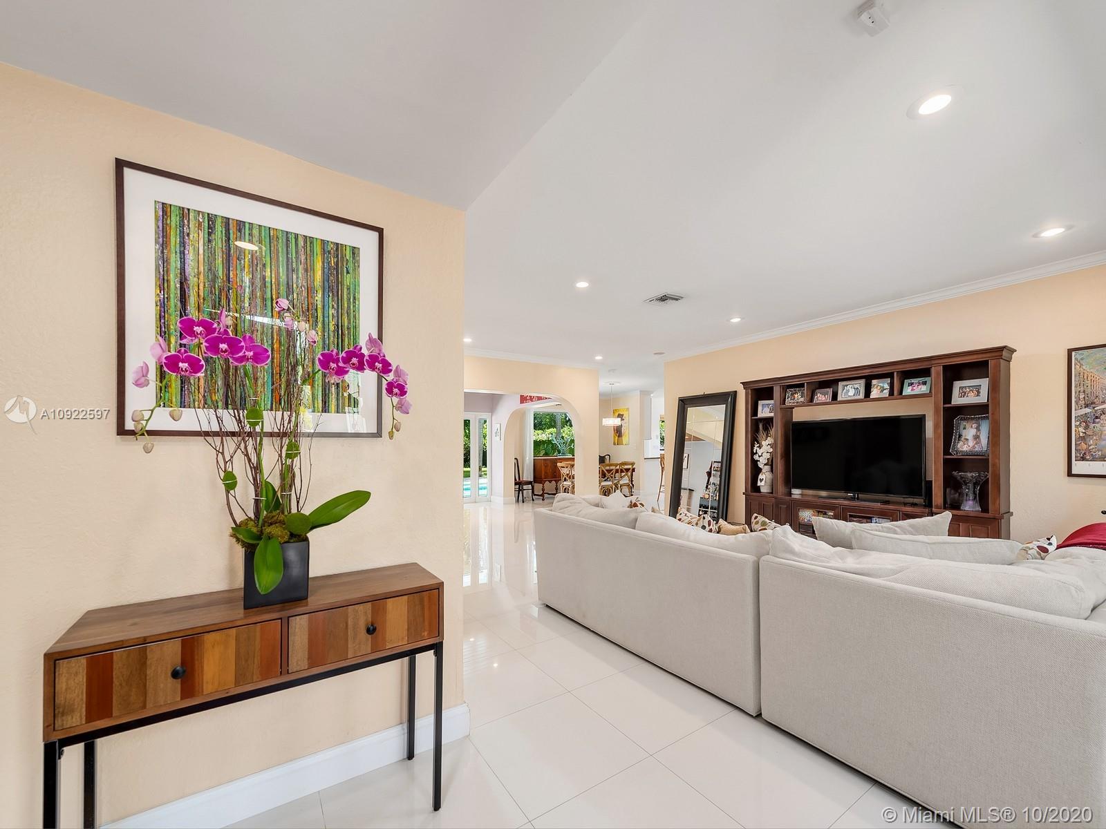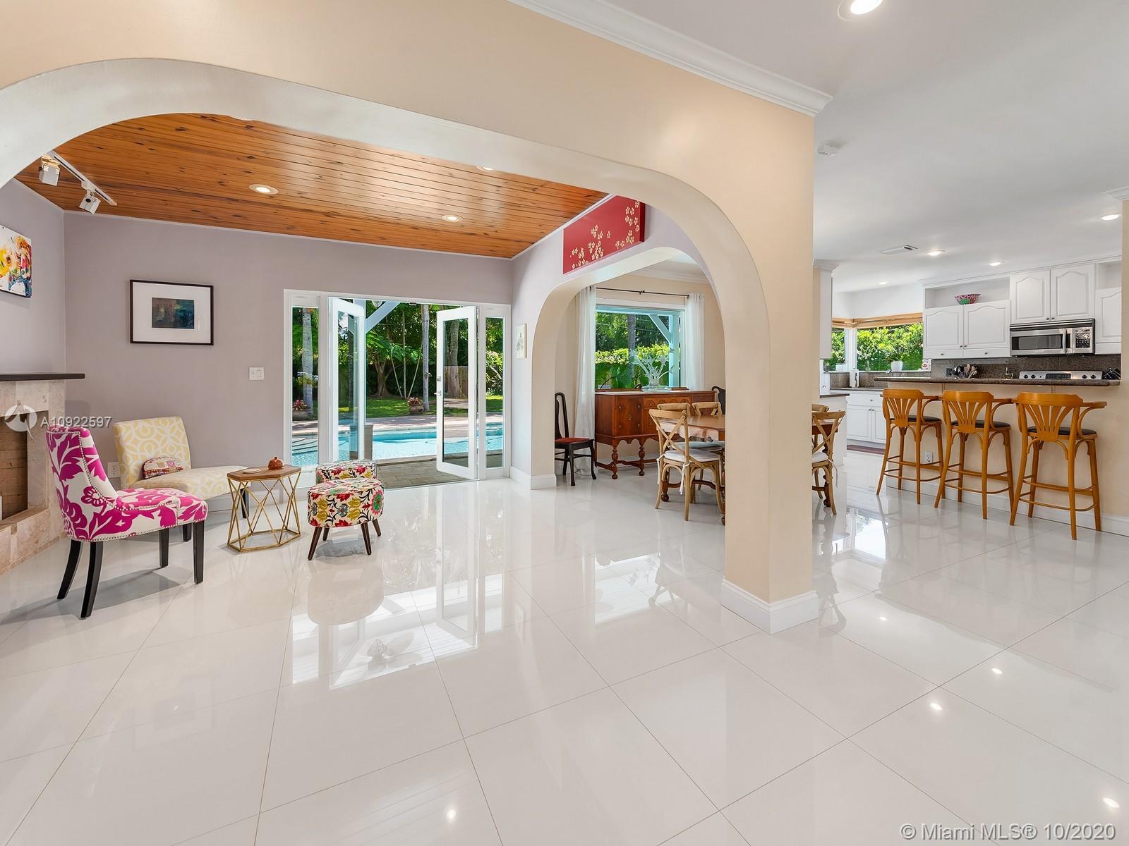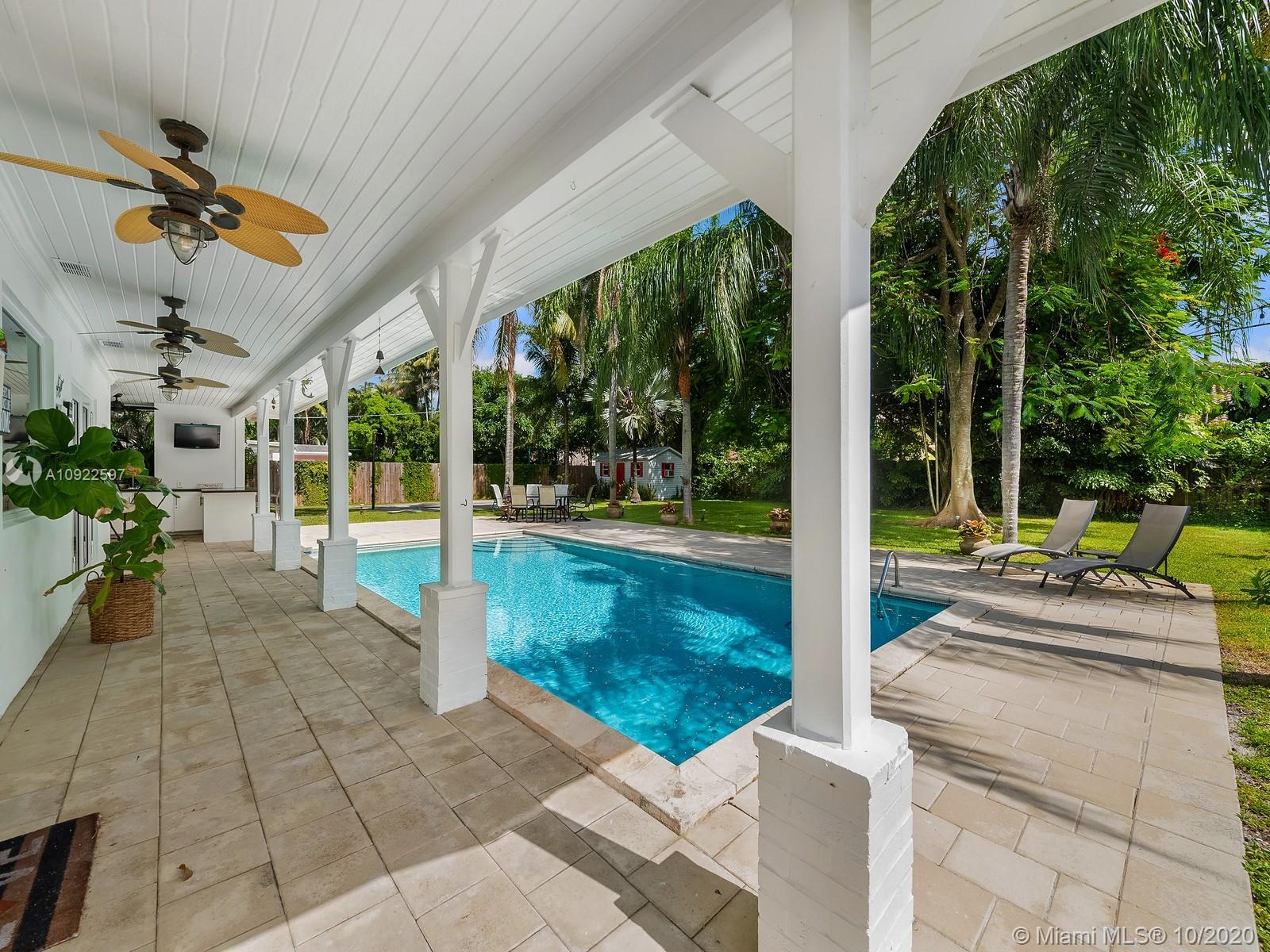 Welcome home! This perfect retreat awaits you, with stunning views of it’s spectacular yard and pool area. It offers 3 bedrooms (plus a den/home office), 2 baths, a brand new roof, impact windows, fireplace and spacious laundry room with tons of storage. It is nestled on a 15,000 SqFt. lot surrounded by luscious grounds accentuated by beautiful palm and royal Poinciana trees that provide additional seclusion. Indoor/outdoor living with full size summer kitchen overlooking the pool, basketball court and its manicured grounds. Amenities include half Basketball court, a custom built playhouse with brand new roof and a half bath, great for entertaining. Located in the Village of Pinecrest within a 5 min drive to all the best rated schools in the district, parks, shopping and entertaining.