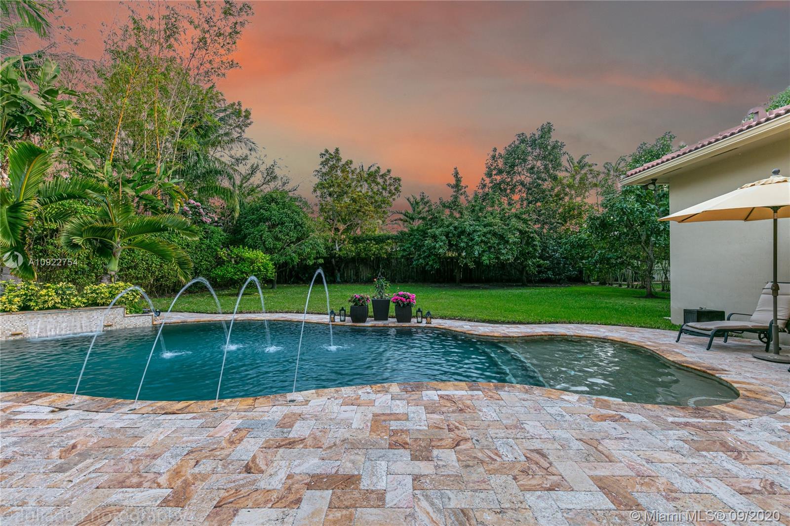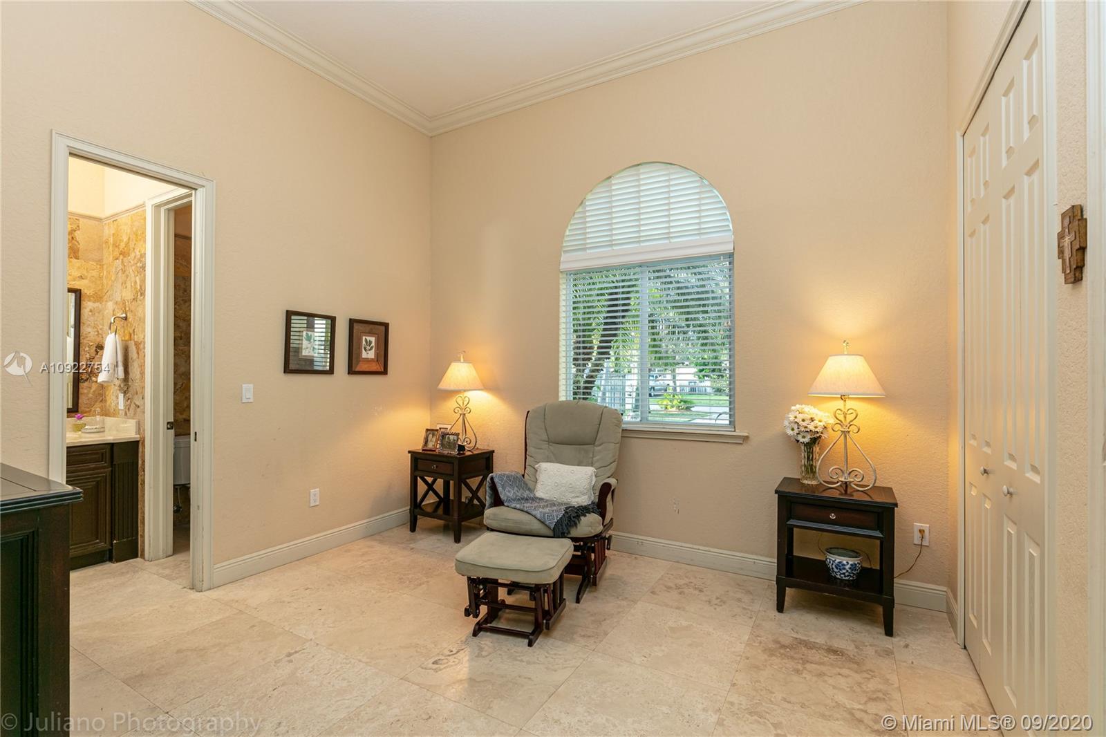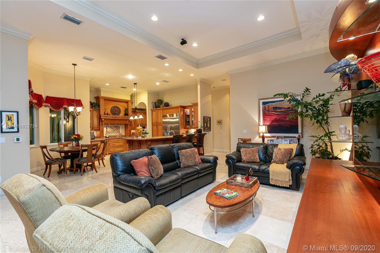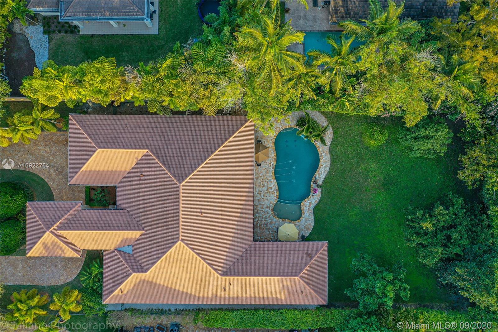 Priced to sell: One story Pinecrest estate with superb details!. Custom built by owners in 2007, first time on market. Mediterranean style 5/4, 2 car garage, soaring tray ceilings, travertine floors throughout, impact windows & doors, porte de cochere, free-form pool with cascade, all on lush 17K lot with fruit trees. This is THE perfect home for a family who loves to entertain! Spacious kitchen has custom built solid wood cabinets, S/S appliances 2 dishwashers, double sinks. It opens to FL room with built-in bar & TV wall unit. Inviting large master suite has his/her walk-in closets, vanities, jacuzzi + shower, it overlooks the gorgeous pool & backyard. Surround sound system inside and in patio remain. USE SHOW ASSIST, 24 hours notice a must. Bring your pickiest buyer, this home is a gem!