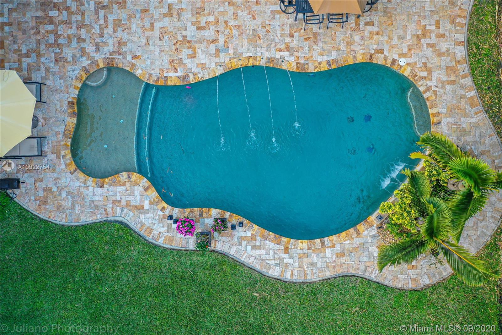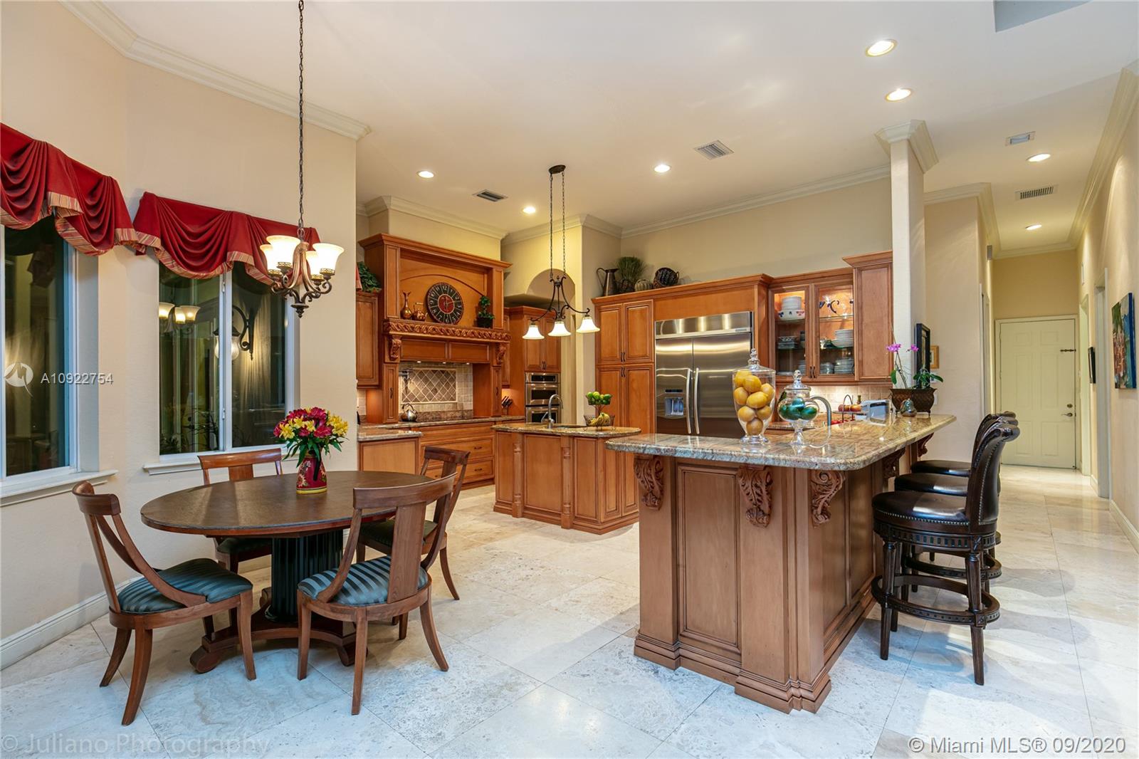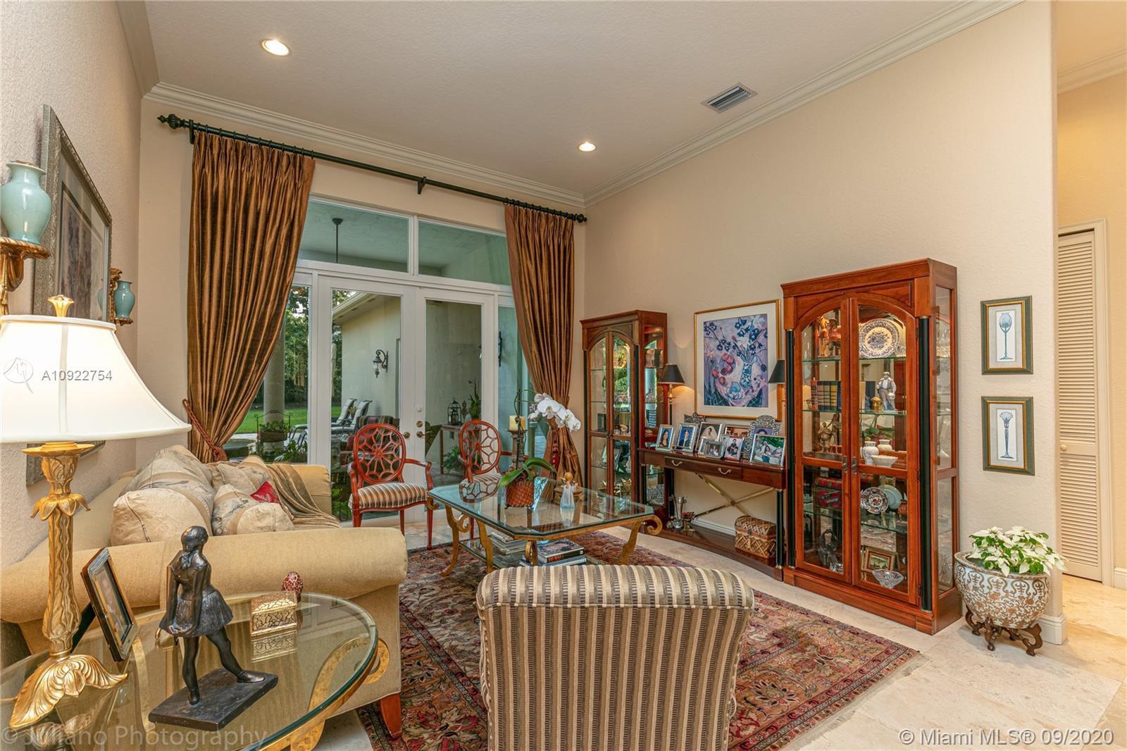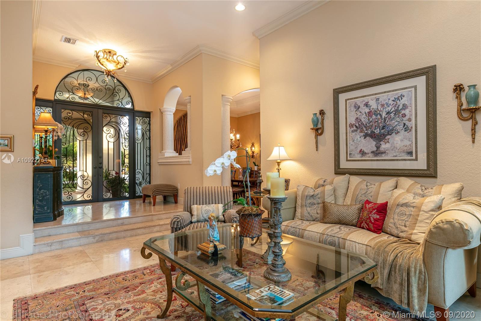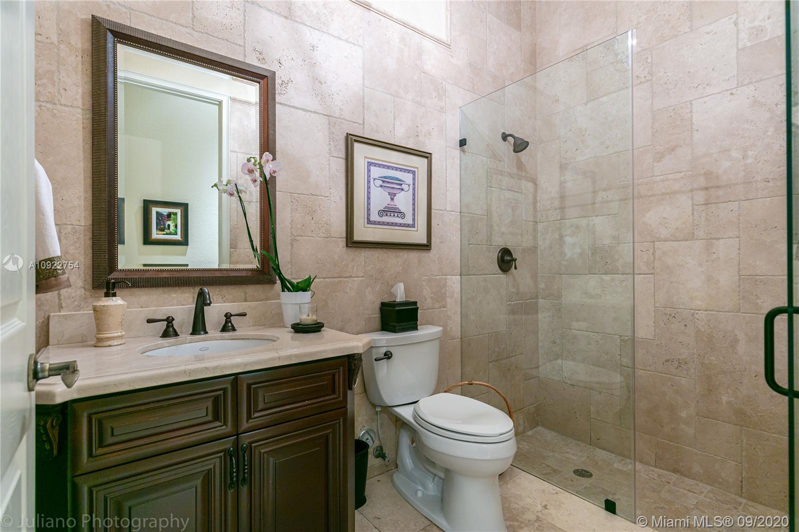 Priced to sell: One story Pinecrest estate with superb details!. Custom built by owners in 2007, first time on market. Mediterranean style 5/4, 2 car garage, soaring tray ceilings, travertine floors throughout, impact windows & doors, porte de cochere, free-form pool with cascade, all on lush 17K lot with fruit trees. This is THE perfect home for a family who loves to entertain! Spacious kitchen has custom built solid wood cabinets, S/S appliances 2 dishwashers, double sinks. It opens to FL room with built-in bar & TV wall unit. Inviting large master suite has his/her walk-in closets, vanities, jacuzzi + shower, it overlooks the gorgeous pool & backyard. Surround sound system inside and in patio remain. USE SHOW ASSIST, 24 hours notice a must. Bring your pickiest buyer, this home is a gem!