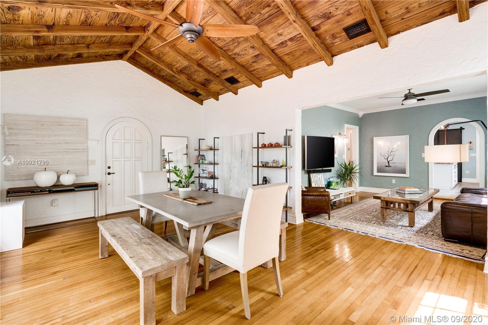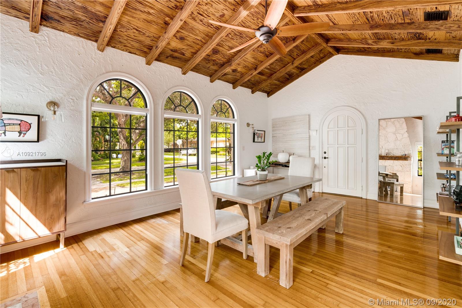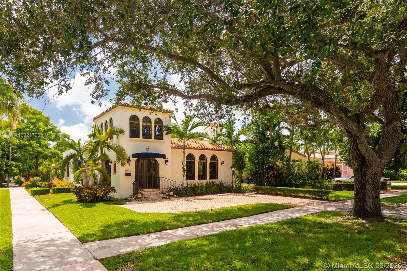 Beautiful Mediterranean style home designed by one of Coral Gables’ most renowned architects, H. George Fink, offers modern comfort with classic style. Lovely restored and updated elements highlight the home’s wonderful layout. A gated loggia provides the entry into a spectacular room with a fireplace, pecky cypress ceiling, and grand windows overlooking the garden. The home features 2 bedrooms and 2 recently renovated bathrooms as well as a second-floor office/studio. There is a newly updated kitchen with adjoining laundry. The property also includes a charming courtyard for BBQ’s and outdoor entertaining and a connecting breezeway to a 1/1 guest house & an air-conditioned garage. Plumbing and electrical have been updated. Almost all windows are impact. A Very Special Home.