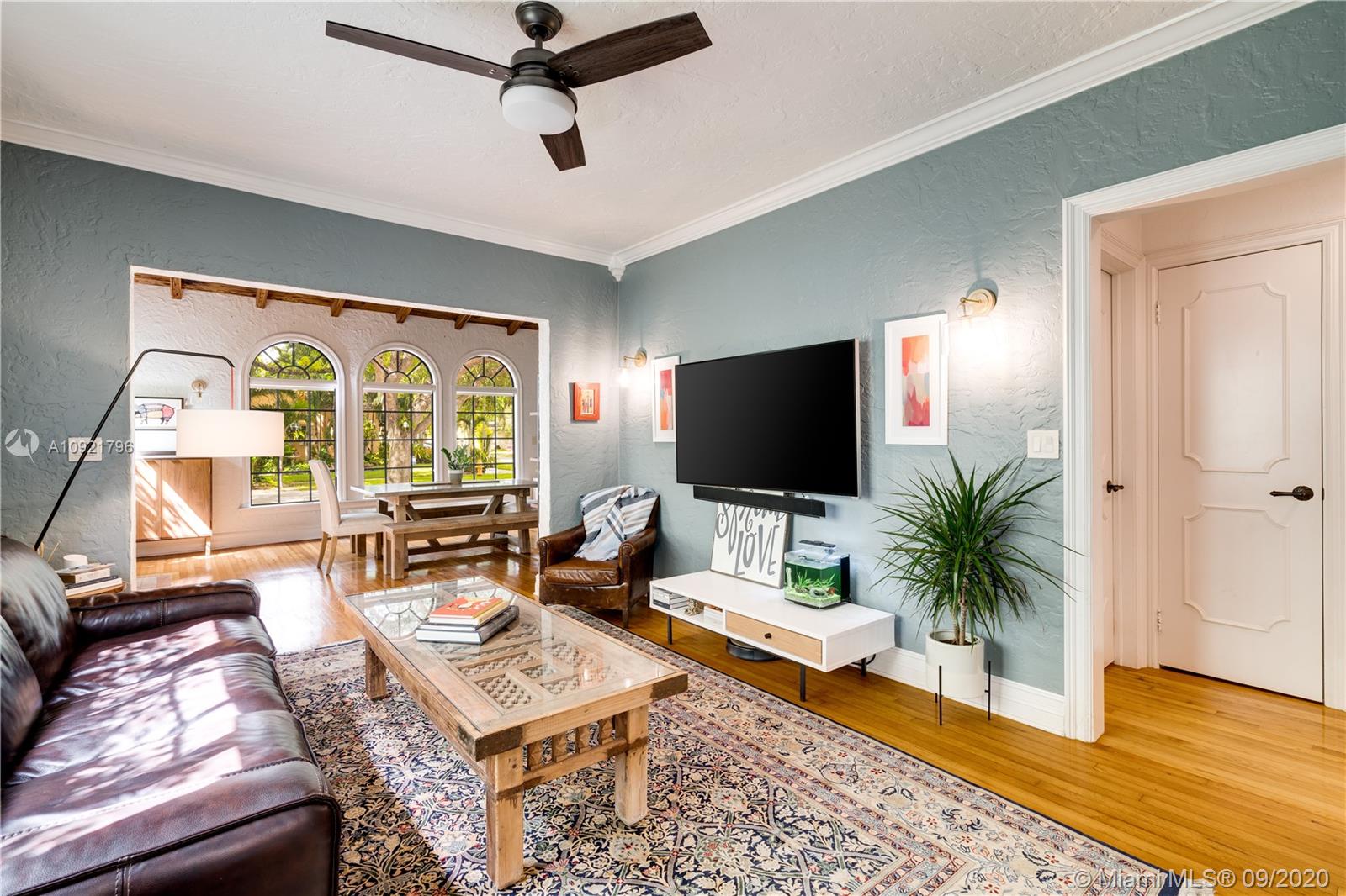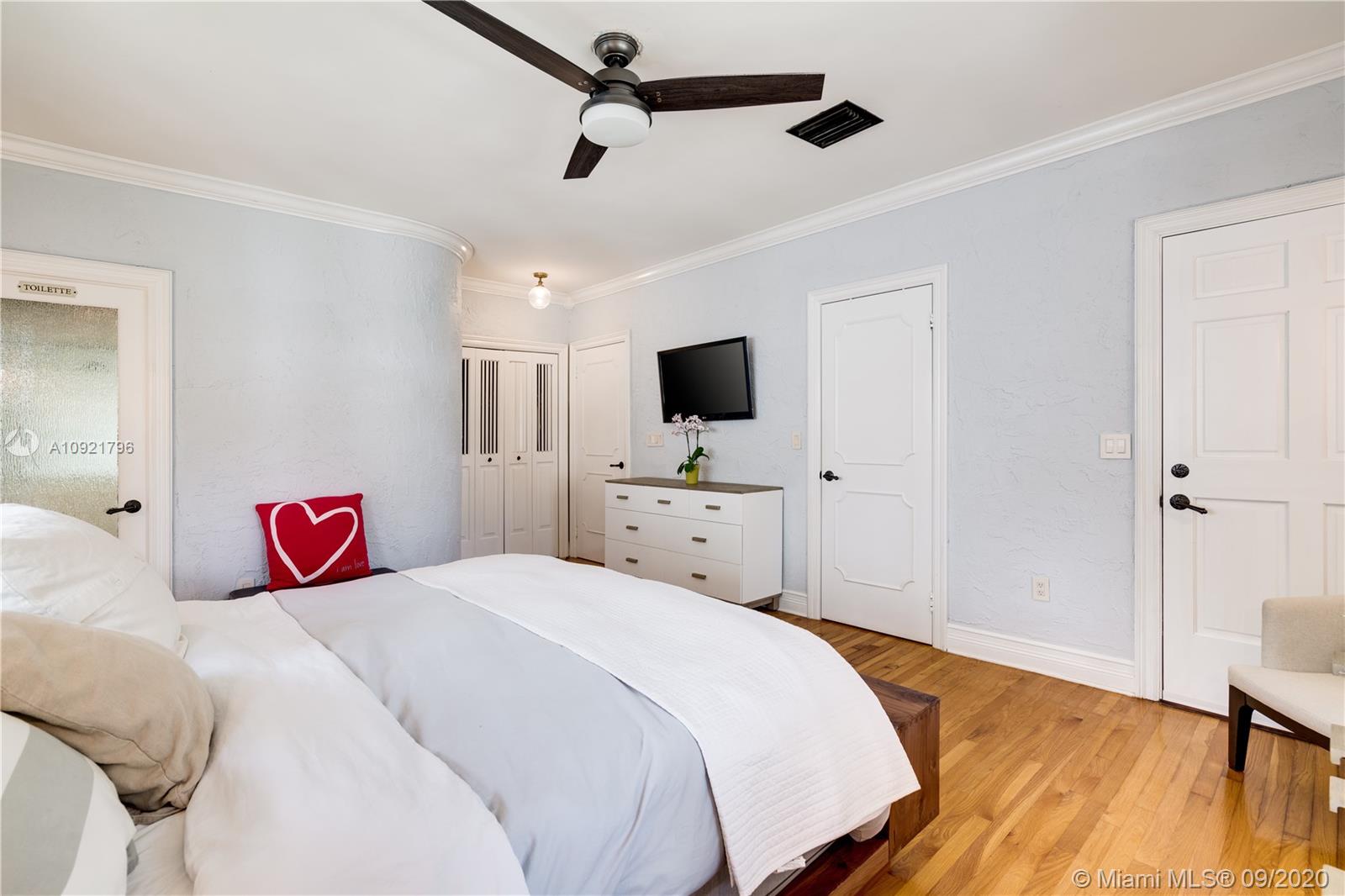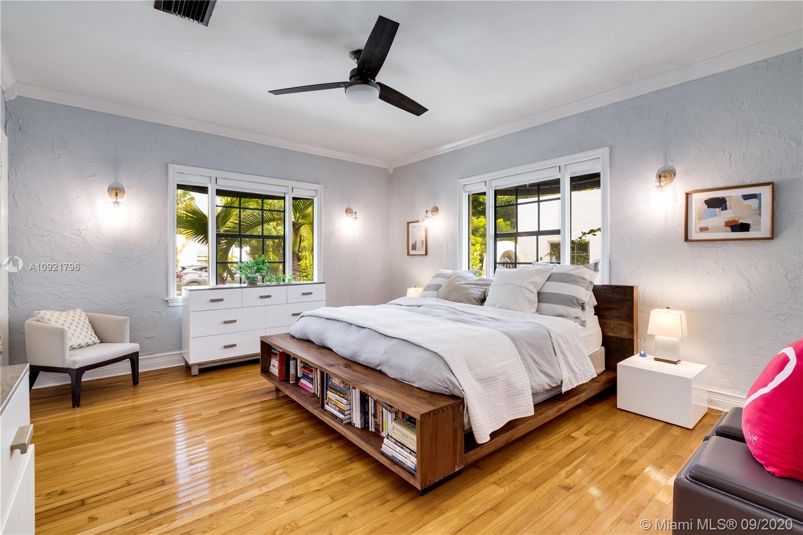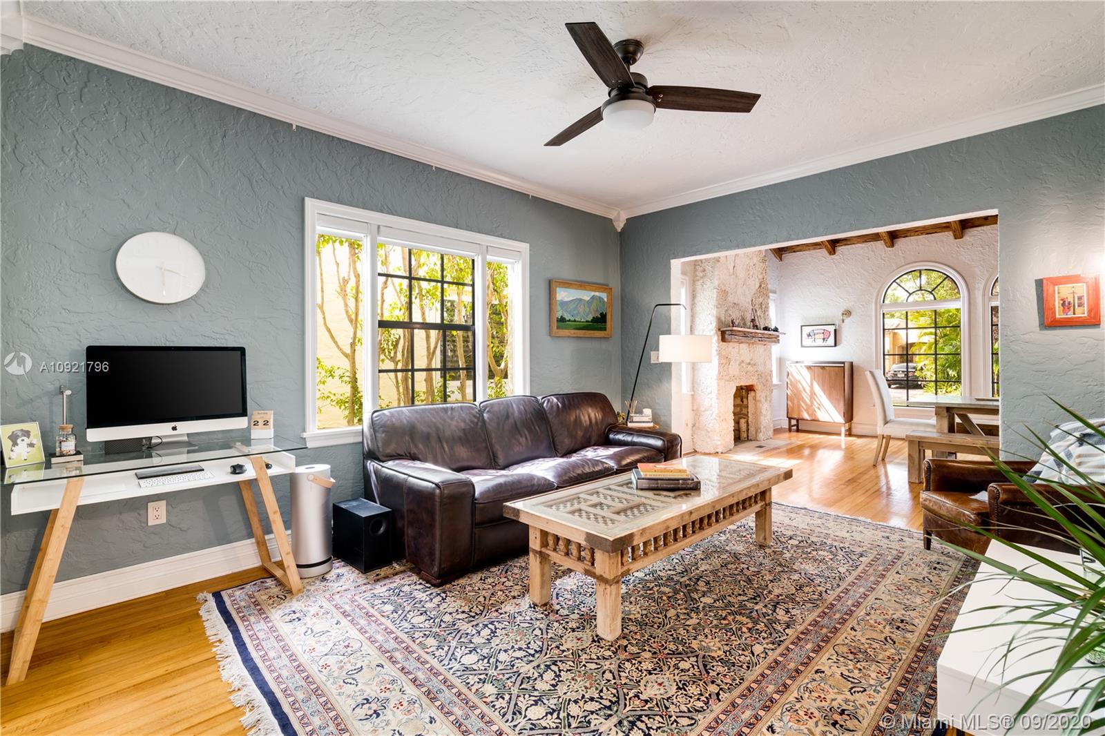 Beautiful Mediterranean style home designed by one of Coral Gables’ most renowned architects, H. George Fink, offers modern comfort with classic style. Lovely restored and updated elements highlight the home’s wonderful layout. A gated loggia provides the entry into a spectacular room with a fireplace, pecky cypress ceiling, and grand windows overlooking the garden. The home features 2 bedrooms and 2 recently renovated bathrooms as well as a second-floor office/studio. There is a newly updated kitchen with adjoining laundry. The property also includes a charming courtyard for BBQ’s and outdoor entertaining and a connecting breezeway to a 1/1 guest house & an air-conditioned garage. Plumbing and electrical have been updated. Almost all windows are impact. A Very Special Home.