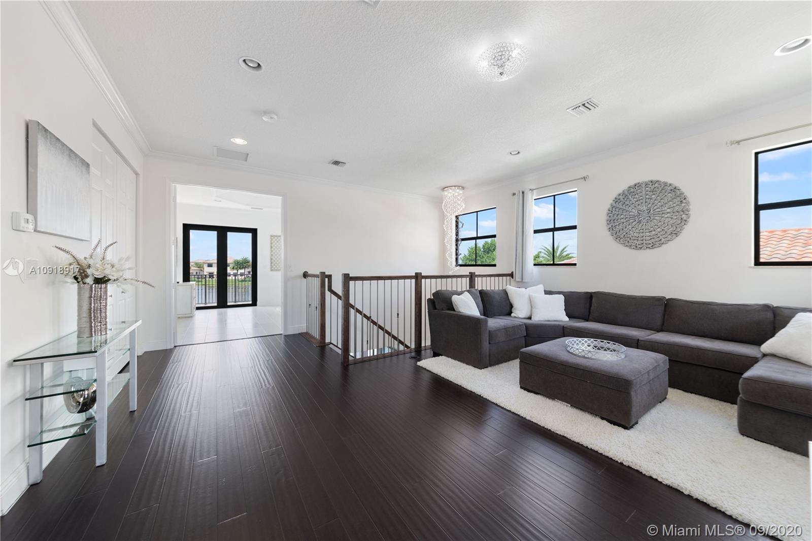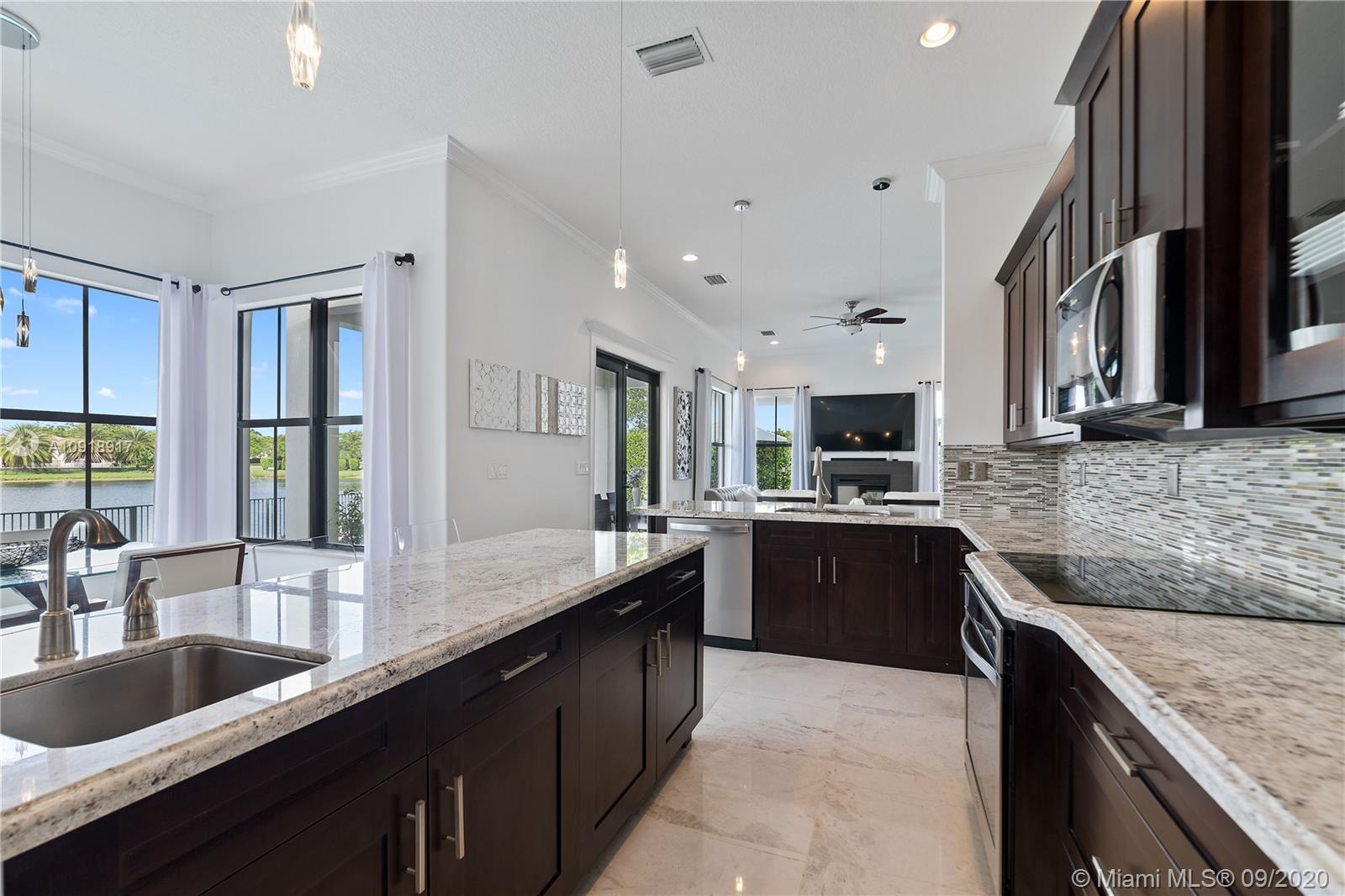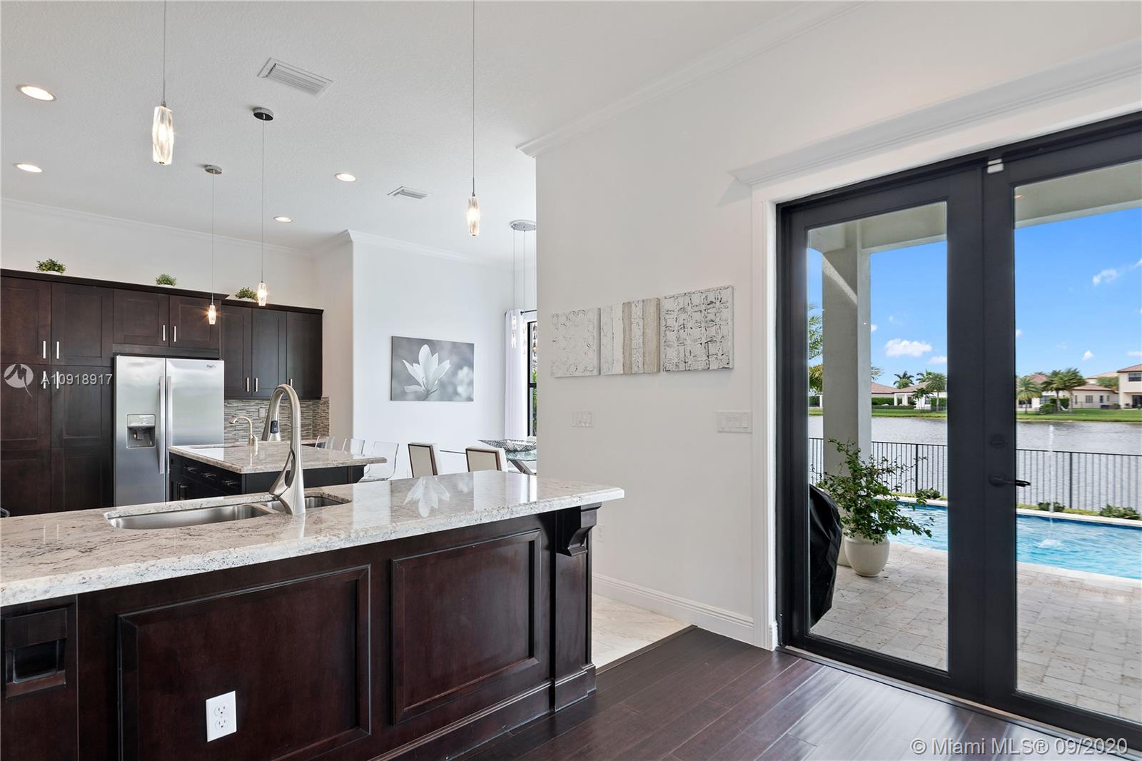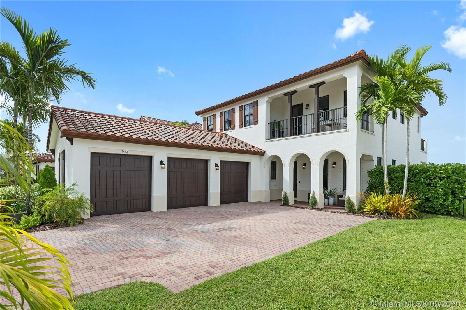 LOOK NO FURTHER! THIS 4 BEDROOM /3 BATHS WATERFRONT HOME WILL NOT DISAPPOINT! UPON ENTERING THE HOME YOU WILL IMMEDIATELY APPRECIATE THE BREATHTAKING VIEW OF THE LAKE AND POOL THAT CAN BE SEEN WHETHER YOU ARE MAKING BREAKFAST OR SIMPLY RELAXING ON THE COUCH.THIS TORTUGA MODEL OFFERS A GUEST SUITE ON THE FIRST LEVEL, WELL APPOINTED KITCHEN WITH DESIGNATED DINING SPACE AND TRAVERTINE/MARBLE FLOORS. ON THE SECOND LEVEL YOU WILL ARRIVE AT AN OVERSIZE LOFT HIGHLIGHTED BY DARK WOOD FLOORS LEADING TO ADDITIONAL BEDROOMS. THE OWNER'S SUITE OFFERS AN EXTENDED TERRACE OVERLOOKING THE LAKE & POOL HIGHLIGHTING MAGNIFICENT SUNSETS. ADDITIONAL FEATURES INCLUDE CUSTOM CLOSETS, CUSTOM WINDOW TREATMENTS, LIGHTING, 3 CAR GARAGE AND AN EXCEPTIONALLY LARGE DRIVEWAY.