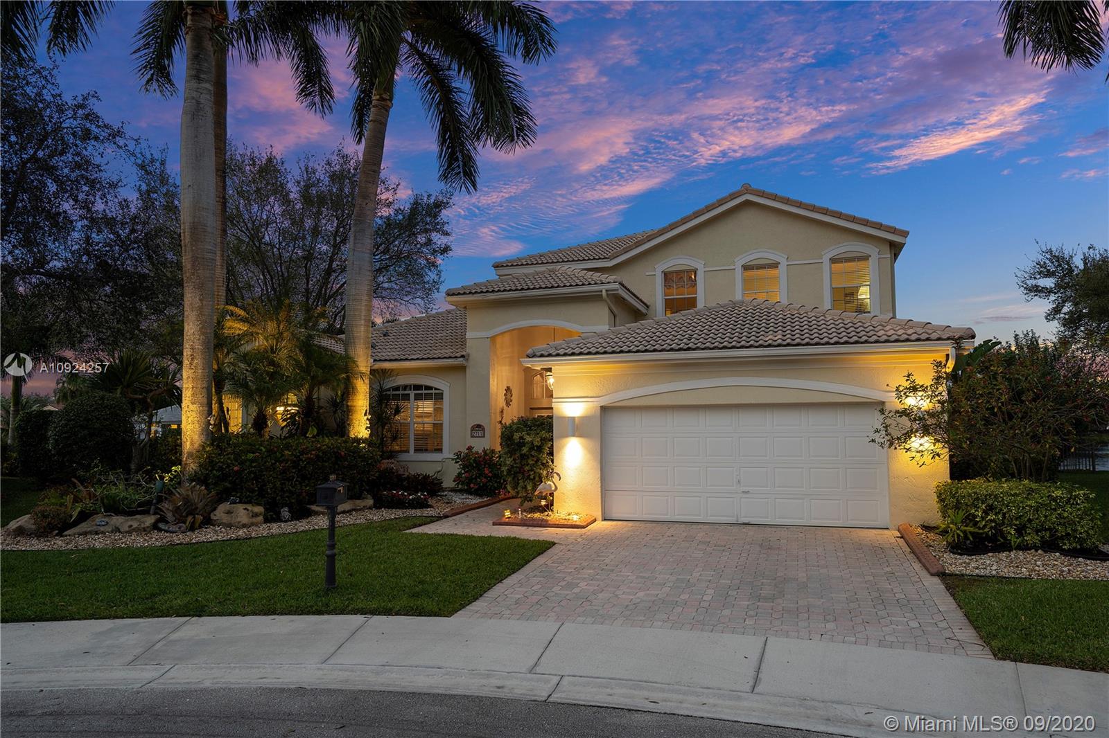 Weston Hills C.C. 16,095 sf pie shaped cul-de-sac lot w/gorgeous lake views 5B/4B 3834 Sq ft home boasts a Lg extended paved patio custom pool waterfalls new led lights, hot tub fenced Perfect for Entertaining! Surround sound system! Grand Master BR 1st Fl w/3 BR upstairs w/5th BR downstairs used as office/den w/custom closets/built-in Lg neutral diagonal Tile throughout, Carpet in BR. Spacious, Huge dine in Gourmet Kitchen w Granite/New Appliances/extra tall cabinetry/wine cooler/Lg island & Bar/Built in Elec. Sweeper/Vacuum System Formal Dining & Living Room WHCC an exclusive family-oriented community in City of Weston w/2 pristine 18-hole championship golf courses, known as Weston Hills Golf and Country Club. "A" rated schools and easy access to the hwy. AC's 5 yrs. Appraised 9/2020.