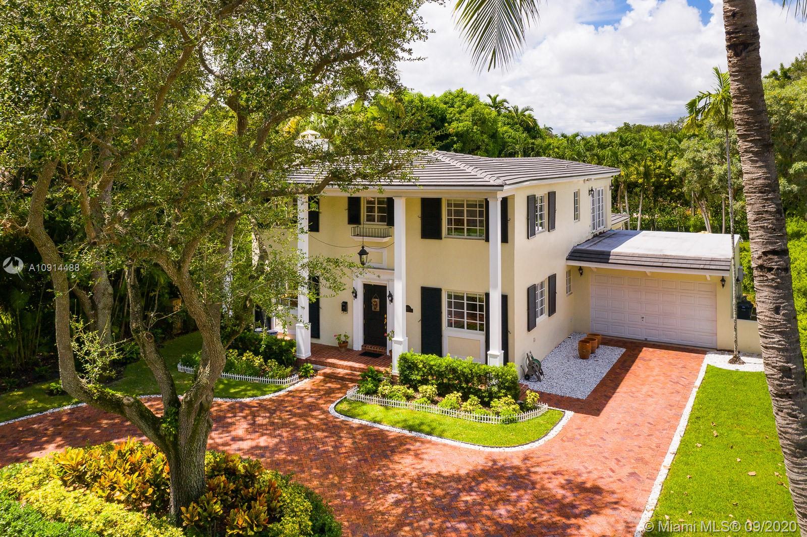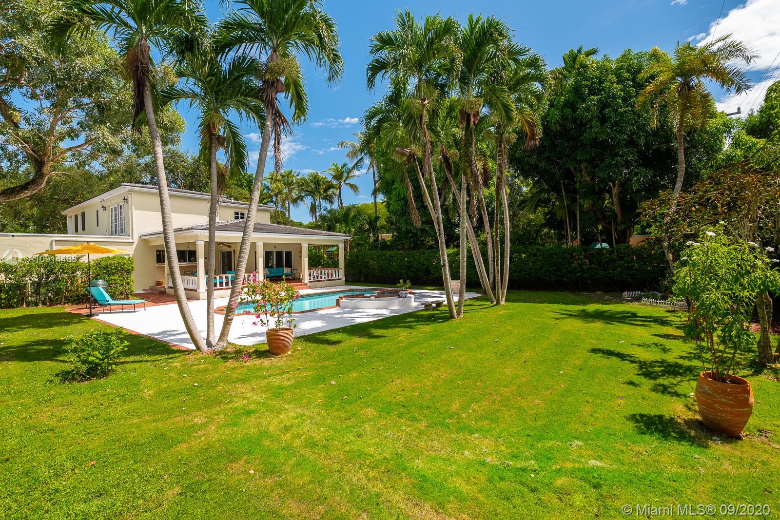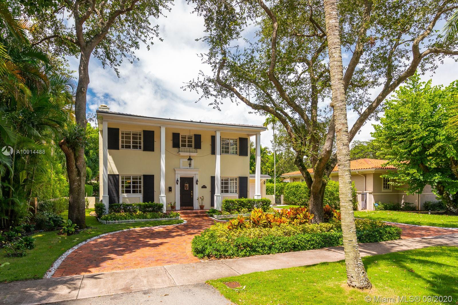 Spacious, beautifully maintained 4BD/4.5BA Colonial on one of the best streets in Coral Gables. Perfect for elegant entertaining and relaxed daily life. Enjoy refined architectural detail in the formal living and dining rooms. The spectacular open kitchen includes SS appliances, breakfast bar and a Florida room. Stately den is the perfect home office. Upstairs bedrooms include two lavish suites with en suite spa baths, walk-in closets and access to a private deck. Outside, an expansive covered veranda opens to the pool/spa and tropical grounds. New roof, saltwater pool system and pool deck plus impact windows and generator. Regal motor court and façade with shutters and tall columns create a gracious first impression. Close to outstanding golf, tennis and excellent shopping and dining.