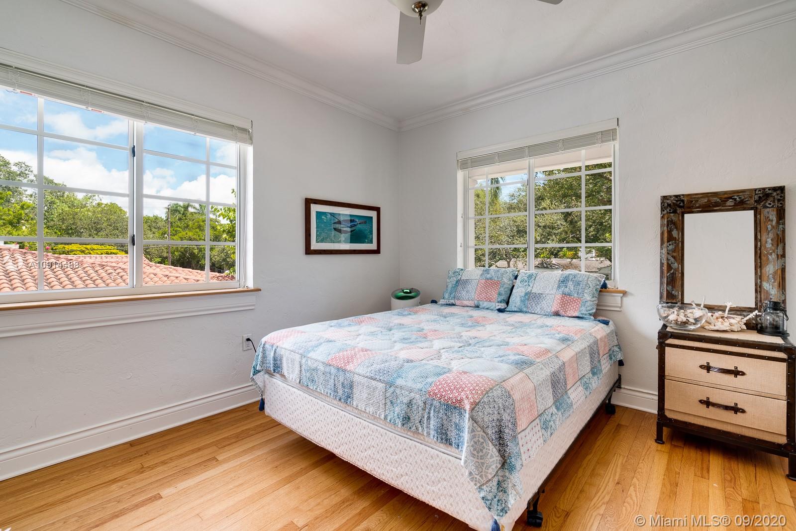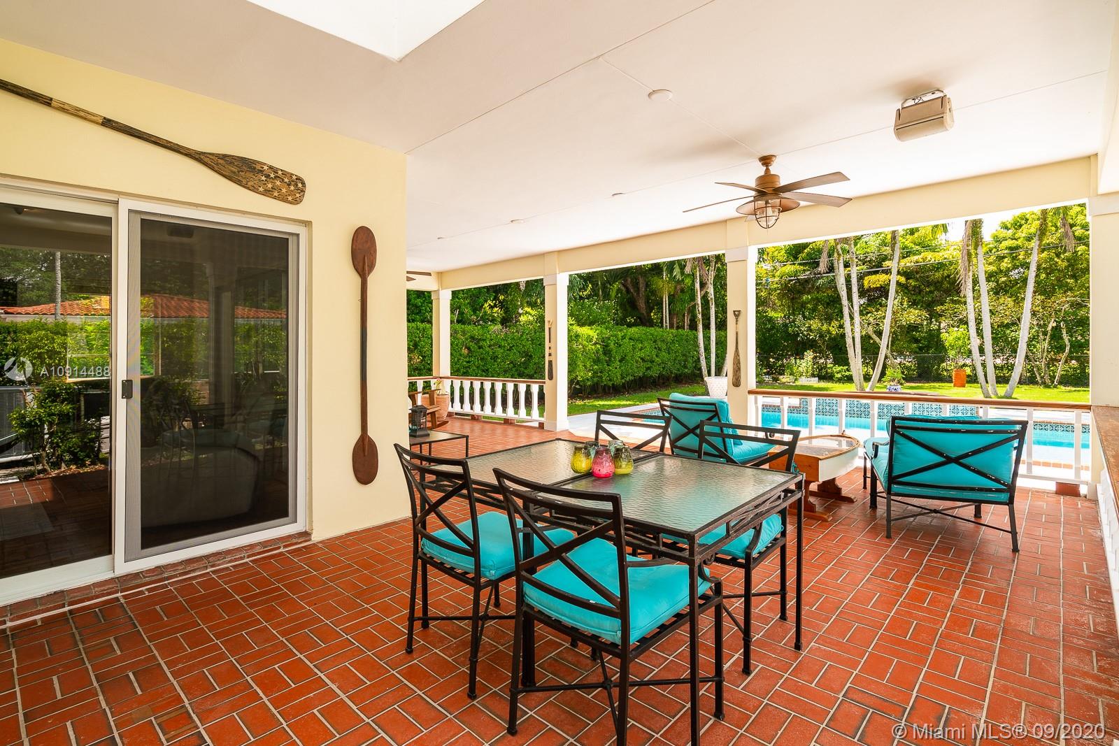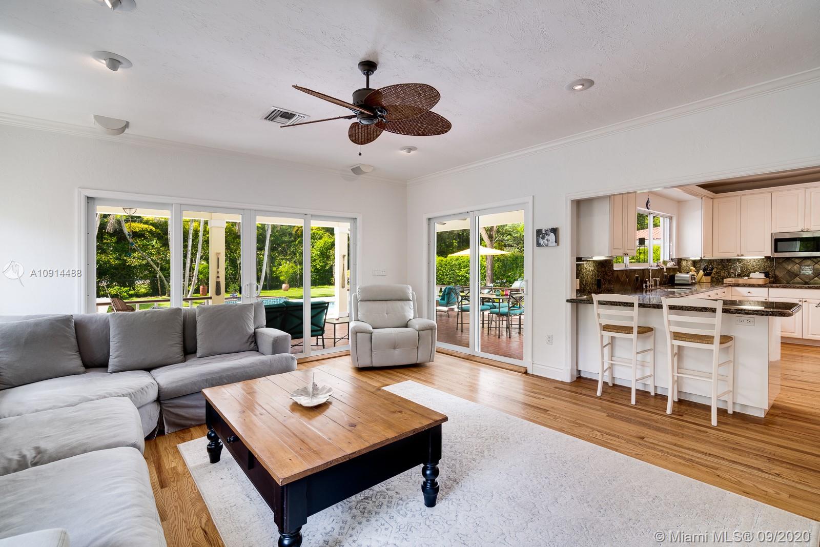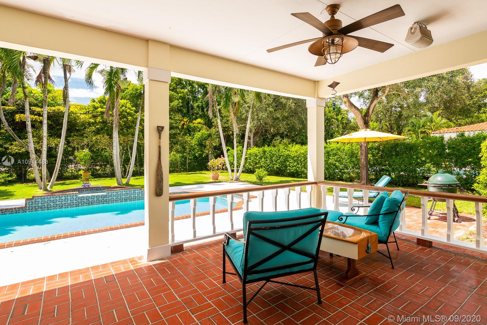 Spacious, beautifully maintained 4BD/4.5BA Colonial on one of the best streets in Coral Gables. Perfect for elegant entertaining and relaxed daily life. Enjoy refined architectural detail in the formal living and dining rooms. The spectacular open kitchen includes SS appliances, breakfast bar and a Florida room. Stately den is the perfect home office. Upstairs bedrooms include two lavish suites with en suite spa baths, walk-in closets and access to a private deck. Outside, an expansive covered veranda opens to the pool/spa and tropical grounds. New roof, saltwater pool system and pool deck plus impact windows and generator. Regal motor court and façade with shutters and tall columns create a gracious first impression. Close to outstanding golf, tennis and excellent shopping and dining.