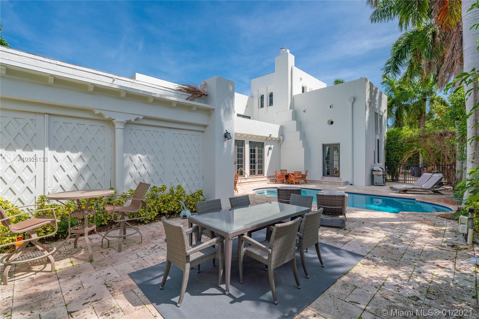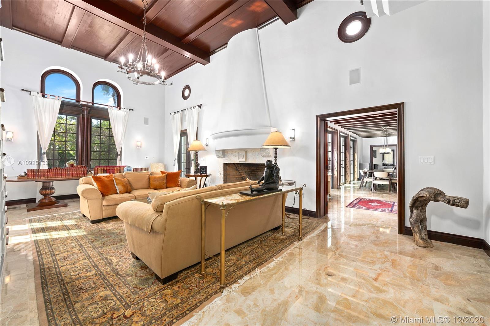Luxury, elegance, and comfort are carried throughout this Grand Mediterranean Masterpiece. Timelessly designed with marble, granite, wood beam ceilings, and millwork, the craftsmanship of this villa is unparalleled. Entering, you’ll be greeted by the dramatic 16” foot ceilings in the main living room together with multiple teaks and arched windows bringing great room light. Keep floating to the open dining/kitchen area where once again you have great light coming in from the patio/pool area. In addition to this expansive open-concept space, the grand kitchen island is perfect for entertaining your family and guests. The perfect flow of this 5-bedroom home is ideal for a large family. You'll be happy to call this your next home.