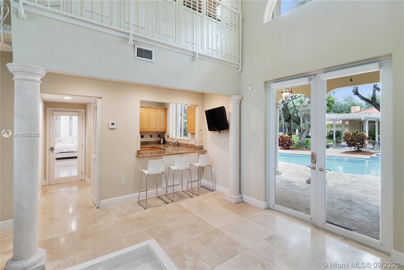 Exceptional, gated one-story estate on quiet cul-de-sac in Prestigious N. Pinecrest. 1-acre of well-manicured lush landscaping, a separate guesthouse, treehouse, spacious driveway & an exciting pool area. Newly, freshly painted main house includes 5 Bed/5.5 baths, WFH office, all BRAND NEW high impact windows & doors, marble & wood floors throughout. Formal dining, open concept maple & granite kitchen; great family room w/ fireplace that overlooks the pristine grounds. Oversized en-suite master retreat; large spa tub & separate shower w/ his & her walk in closets. Outdoor lounging/entertaining areas, a fire pit & a relaxing pool & hot tub. A lovely gazebo connects both the main & guest house w/ a romantic setting. Special 2-story, 1,300 SF guesthouse, perfect for guests or home school