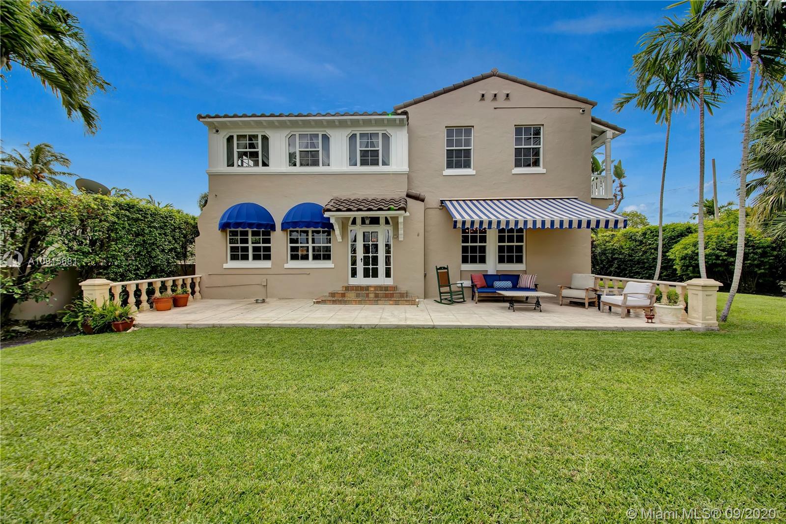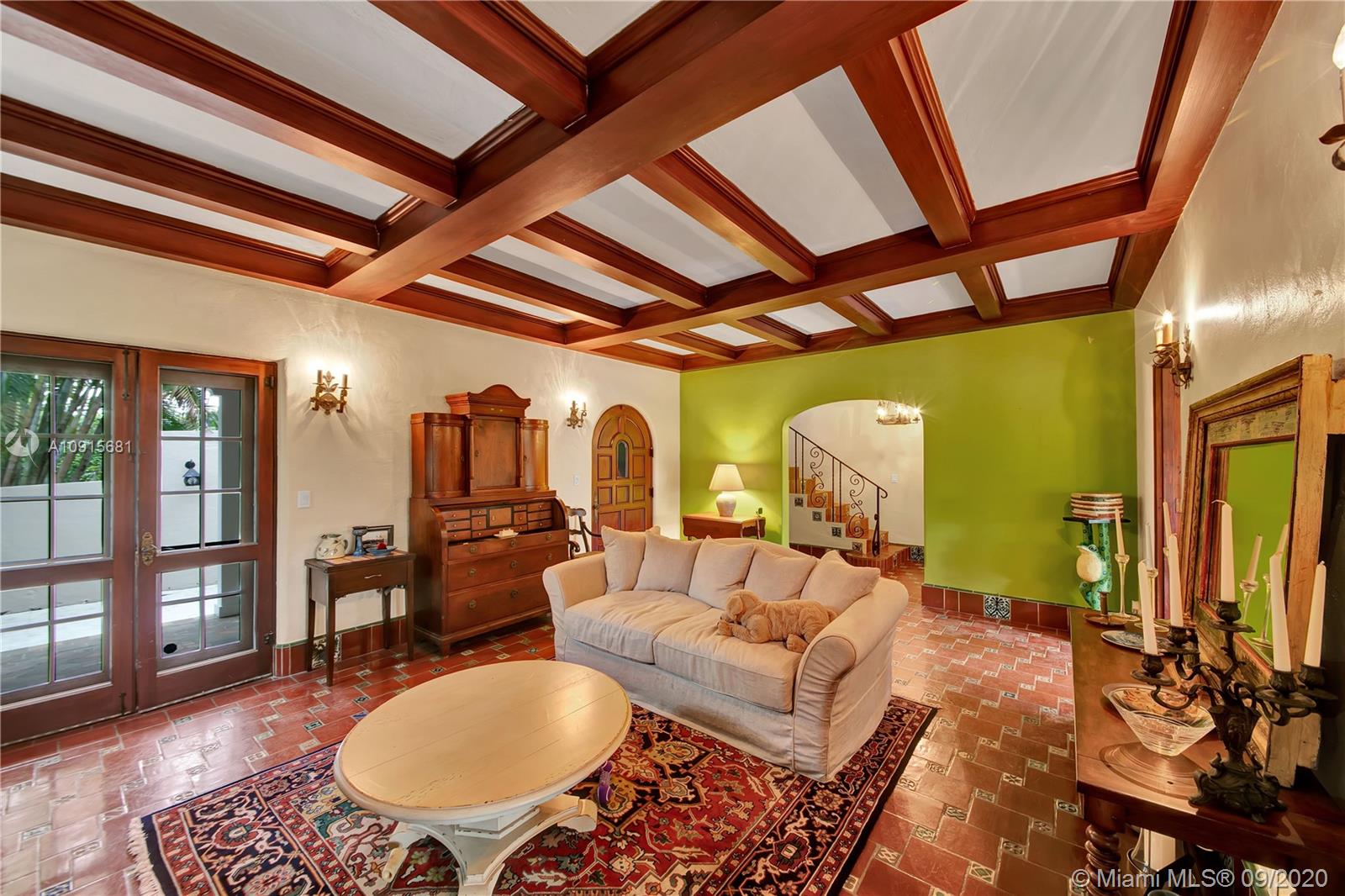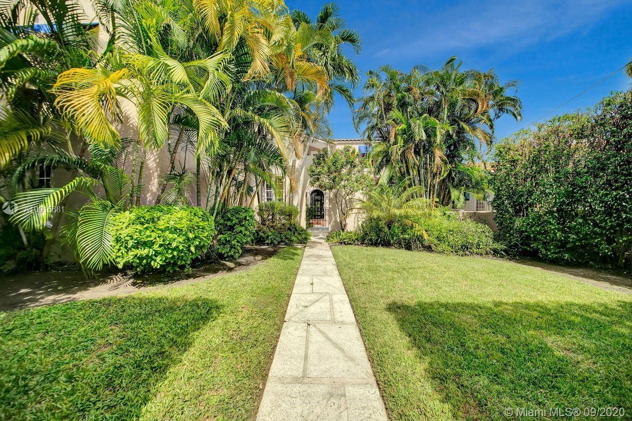 Prestigious La Gorce Golf Subdivision: 5455 Alton Road is a step back in time. 1931 Mediterranean Revival retreat exemplifies architectural integrity and updated conveniences. Walled, setback construction allows for quiet, tranquil lifestyle. 4 bedrooms +sunroom, 3 baths, plus 1/1 guest quarters. Home features vaulted ceilings, of pecky cypress w/ exposed beams, Fr doors,2 wood burning FPs & centrally placed staircase , wood floors w/mahogany inlays. Master suites on each level. Eat-in kitchen, w/ floor to ceiling cabinetry, central island, ice maker, stainless Viking double professional ovens, off kitchen laundry. Flagstone/brick patio w/ hedged, privacy fencing, overlooks golf course and gardens. Rich mature landscaping beckons one to the outdoors.