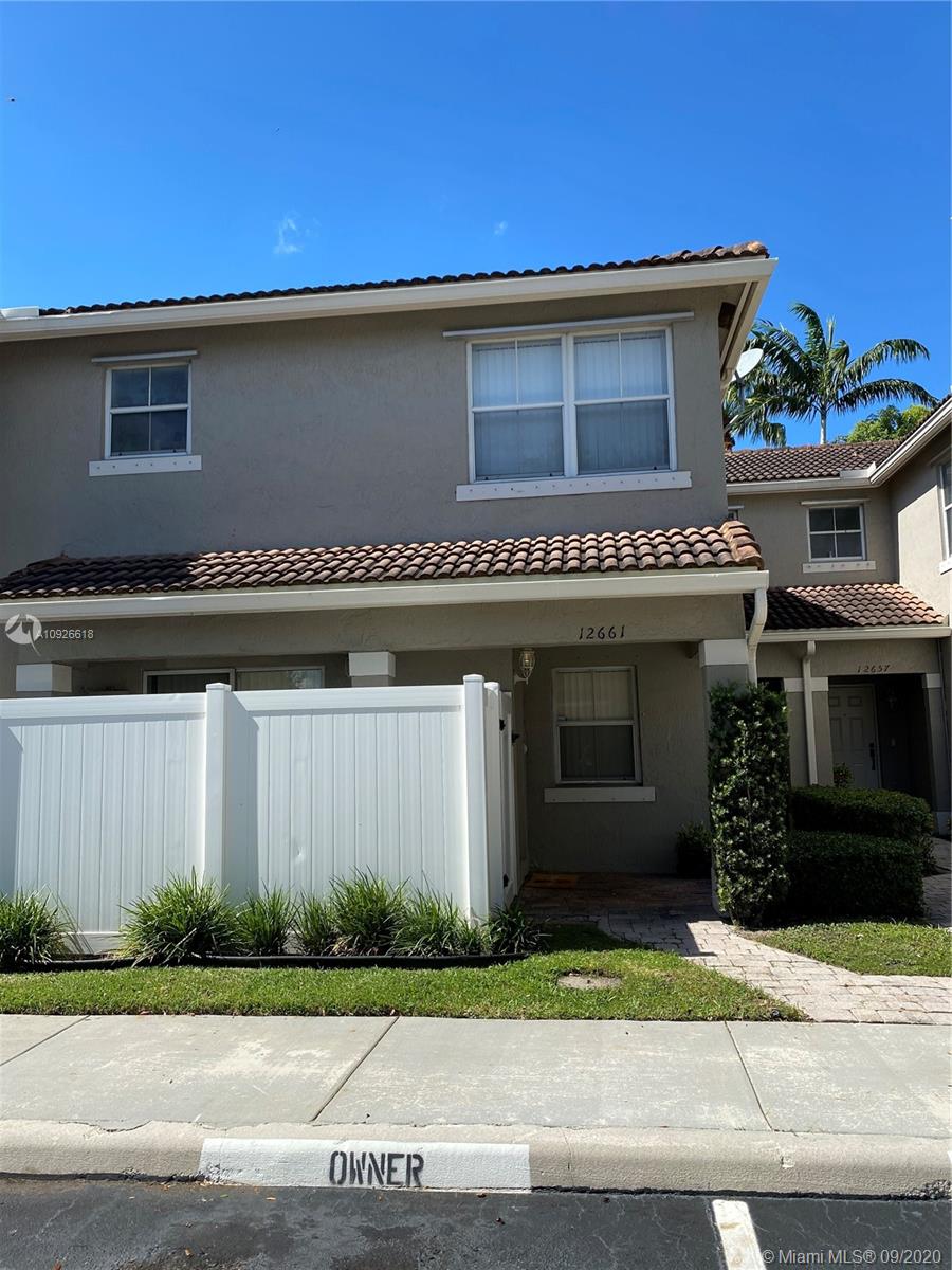 Beautiful 2 bedroom, 2.5 bathroom townhouse in the community of Bahia at Vizcaya in Miramar. Open eat-in Kitchen great for entertaining. Large fended in backyard. Private community pool and more. One assigned parking and plenty of guess parking. THIS IS A MUST-SEE AND WILL NOT LAST!!