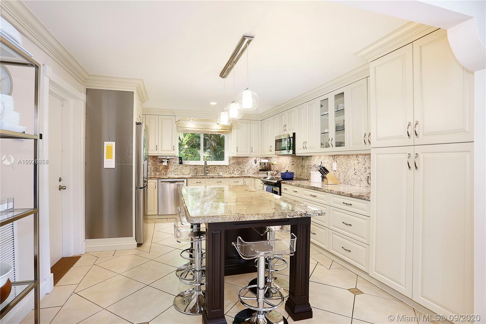 This 5 BR, 4 BA, 2977 adj SF gem has been beautifully updated! Foyer entry leads to a spacious, open floorplan filled w/ natural light featuring formal liv & din rms, beautiful kitchen w/ island, abundant storage, & new, high-end appliances, plus large family room overlooking the pool & patio. The split BR plan features the first-floor master bedroom w/ marble bathroom plus two add’l BR’s & BA’s on one side, in-law’s suite with private entrance, & 2nd-floor bedroom on the opposite side. Recent updates incl renovated bathrooms, new hot/cold water lines, impact windows & doors, redone saltwater pool & patio, security system, & more. Lush, private walled & fenced pool & yard will make you feel like you’re on vacation without leaving home. Spacious 2-car gar & more in best Gables location!