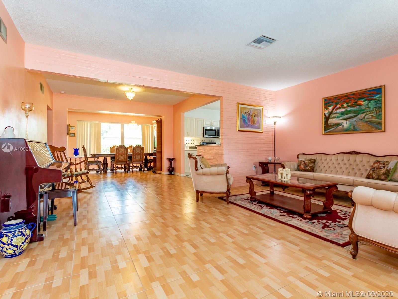 Gorgeous 3 Bed 2 Bath house completely remodeled and freshly painted with a bright & spacious open floor plan & beautiful tile floor. House has a very large eat-in kitchen with nice appliances. Both bathrooms were updated and the master bath is equipped with a jet tub. Central AC is fairly new. The roof is about 5 years old. House has double hurricane protection: impact windows and hurricane shutters. Large two-car garage and a large fenced back yard with many tropical fruit trees. Close to major highways, shopping centers, Malls, and public transportation. Ready to move in.
