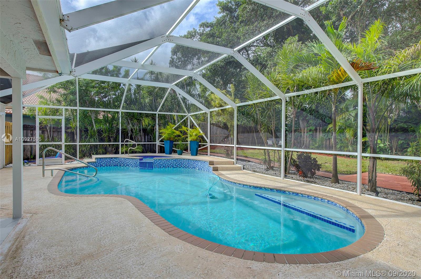 Lush and peaceful tropical back yard pool oasis awaits! Renovated 4/2 home with a split floor plan in highly sought after Oak Knoll II, surrounded by the Pine Island Ridge nature trails and parks. Completely open floor plan with a beautiful Calacatta quartz island in the kitchen, new ceramic flooring, vaulted high ceilings, impact doors and windows throughout and updated bathrooms. In 2020, the pool was resurfaced and installed new A/C system. The HOA fee includes membership to the Pine Island Country Club (golf, tennis & basketball courts, gym, pool, and two restaurants). A-rated school district. Nearby shopping, FLL Airport, Nova Southeastern University & Broward College. Showings by appointment.