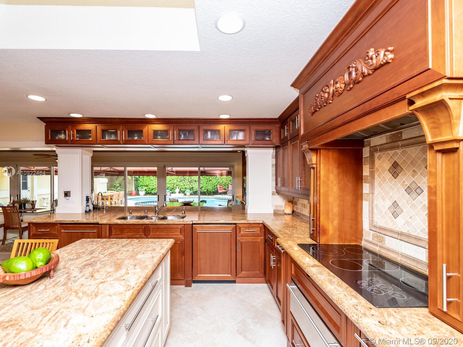 Spectacular 5BR/6.5 BA nestled in Maplewood Isle, a 24/7 manned gated community of only 105 custom-built homes and winner of 2016 Mayor's Rose Award for most beautiful neighborhood. Gourmet kitchen with granite counter tops, abundant cabinets and unique details throughout. Two self-cleaning ovens, two dishwashers, hot water dispenser, built in warming drawer, microwave convection oven and easy access to a full coffee bar area with built in Miele espresso machine. Main refrigerator, two beverage refrigerators and a wet bar. Master bedroom with walk-in closets and a large master bathroom with a whirlpool bathtub (1 of 2 in home). Central vacuum system. Beautiful pool with spa in a tropical setting with a tall privacy hedge. Great landscaping and a circular driveway that fits up to 12 cars.