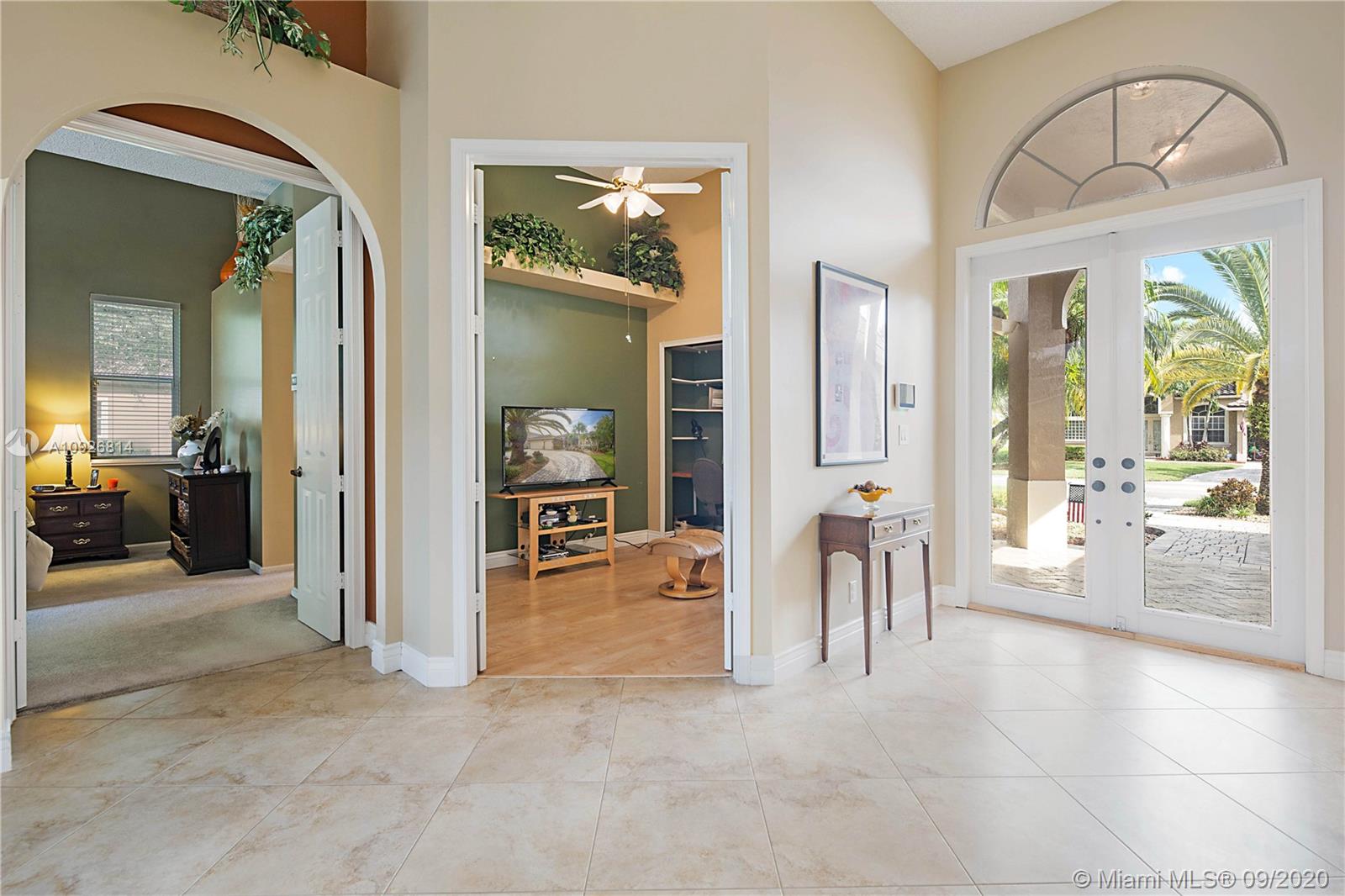 This incredible single story home features 6 beds 4 baths w/ circular driveway & 3 car garage. As you enter the front doors your greeted by the grand portico covered entry & volume ceilings. Triple split floorplan. West wing of the home features master suite & 6th bedroom next door. Which could be perfect for office/nursery or the true 6th bedroom. Custom designed Chef's kitchen features Theramador appliances plus an Island, full-size cooktop, dual wall ovens w/ convection, pantry & cabinets w/ soft close/pullouts, lazy susan & built-in U-Line Wine fridge. Private 5th bedroom w/ pocket door & cabana bath access located on the south wing of the home. Travertine pool deck w/ covered roof for shade.Corner lot. Fenced yard. NEW A/Cs.Newer roof, Hurricane Shutters & more! Video Tour available!