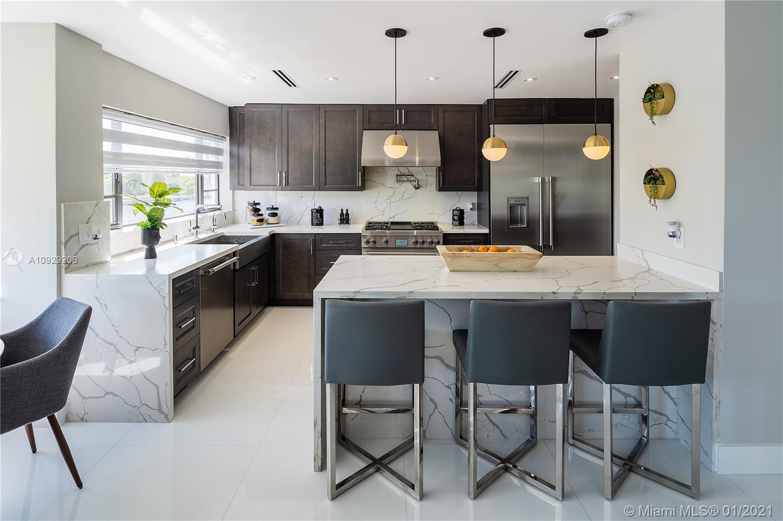 Magnificent Modern Masterpiece! Located in Guard-Gated Gables by the Sea on a 12,000 SF waterfront lot. This 5 bed 6.5 bath home offers 3 floors of luxury living with state of the art features. Dramatic double height windows, glass staircases, spectacular water views, en-suite bedrooms & home gym will not disappoint. Enjoy the combined family room & gourmet kitchen with Thermador Appliances that overlook a resort style patio. Elegant wood ceilings cover the outdoor living area equipped with custom TV’s, a new age summer kitchen & breathtaking Sunrises and Sunsets! The living room is dazzling with a quartz finished fireplace & the dining room has a one of a kind glass enclosed 380 bottle wine cellar. The media/card room with TVs & wet bar is perfect for spending time with family and friends