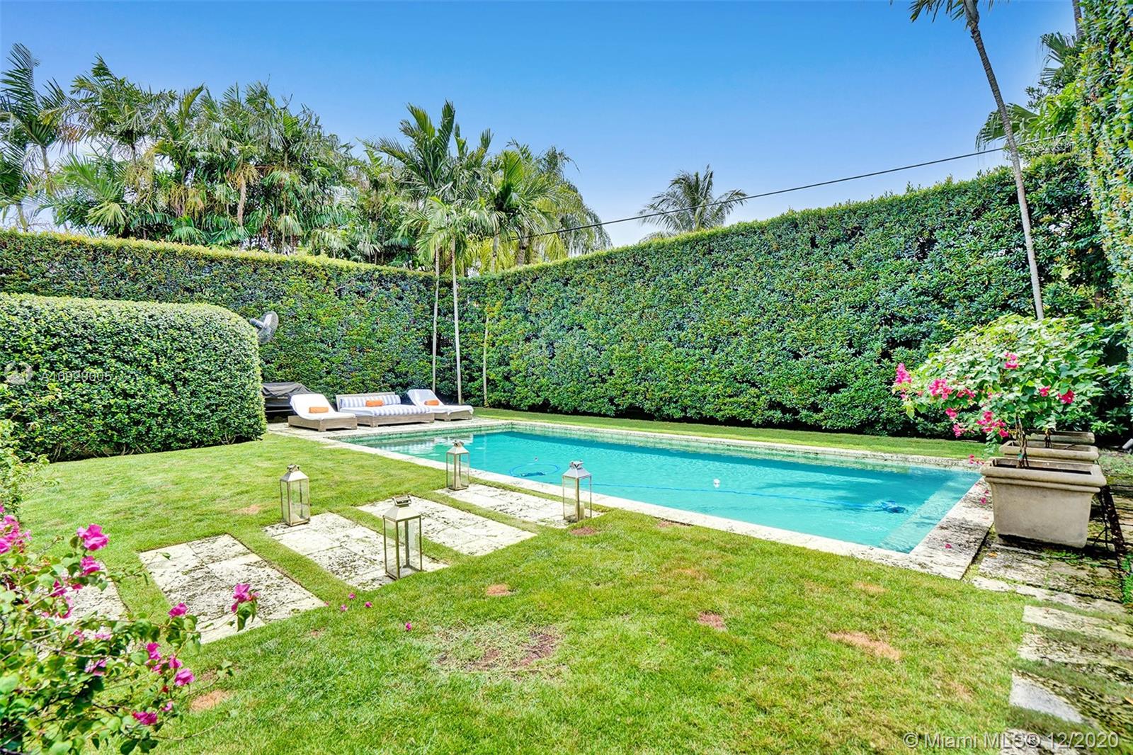 A RARE opportunity for discriminating buyers, this exclusive LaGorce Dr. property welcomes you w/a casually sophisticated environment ideal for comfortable living/entertaining. A no-expense-spared renovation includes high-impact windows & French doors throughout. Dark wood flrs are complimented by beamed ceilings framing the chic spaces to provide elegance and warmth. The living room features a fireplace and opens into the formal dining room. Living spaces continue into the outdoor covered pergola & pool area ideal for al Fresco entertaining. A chef’s eat-in kitchen features SS appl. gas range, custom cabinetry & quartz countertops. Over 2,700 sq.ft. of fully-renovated space w/ 3beds, 2.5 bths including a generous master suite w/walk-in closet, marble steam shower & private terr