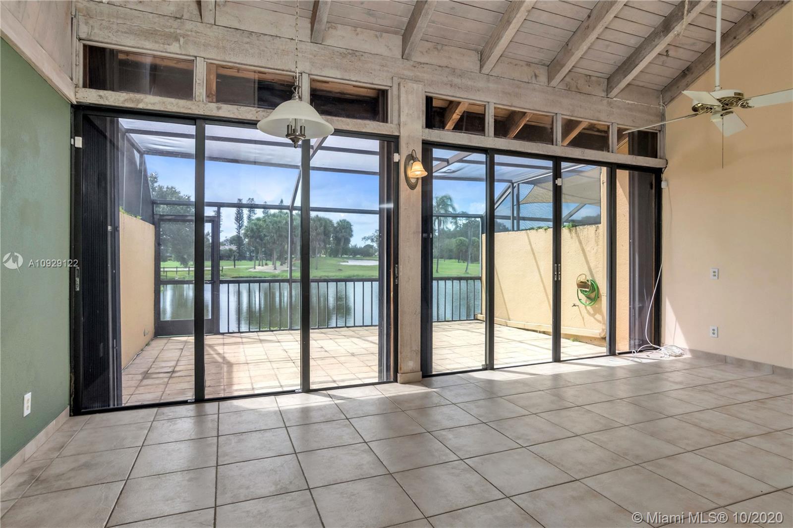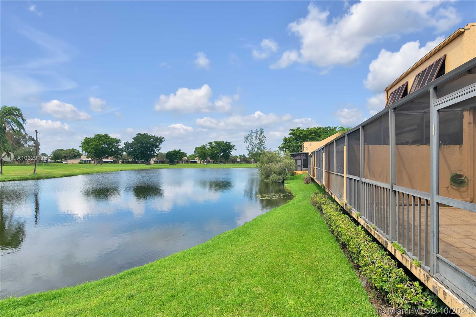 Centrally located in the heart of Pembroke Pines at the very desirable Villa Central Complex! Unit features a bedroom and full bathroom on the ground floor. Large master bedroom & second bedroom upstairs, each with en-suite bathrooms and new floors. Home boasts an open concept with lots of light and a screened patio that lets you take in views of the lake and the golf course. Don't worry about carpets because there are none! Home has hurricane shutters. Newer kitchen and laundry appliances. ADT alarm system is installed. For your relaxation, the Community maintains a pool as well as tennis and basketball courts. ENJOY!!