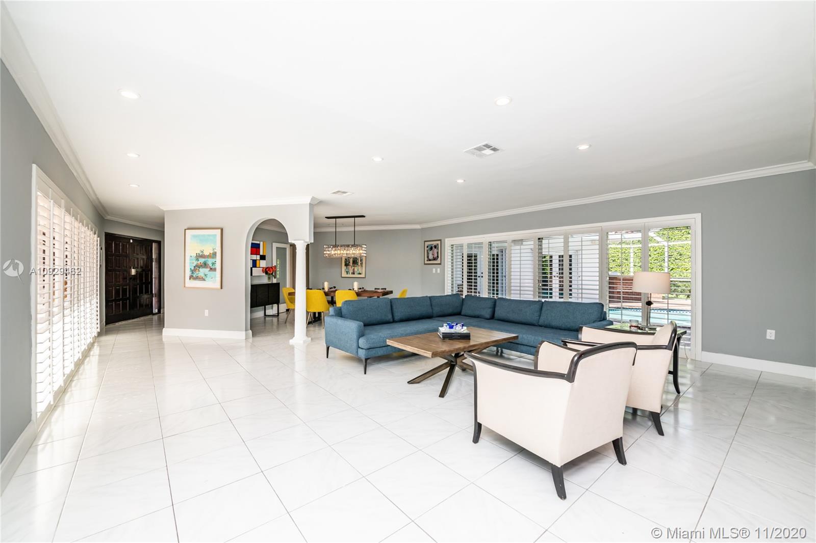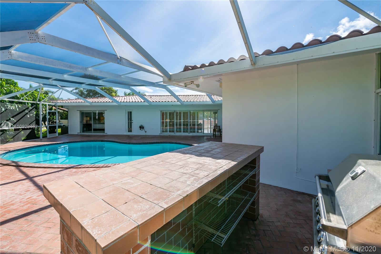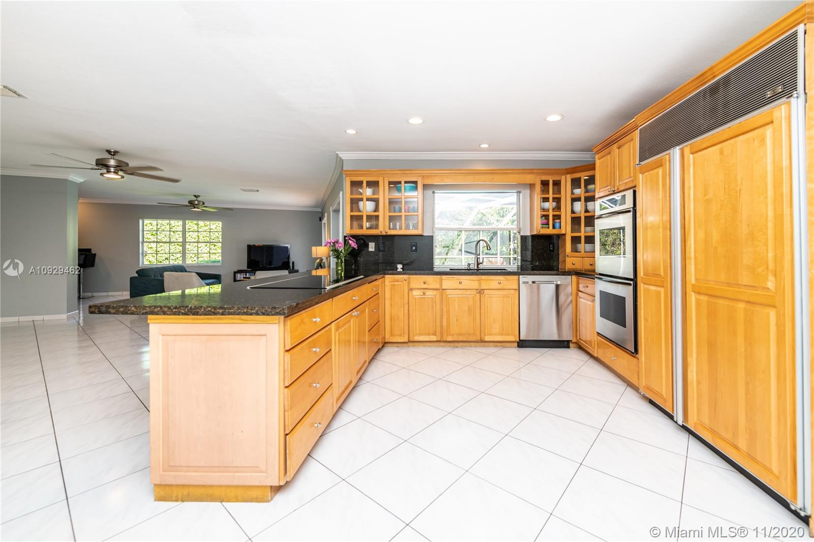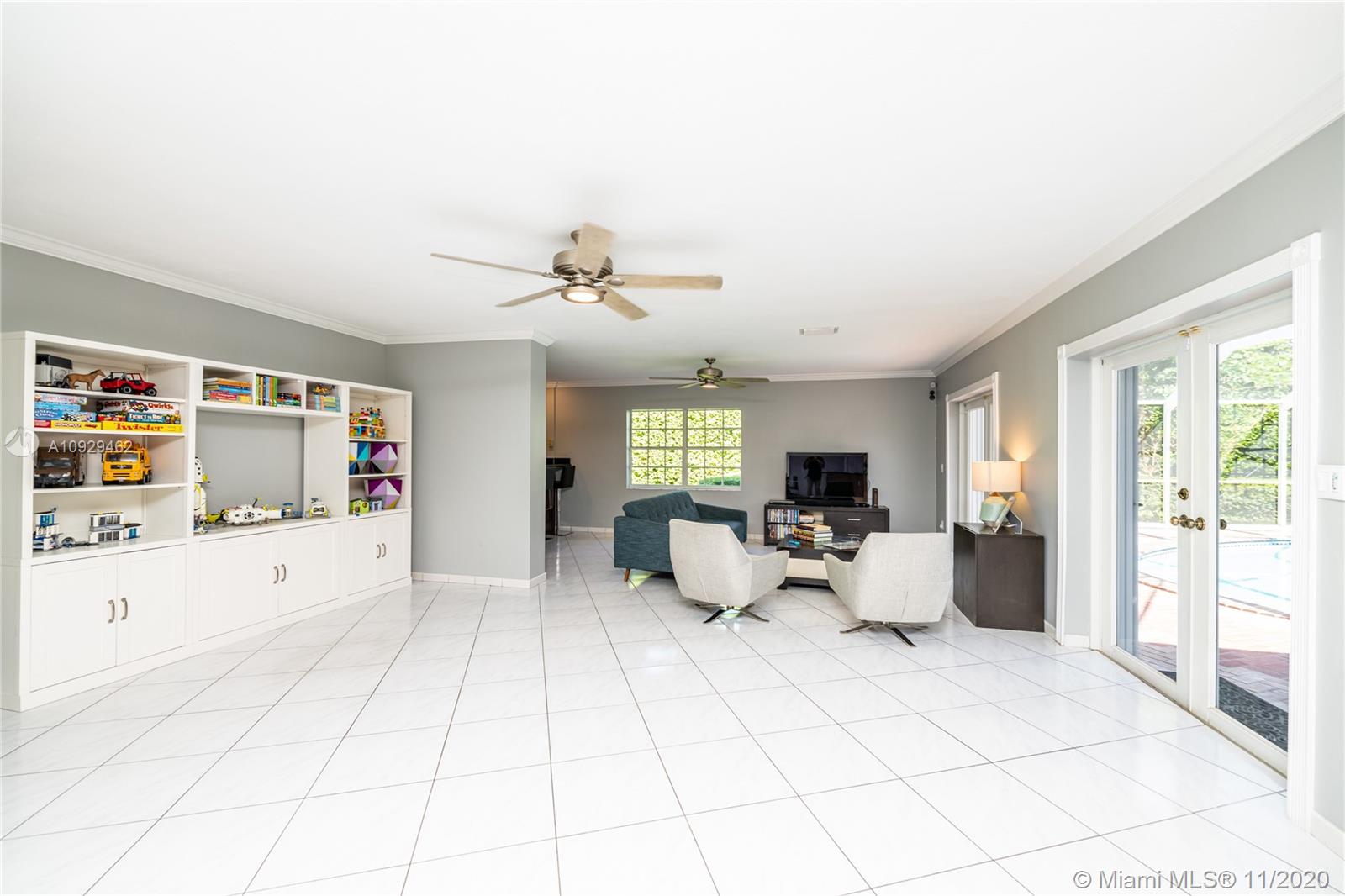 Best Value Property Currently for Sale in Gables By the Sea. Sunshine pours through wide banks of French doors & oversized windows throughout the 16,646 SF residence, reflecting off white ceramic floors to brighten every corner. A flow-through layout enhances the sense of space, particularly in the heart of the home where the family room, club-style wet bar, and the large kitchen with a breakfast room meet with shared views of the screened pool patio and its alfresco kitchen. A bonus room works perfectly as an office, workout space, or playroom. Formal living and dining rooms provide options for more refined entertaining. Coral Bay Park is located within the community. Gulliver School PK-8 is adjacent, with A+ rated public schools nearby. Hurricane shutters. 2-car garage.
