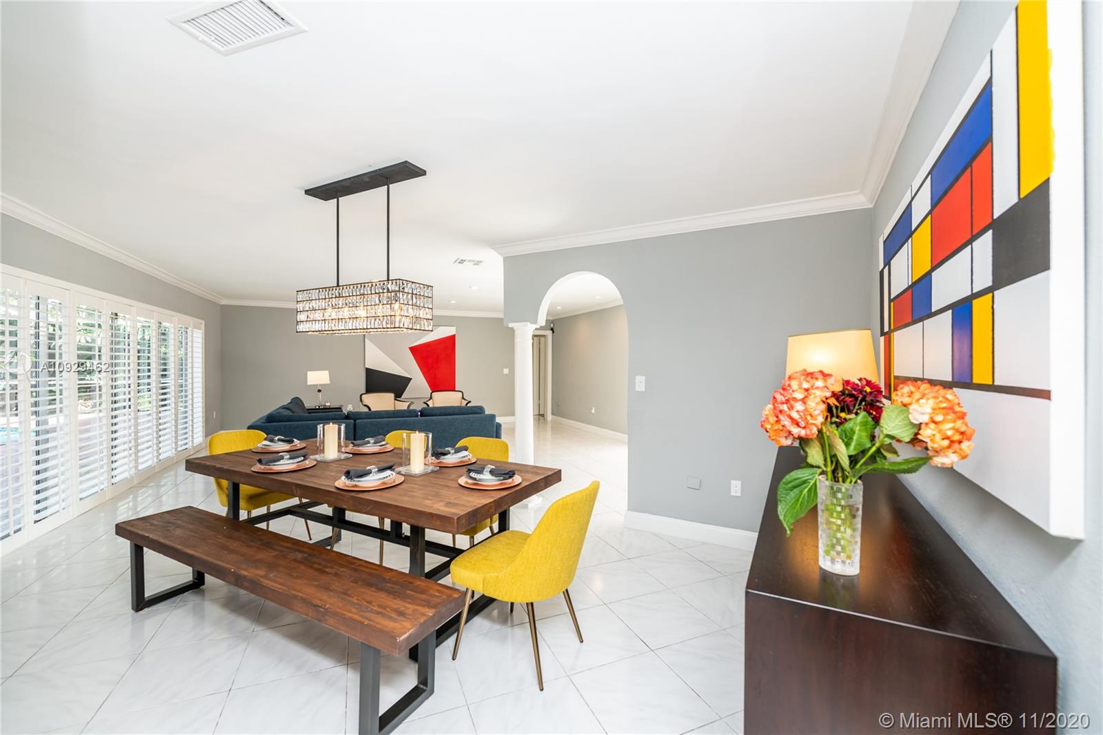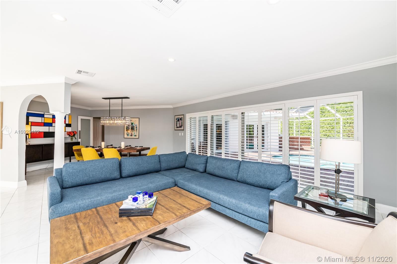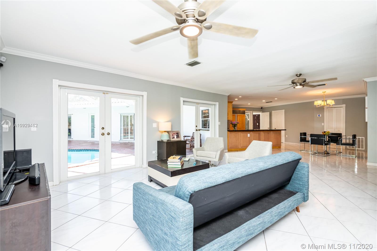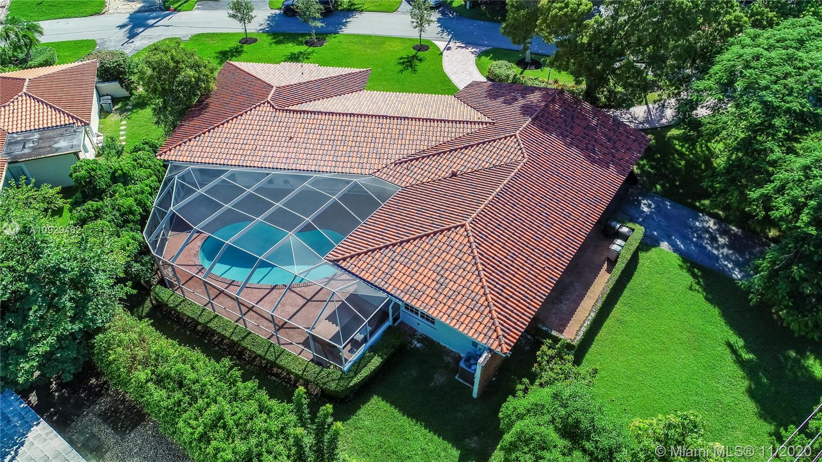 Best Value Property Currently for Sale in Gables By the Sea. Sunshine pours through wide banks of French doors & oversized windows throughout the 16,646 SF residence, reflecting off white ceramic floors to brighten every corner. A flow-through layout enhances the sense of space, particularly in the heart of the home where the family room, club-style wet bar, and the large kitchen with a breakfast room meet with shared views of the screened pool patio and its alfresco kitchen. A bonus room works perfectly as an office, workout space, or playroom. Formal living and dining rooms provide options for more refined entertaining. Coral Bay Park is located within the community. Gulliver School PK-8 is adjacent, with A+ rated public schools nearby. Hurricane shutters. 2-car garage.
