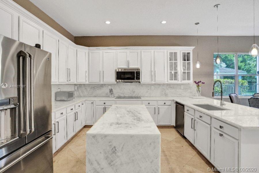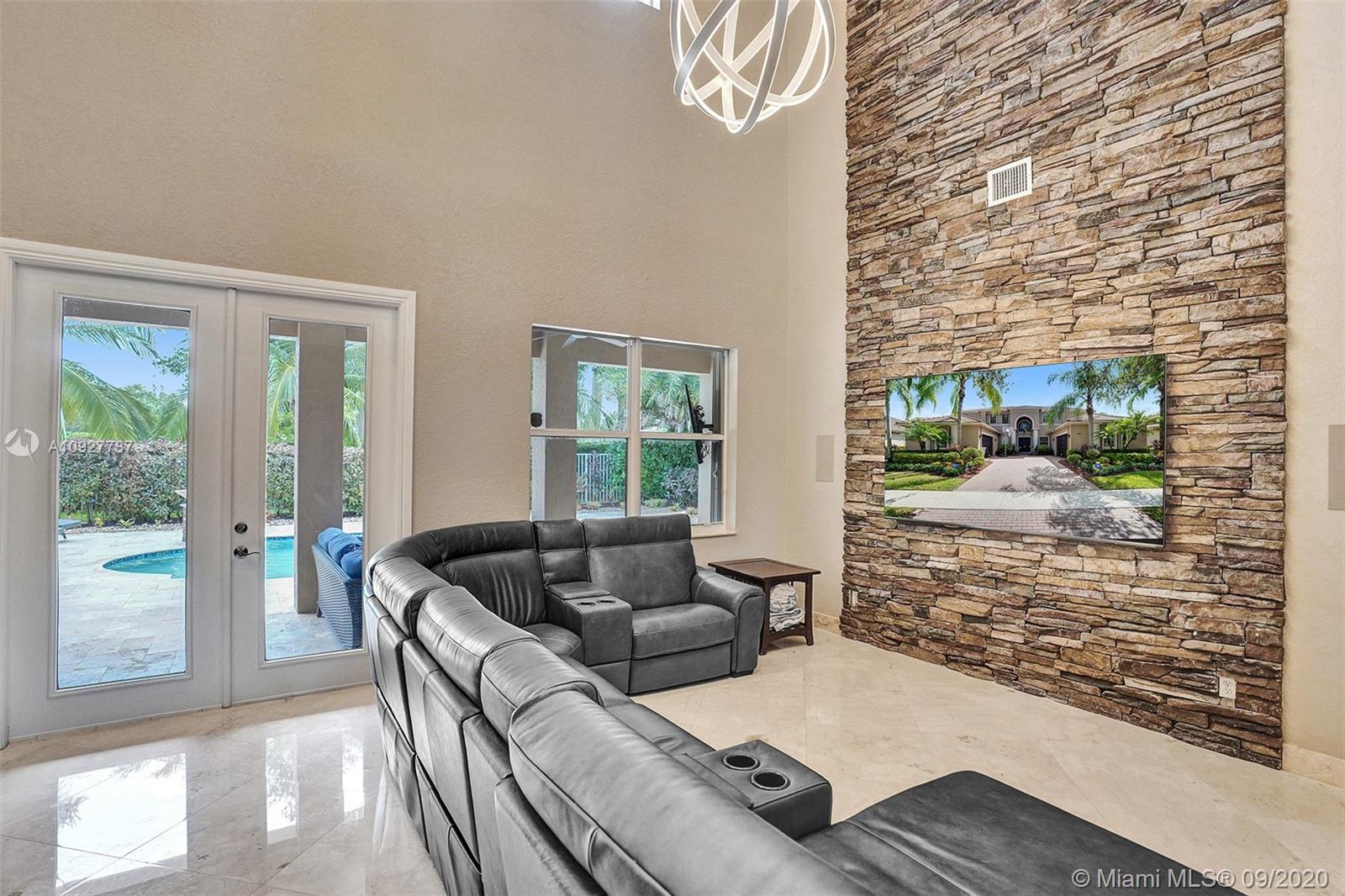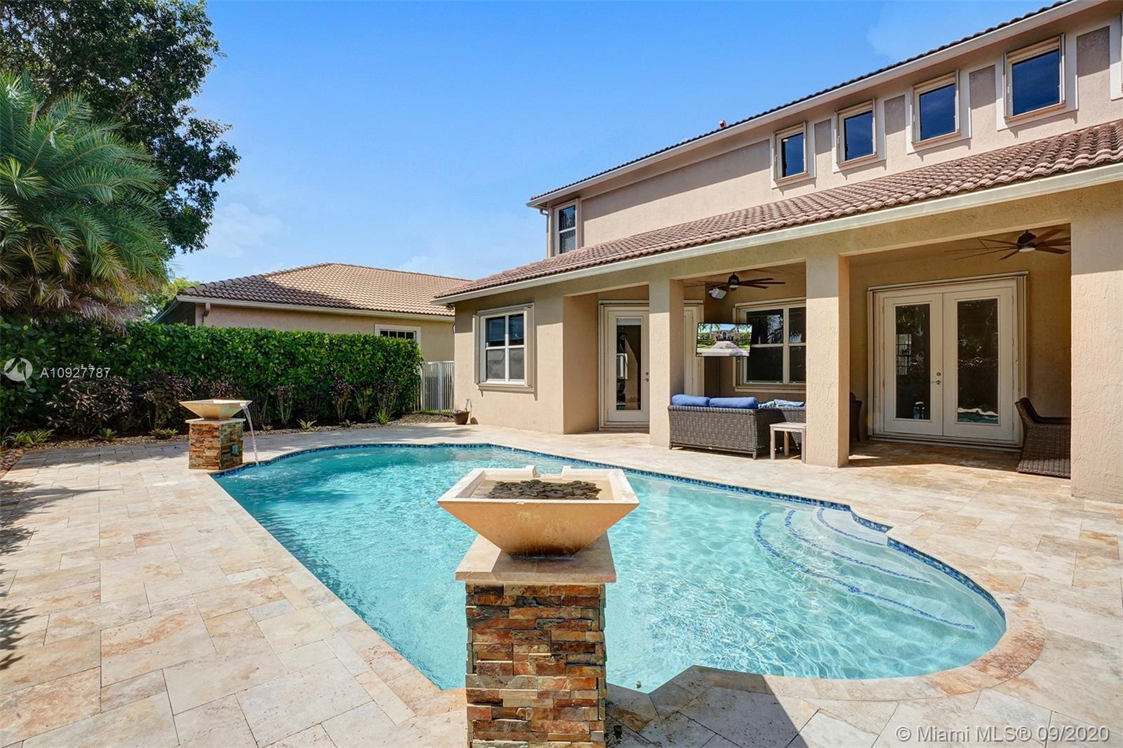 Recently renovated luxury estate home located in The Isles of Weston.Popular Montego model features 6BR/5.5BA office*large loft/game room. Spacious gourmet kitchen with 42" white wood cabinets, center island, new white quartzite counters, backsplash, stainless steel appliances, double wall oven, wine refrigerator, walk-in pantry. Newly re-built heated pool w/ dual fountains, travertine pool deck, and expansive covered patio.Grand owners suite on the first level with a new modern bathroom including a vessel tub, dual sinks, Toto Neorest toilet, custom walk-in closet. New marble flooring on the first level. Plush carpet on the 2nd level.Full accordion protection. 4 car garage. Backs to berm with no neighbors behind for privacy. Walk to the state of the art community center.