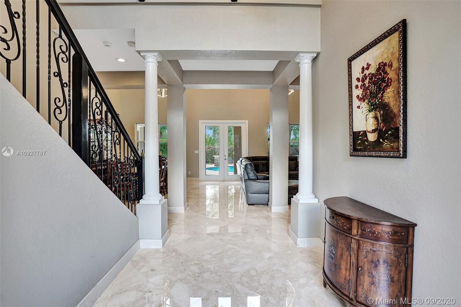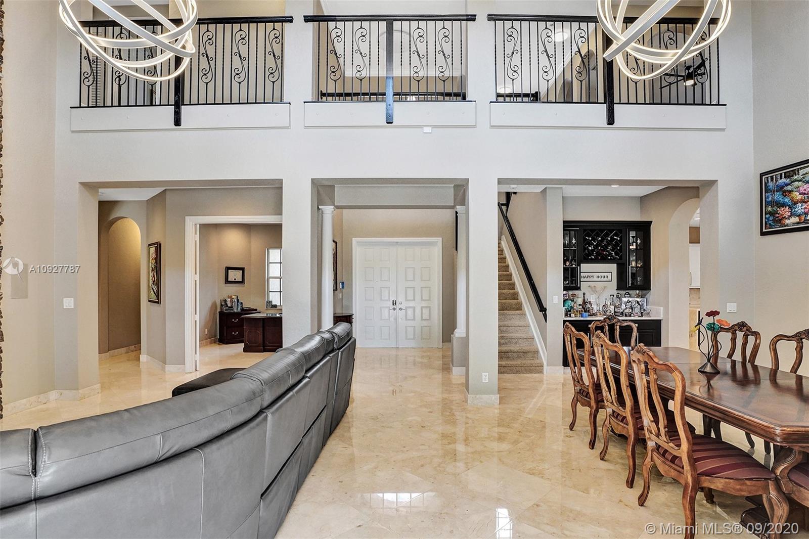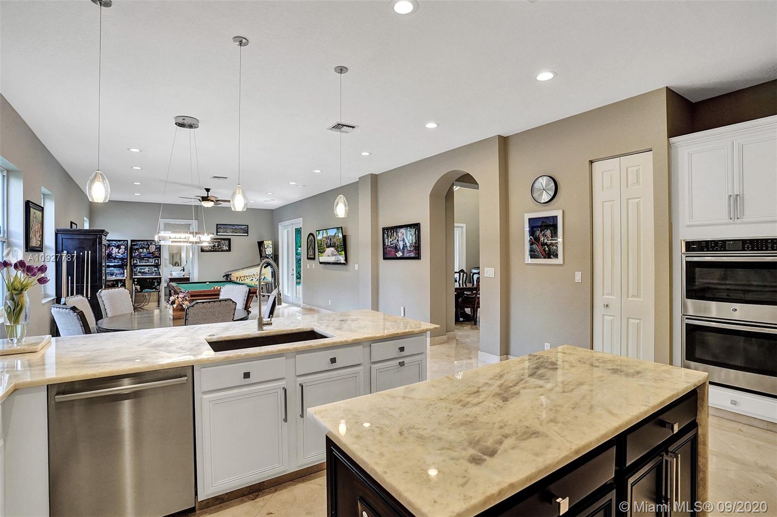 Recently renovated luxury estate home located in The Isles of Weston.Popular Montego model features 6BR/5.5BA office*large loft/game room. Spacious gourmet kitchen with 42" white wood cabinets, center island, new white quartzite counters, backsplash, stainless steel appliances, double wall oven, wine refrigerator, walk-in pantry. Newly re-built heated pool w/ dual fountains, travertine pool deck, and expansive covered patio.Grand owners suite on the first level with a new modern bathroom including a vessel tub, dual sinks, Toto Neorest toilet, custom walk-in closet. New marble flooring on the first level. Plush carpet on the 2nd level.Full accordion protection. 4 car garage. Backs to berm with no neighbors behind for privacy. Walk to the state of the art community center.