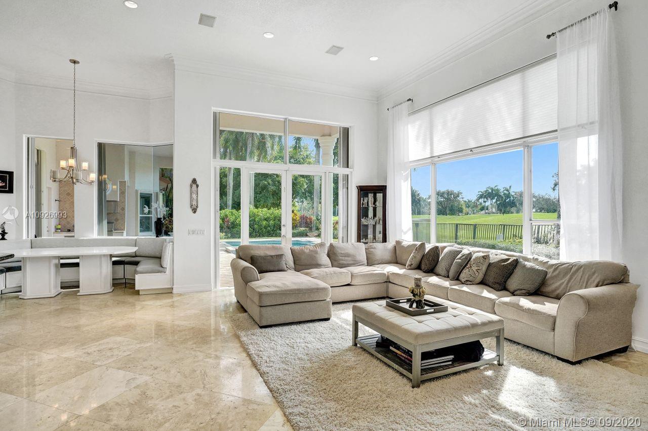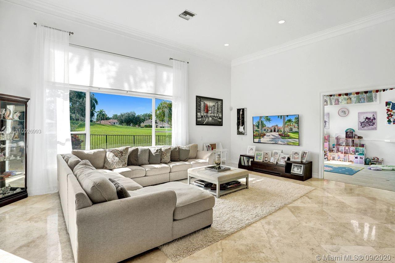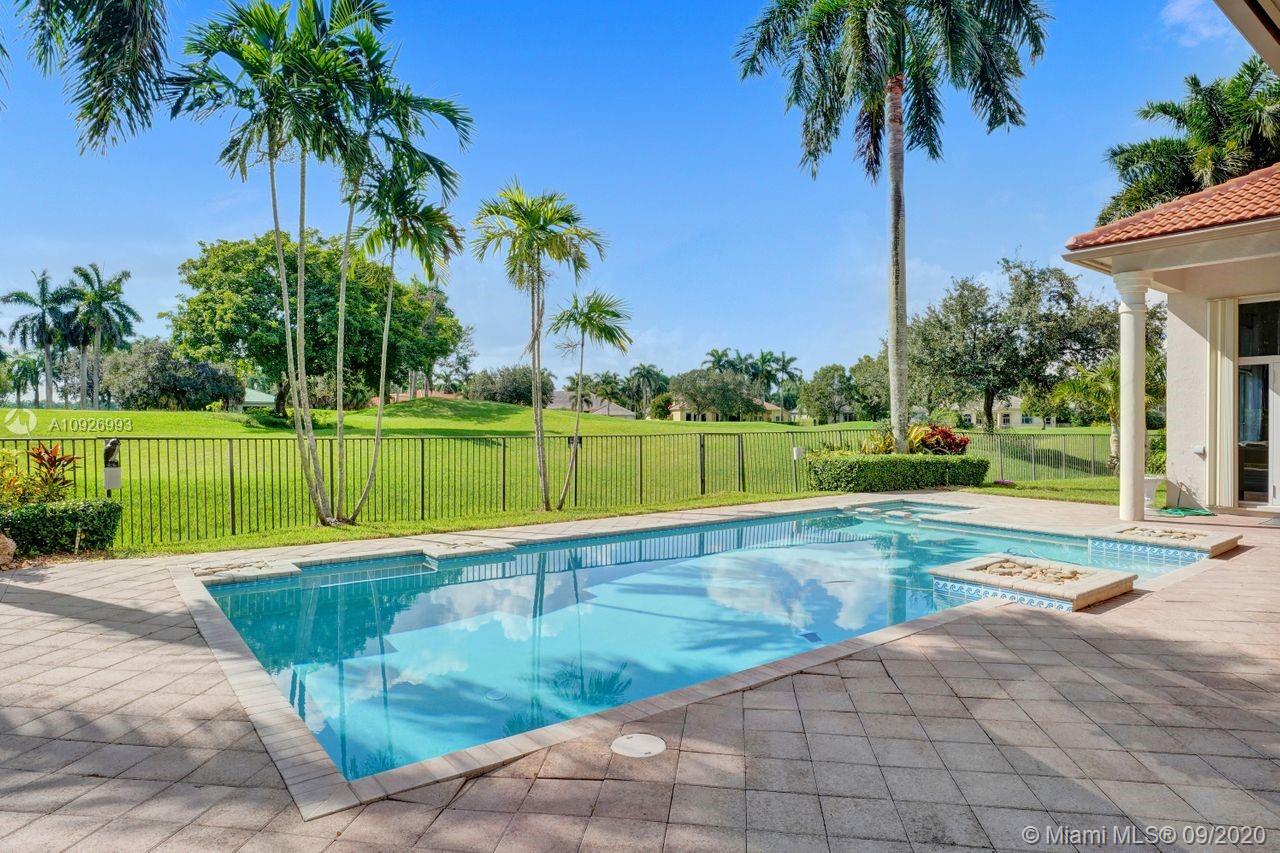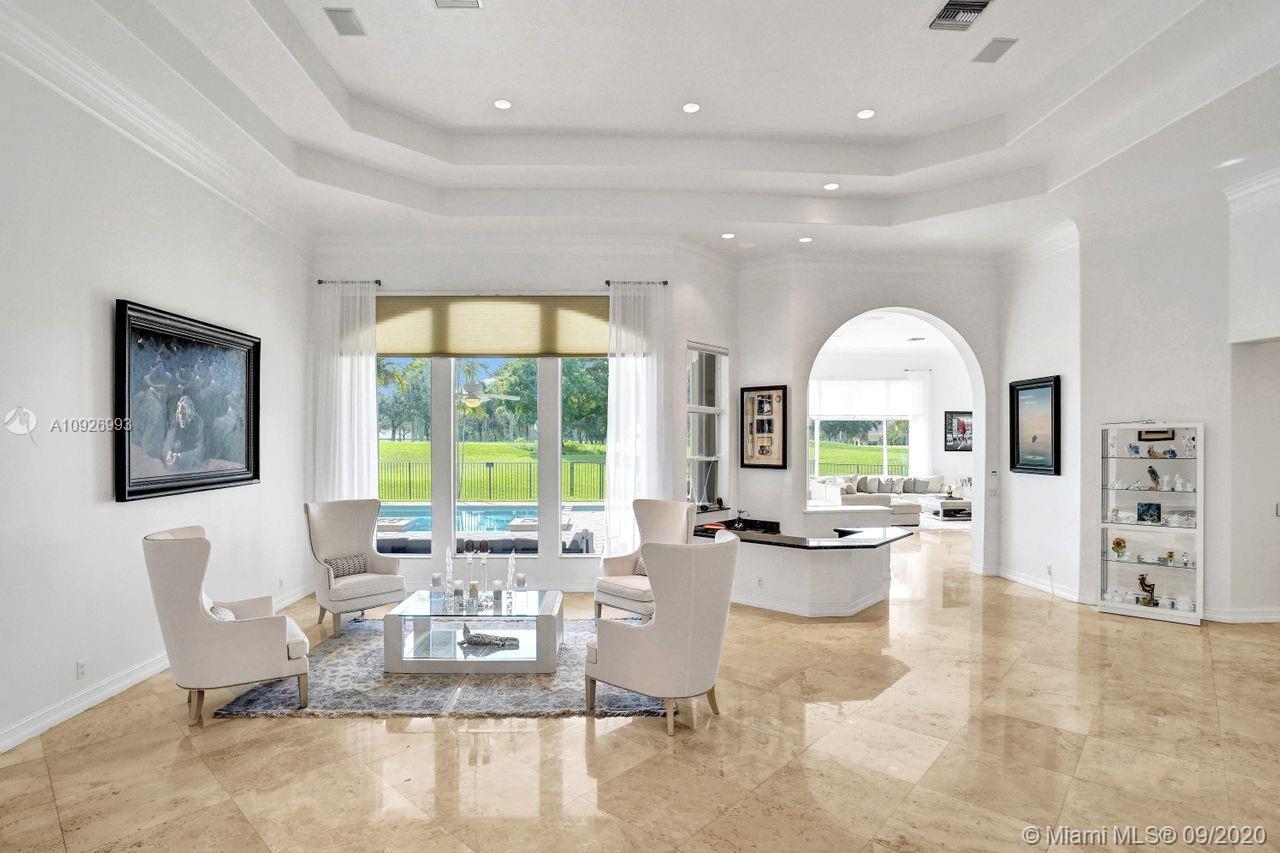 Tucked in the boutique community of Provence at Weston Hills Country Club. This grand one story custom home boasts expansive golf views of the 6th hole of The Players Course. BRAND NEW ROOF. NEW CONTEMPORARY BATHS (3) IN PROGRESS. Full accordion protection. Oversized pool fully fenced yard with summer kitchen. Step into elegance with marble flooring throughout the living areas. Attention to every detail. Enjoy 4 spacious bedrooms PLUS OFFICE, PLAYROOM AND EXERCISE ROOM. Take in the views with your floor to ceiling living room windows. Enjoy decorator window treatments and fixtures. Extensive crown moldings, flat walls, volume ceilings. White contemporary kitchen with granite and butcher block countertops, center island, Sub Zero refrigerator, and freezer, Stainless steel wall oven