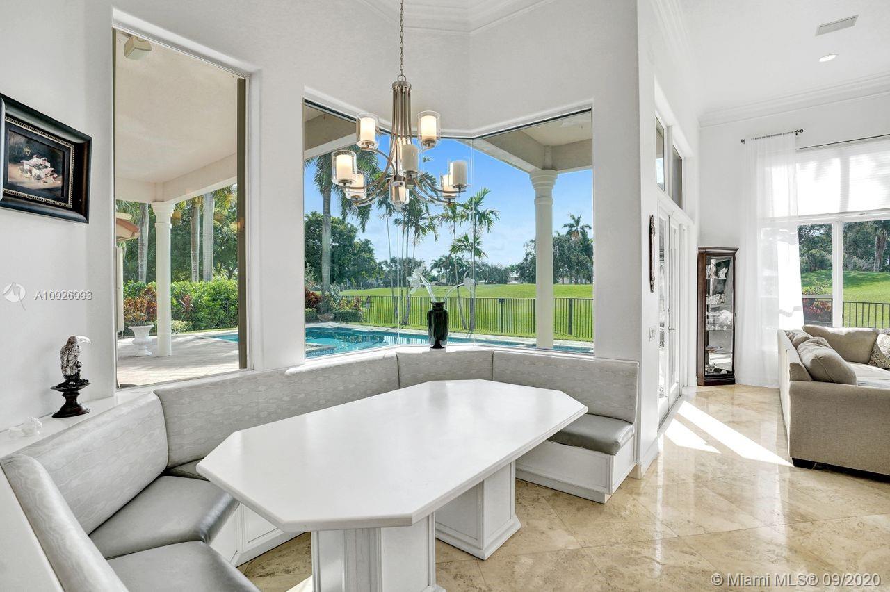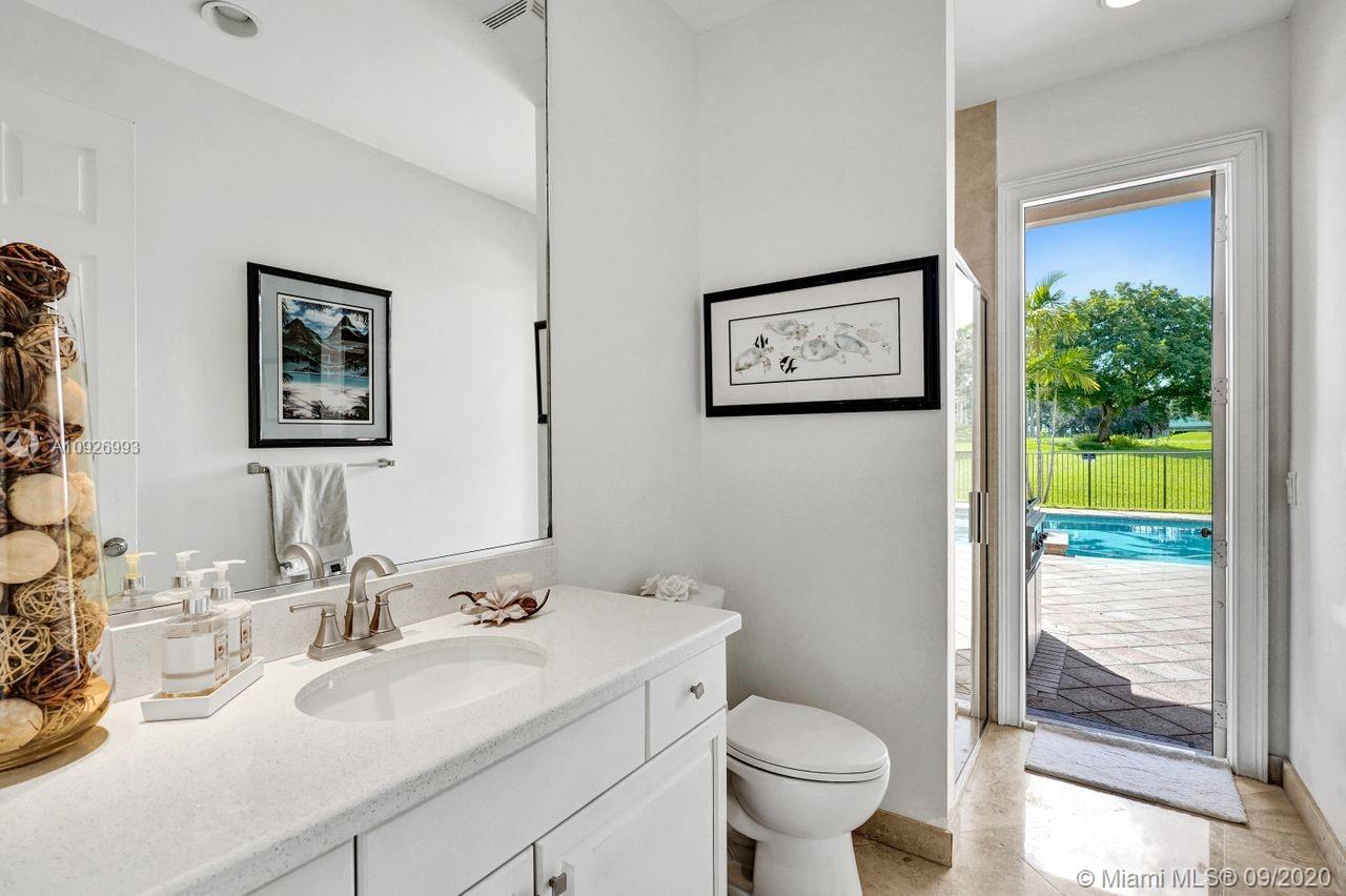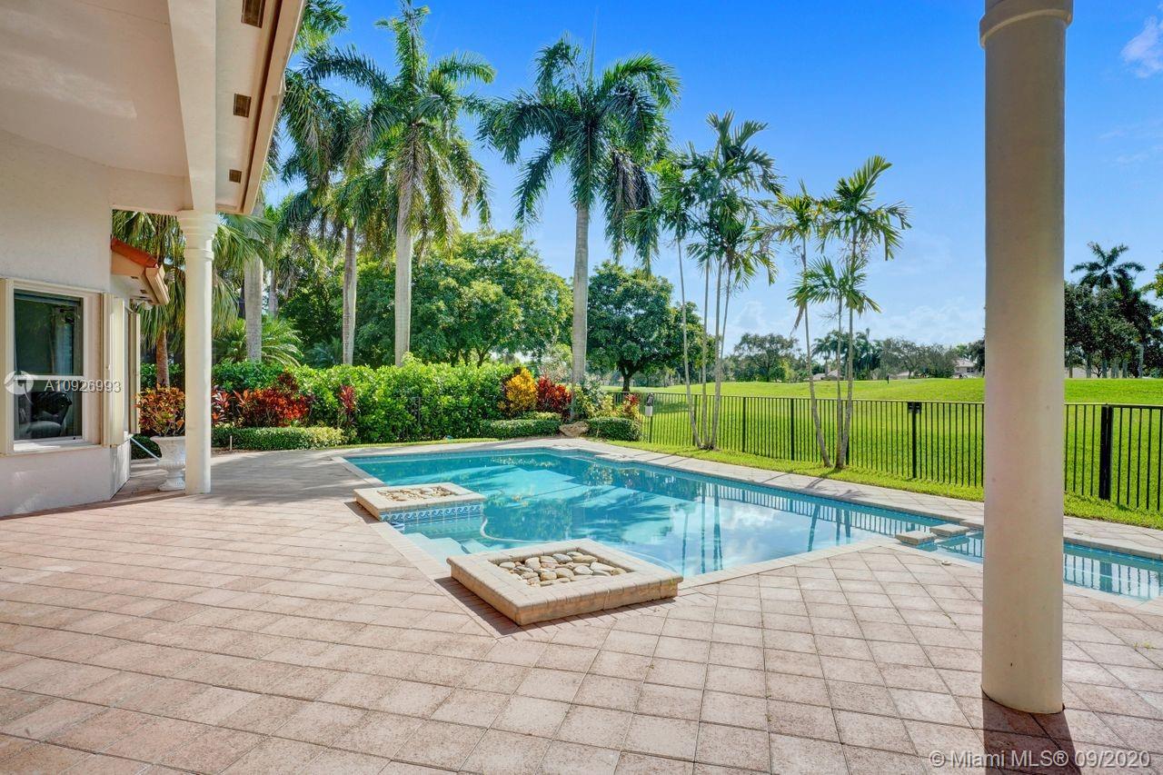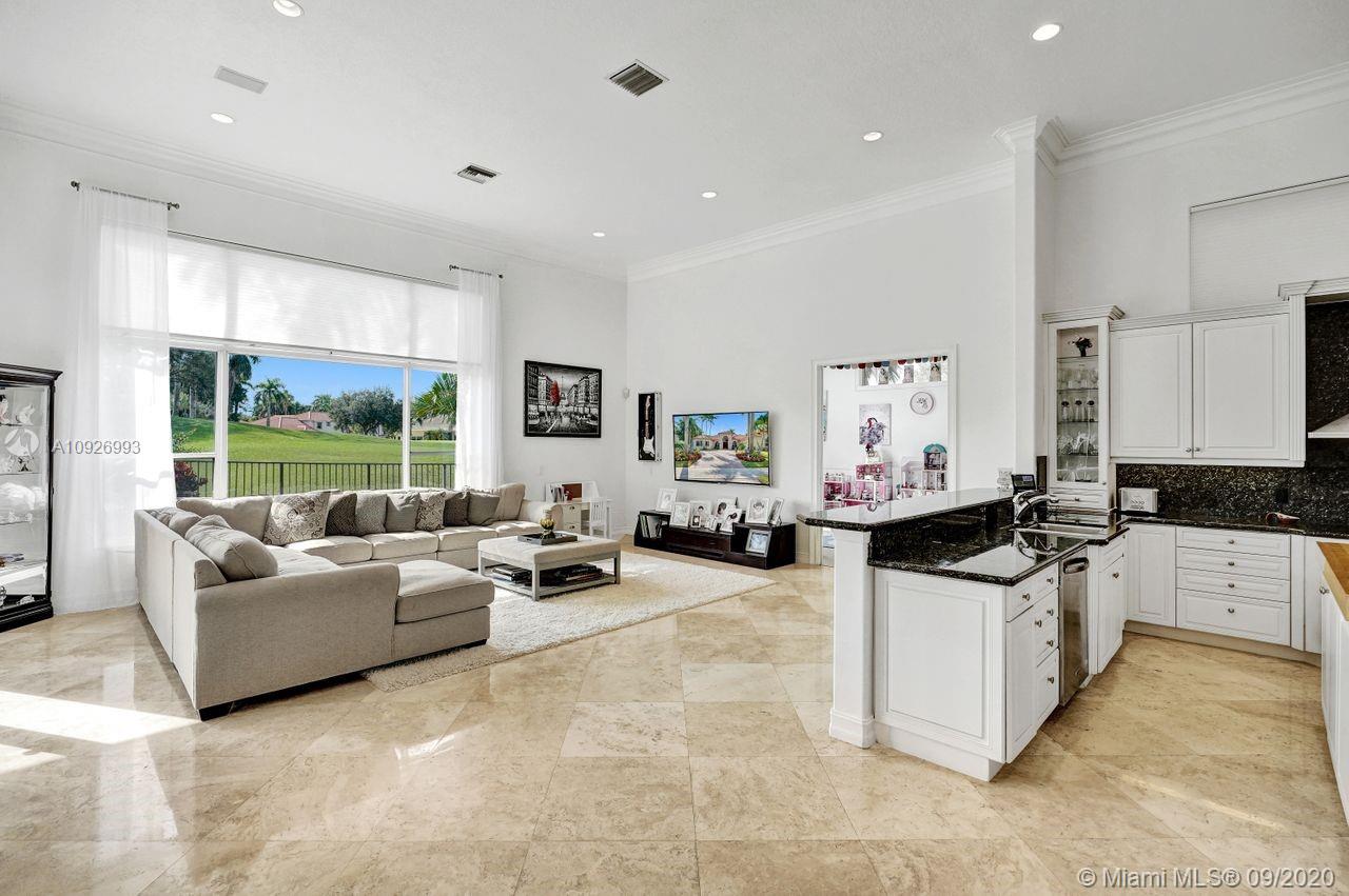 Tucked in the boutique community of Provence at Weston Hills Country Club. This grand one story custom home boasts expansive golf views of the 6th hole of The Players Course. BRAND NEW ROOF. NEW CONTEMPORARY BATHS (3) IN PROGRESS. Full accordion protection. Oversized pool fully fenced yard with summer kitchen. Step into elegance with marble flooring throughout the living areas. Attention to every detail. Enjoy 4 spacious bedrooms PLUS OFFICE, PLAYROOM AND EXERCISE ROOM. Take in the views with your floor to ceiling living room windows. Enjoy decorator window treatments and fixtures. Extensive crown moldings, flat walls, volume ceilings. White contemporary kitchen with granite and butcher block countertops, center island, Sub Zero refrigerator, and freezer, Stainless steel wall oven