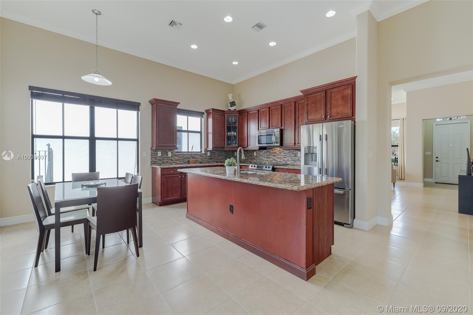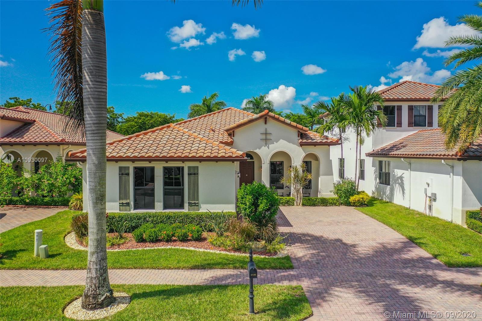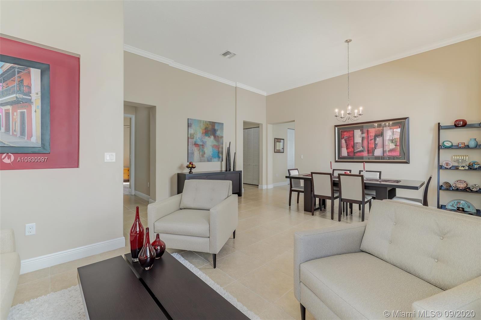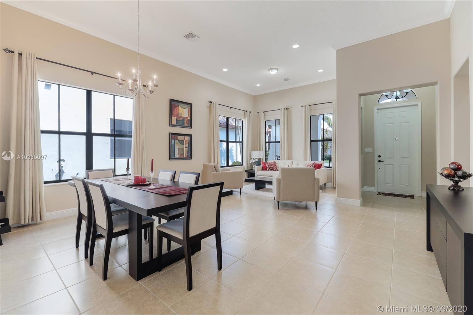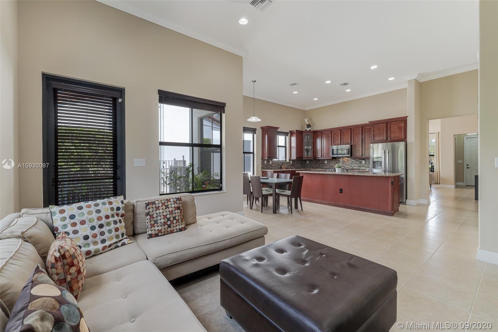 Stunning three bedrooms plus a Den, three full bathrooms home in desirable gated community- Monterra surrounded by pristine lakes and natural preserves. This rarely available Chapala Model features elegant 12' raised ceilings throughout, dramatic coffered ceiling in master suite, textured finish walls & ceilings, hurricane doors, hurricane panels. Walk through the luxurious foyer, into an open & bright formal living and dinning room area, flowing well with accent walls, open kitchen with stainless steel appliances, wood cabinetry with 42" upper cabinets, granite countertops with 4" backsplash, overhead recessed lighting. Community features resort style amenities including over 8,500SF clubhouse & pool, tennis & basketball courts gym & more. Cooper City is known by having the best schools.