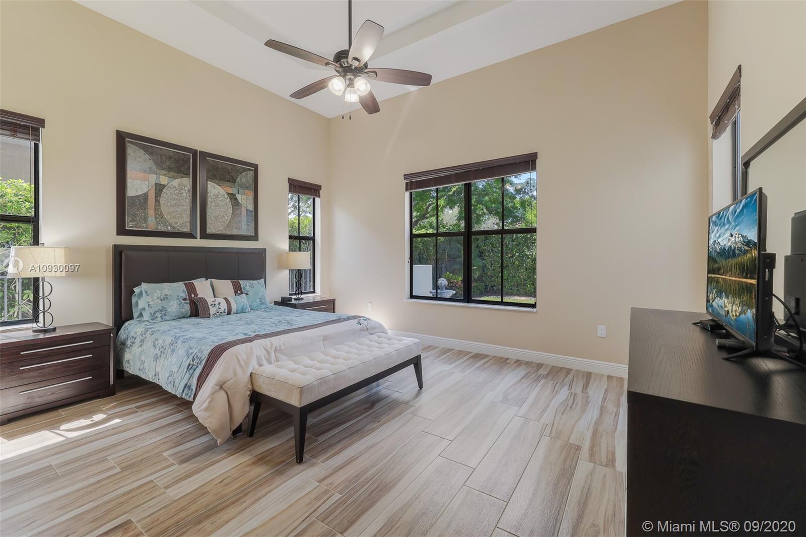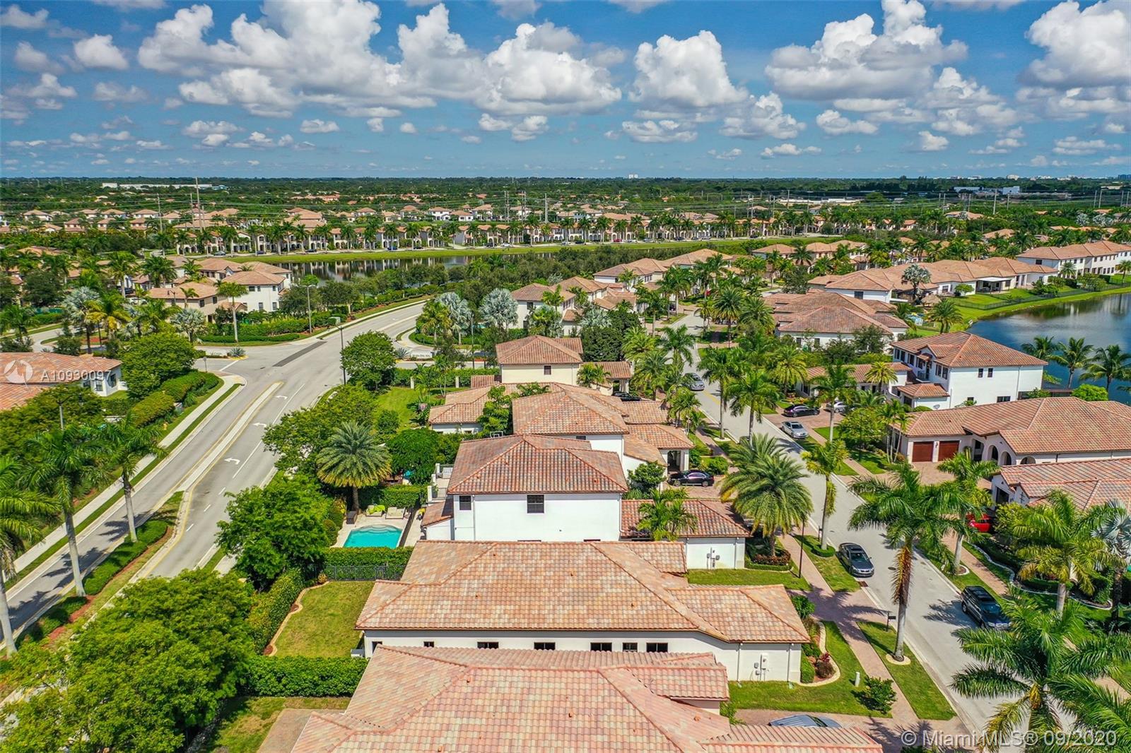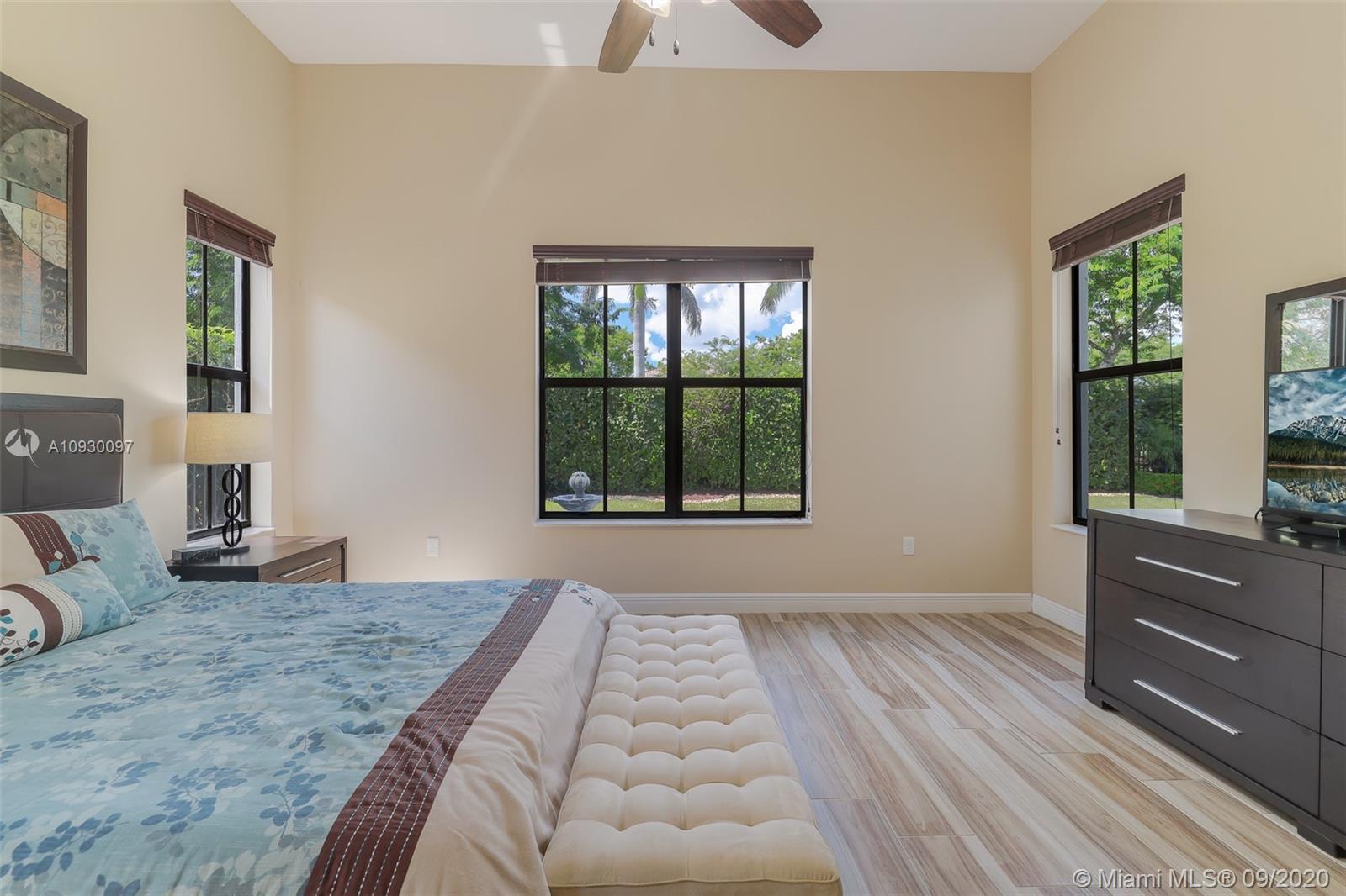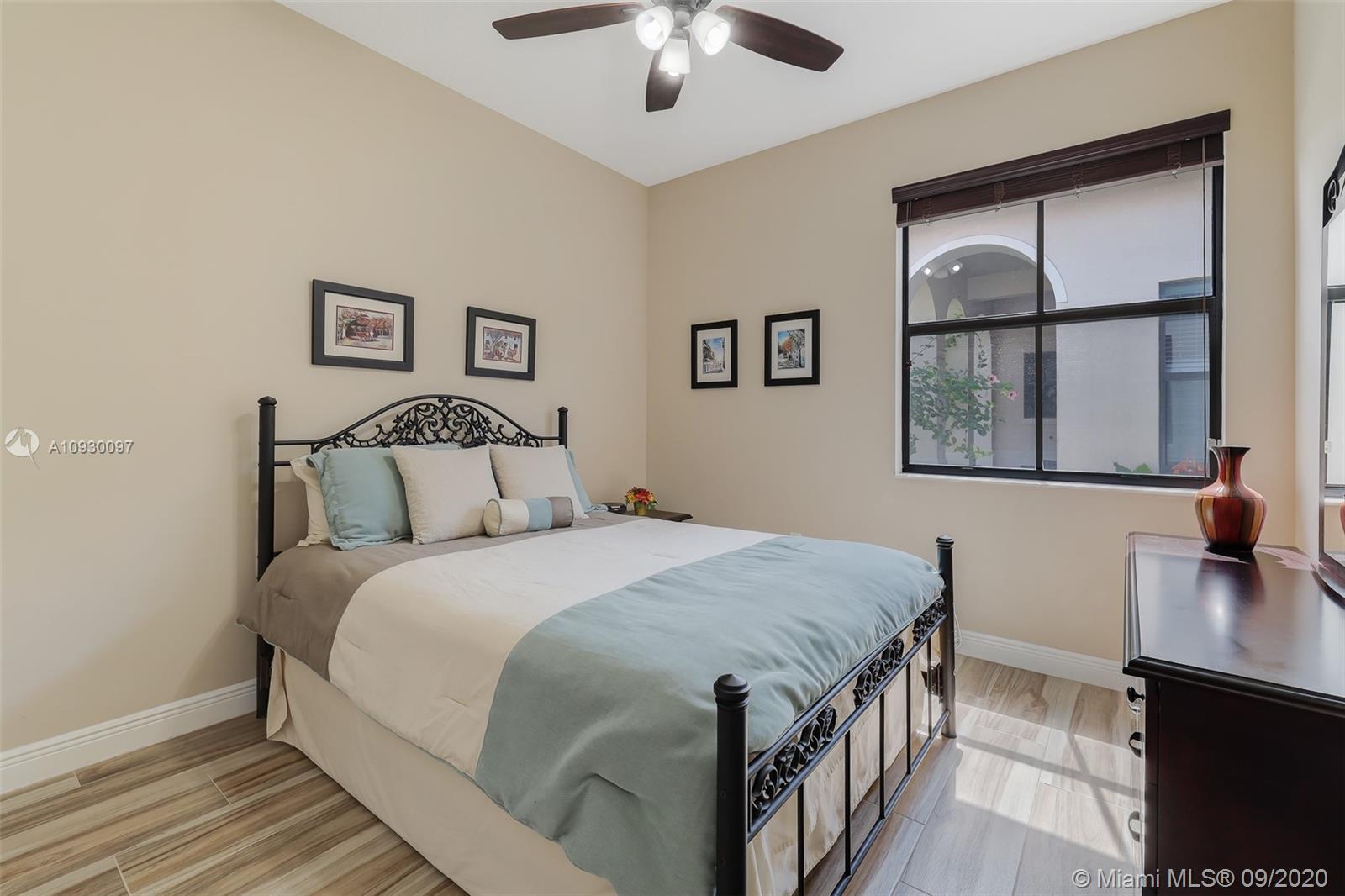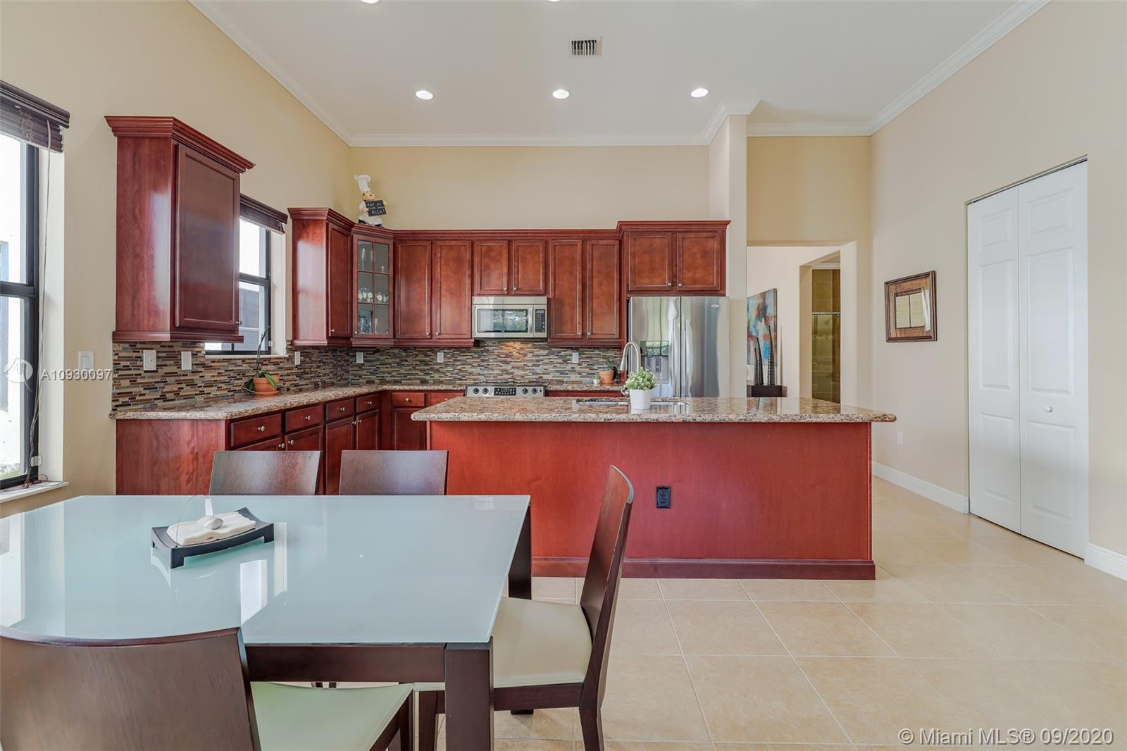 Stunning three bedrooms plus a Den, three full bathrooms home in desirable gated community- Monterra surrounded by pristine lakes and natural preserves. This rarely available Chapala Model features elegant 12' raised ceilings throughout, dramatic coffered ceiling in master suite, textured finish walls & ceilings, hurricane doors, hurricane panels. Walk through the luxurious foyer, into an open & bright formal living and dinning room area, flowing well with accent walls, open kitchen with stainless steel appliances, wood cabinetry with 42" upper cabinets, granite countertops with 4" backsplash, overhead recessed lighting. Community features resort style amenities including over 8,500SF clubhouse & pool, tennis & basketball courts gym & more. Cooper City is known by having the best schools.
