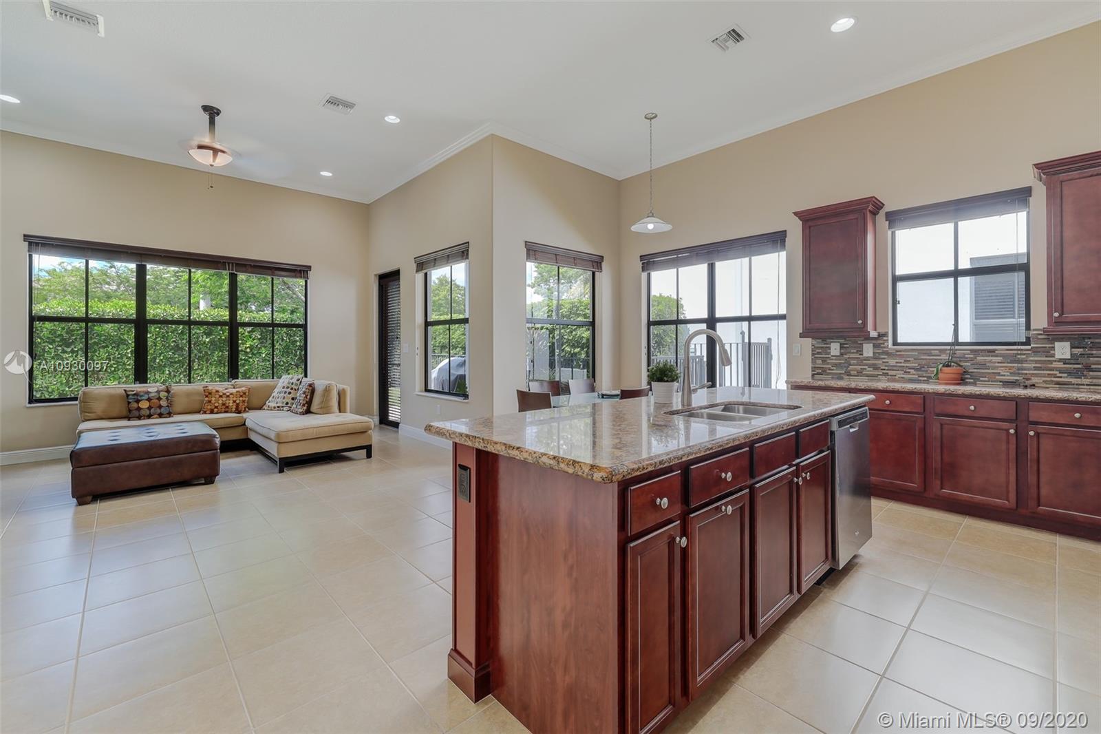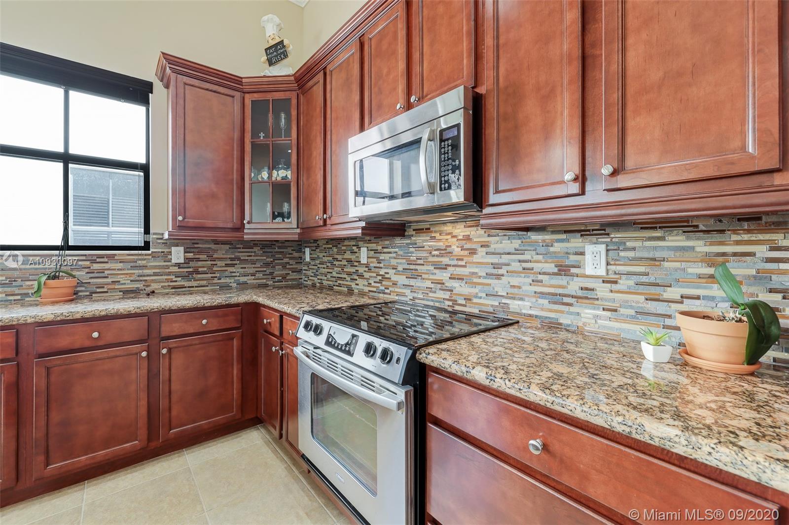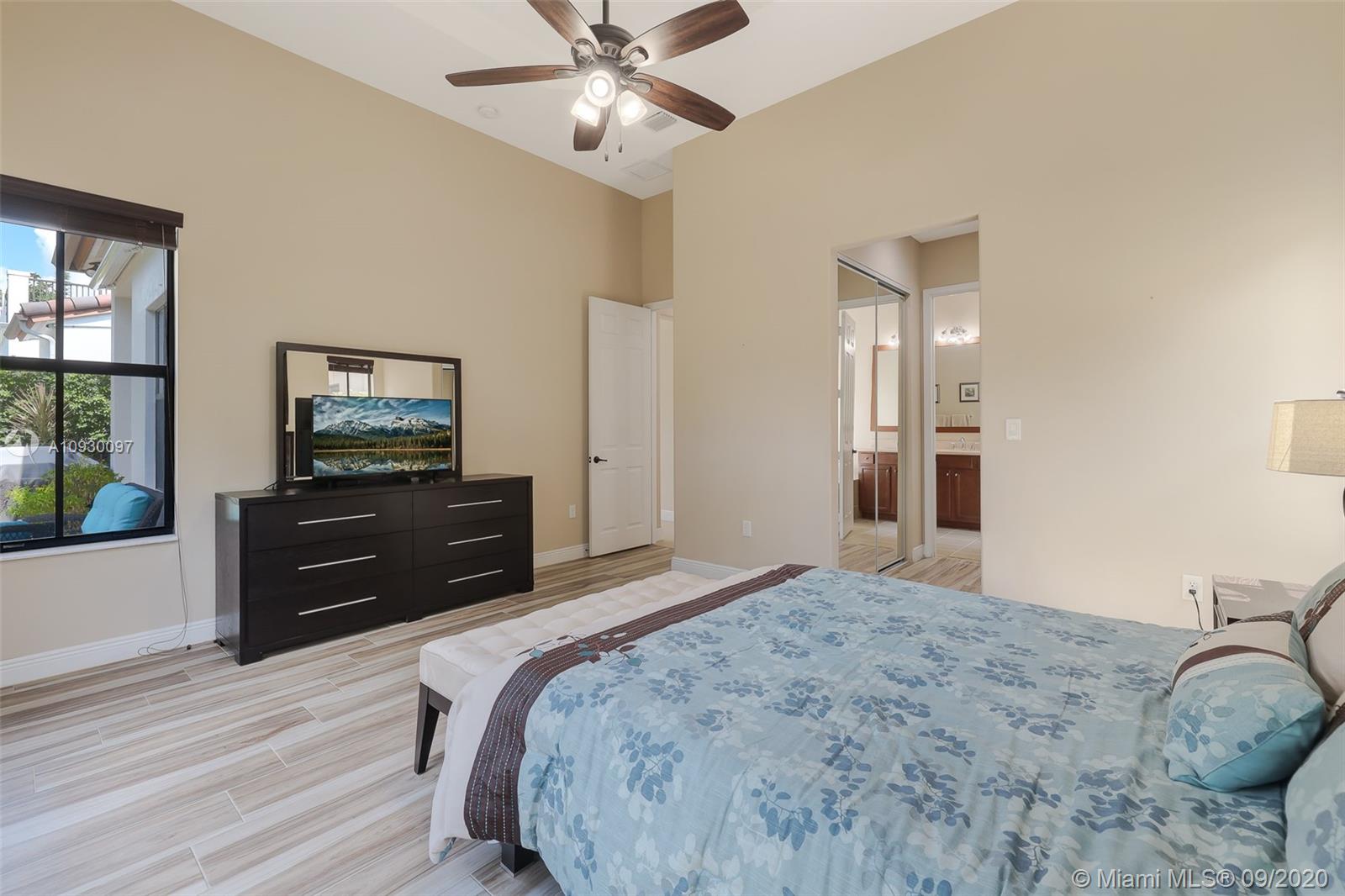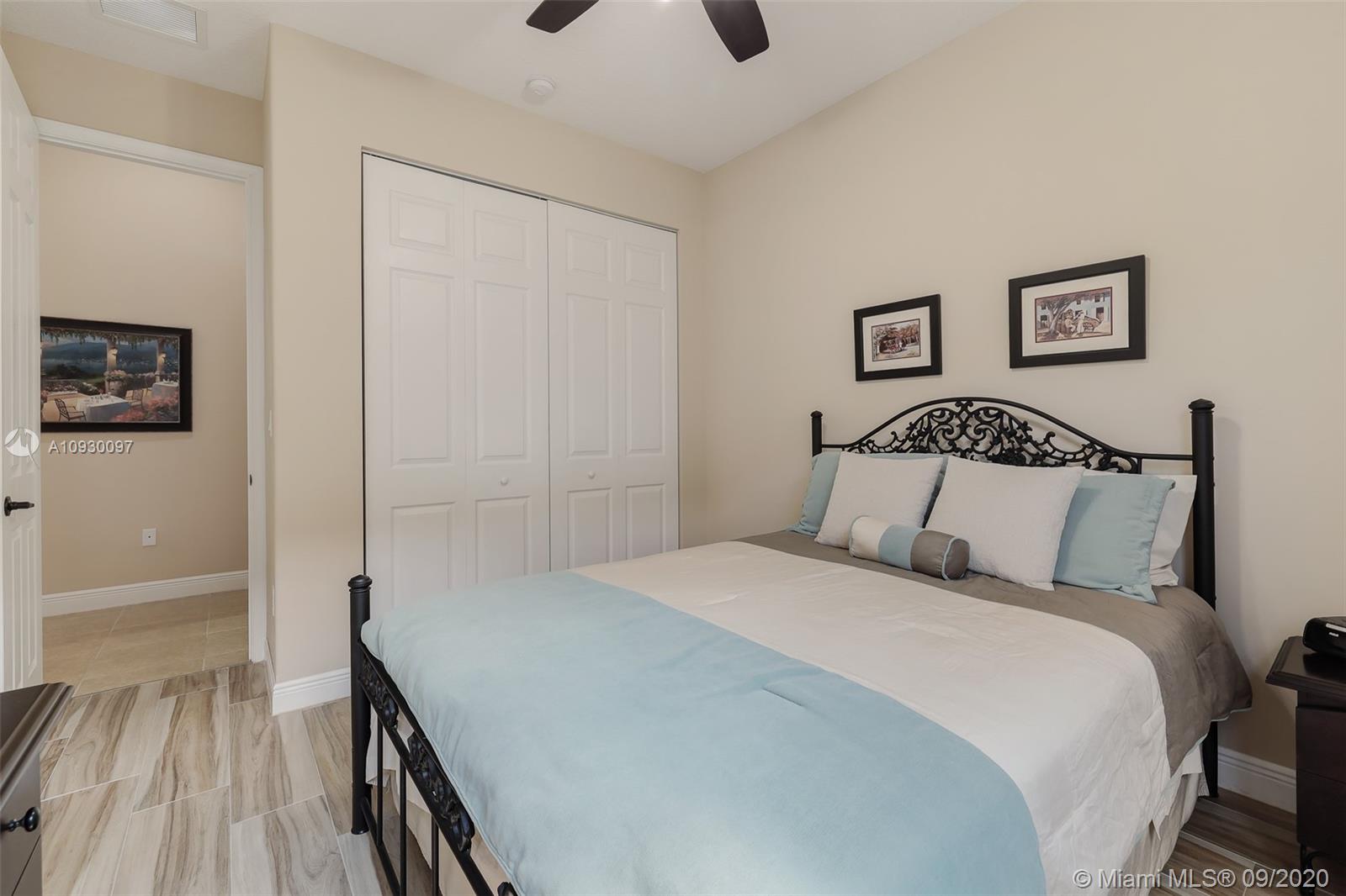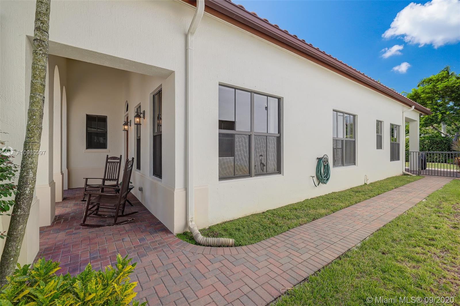 Stunning three bedrooms plus a Den, three full bathrooms home in desirable gated community- Monterra surrounded by pristine lakes and natural preserves. This rarely available Chapala Model features elegant 12' raised ceilings throughout, dramatic coffered ceiling in master suite, textured finish walls & ceilings, hurricane doors, hurricane panels. Walk through the luxurious foyer, into an open & bright formal living and dinning room area, flowing well with accent walls, open kitchen with stainless steel appliances, wood cabinetry with 42" upper cabinets, granite countertops with 4" backsplash, overhead recessed lighting. Community features resort style amenities including over 8,500SF clubhouse & pool, tennis & basketball courts gym & more. Cooper City is known by having the best schools.
