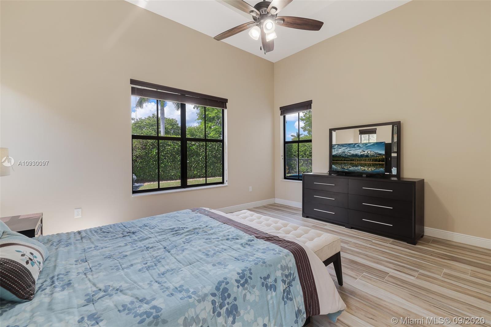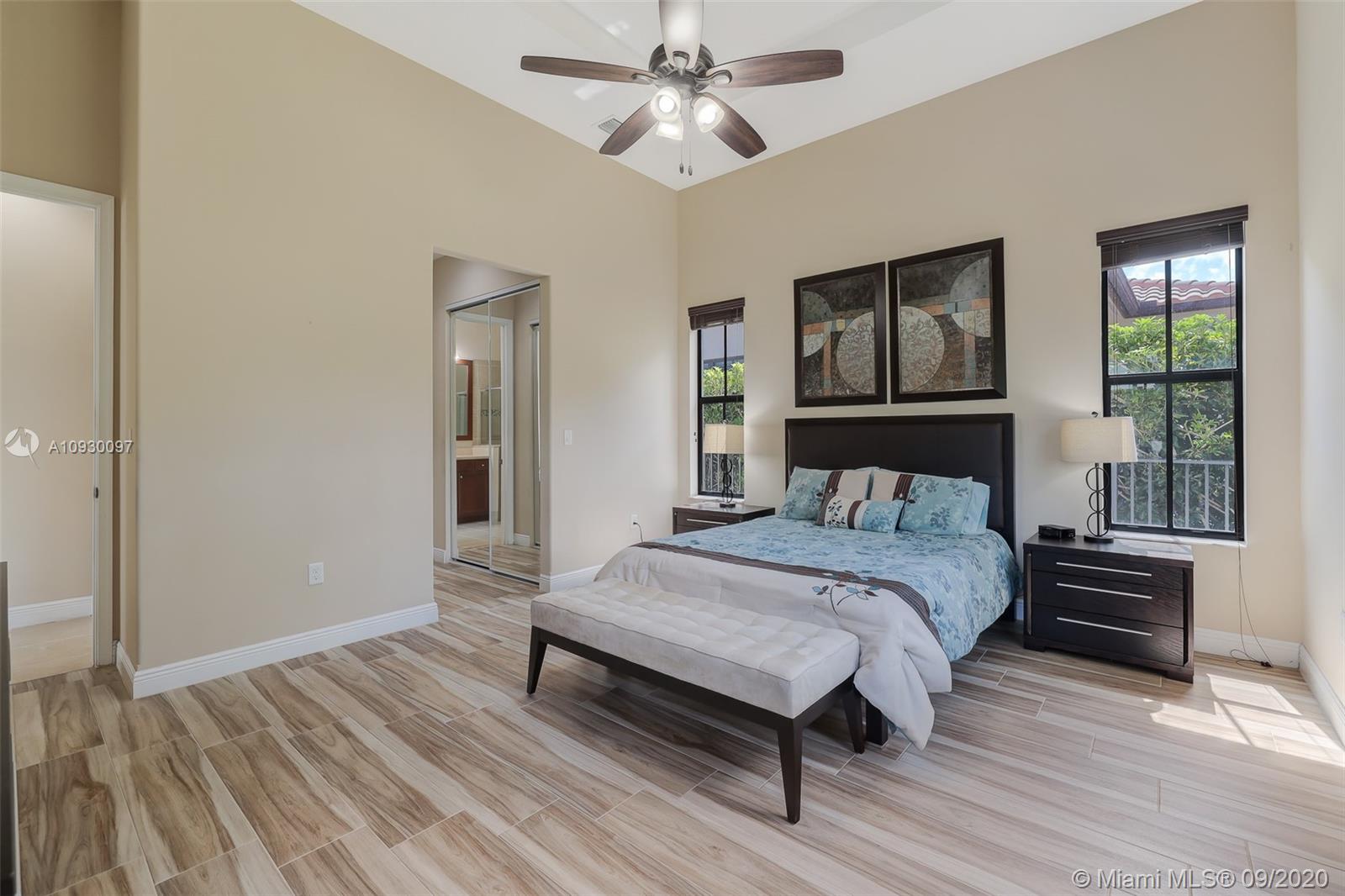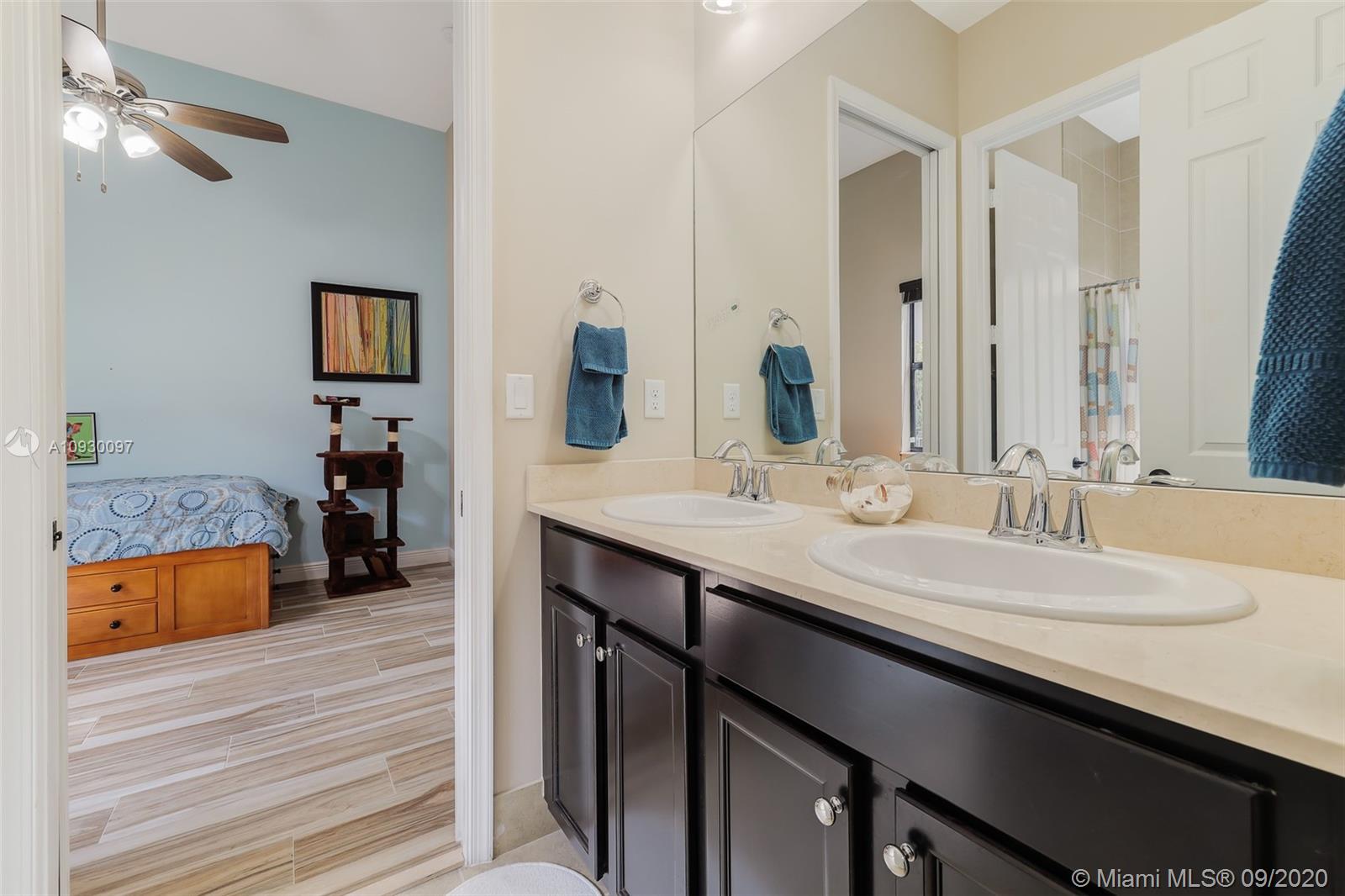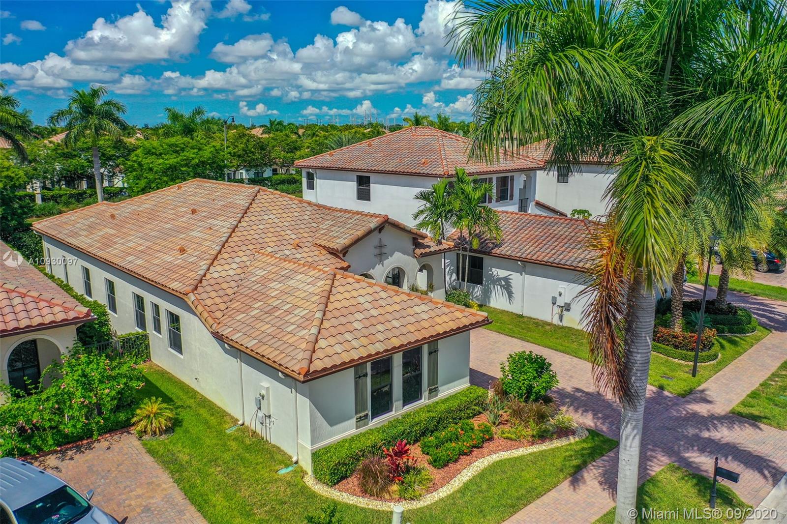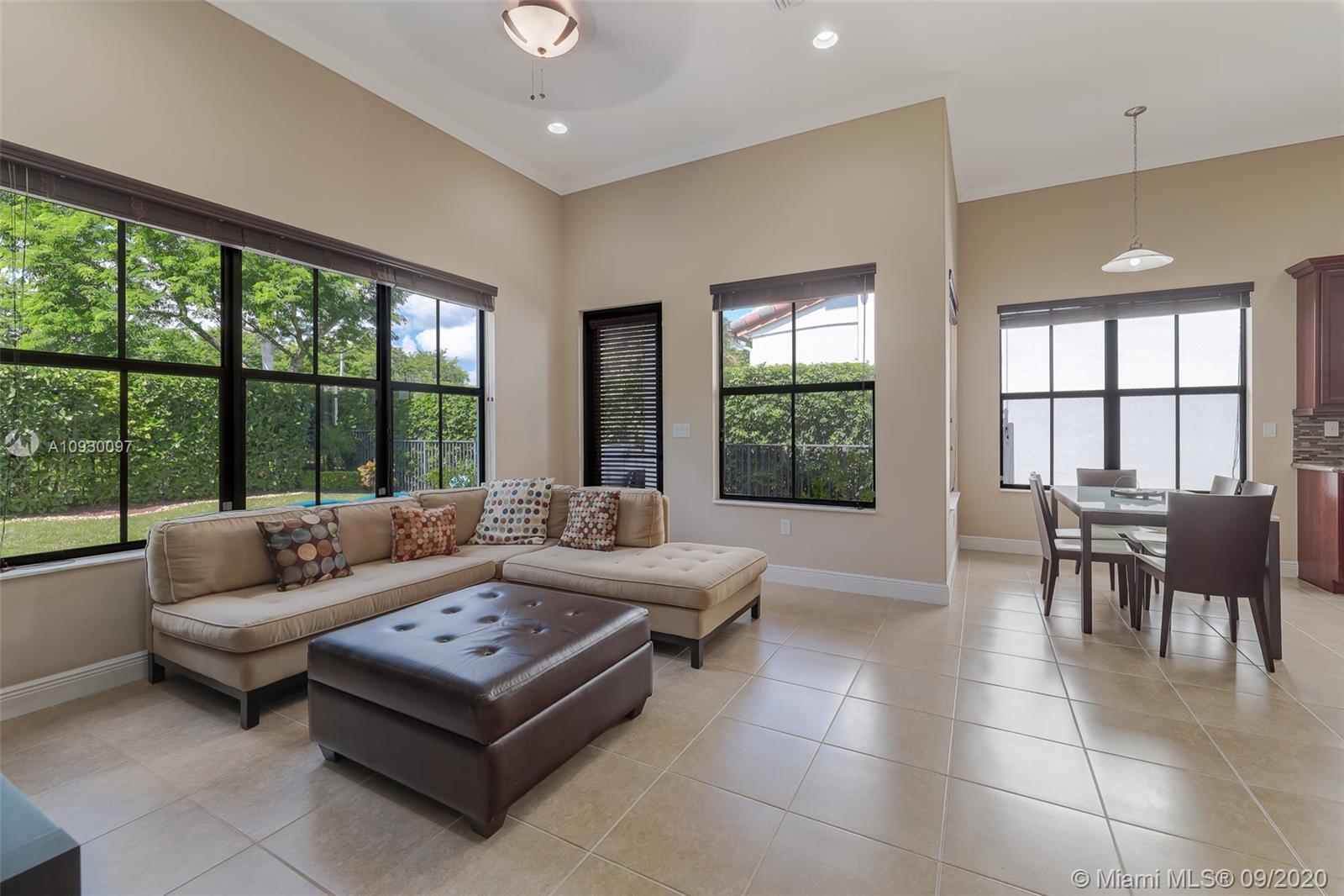 Stunning three bedrooms plus a Den, three full bathrooms home in desirable gated community- Monterra surrounded by pristine lakes and natural preserves. This rarely available Chapala Model features elegant 12' raised ceilings throughout, dramatic coffered ceiling in master suite, textured finish walls & ceilings, hurricane doors, hurricane panels. Walk through the luxurious foyer, into an open & bright formal living and dinning room area, flowing well with accent walls, open kitchen with stainless steel appliances, wood cabinetry with 42" upper cabinets, granite countertops with 4" backsplash, overhead recessed lighting. Community features resort style amenities including over 8,500SF clubhouse & pool, tennis & basketball courts gym & more. Cooper City is known by having the best schools.