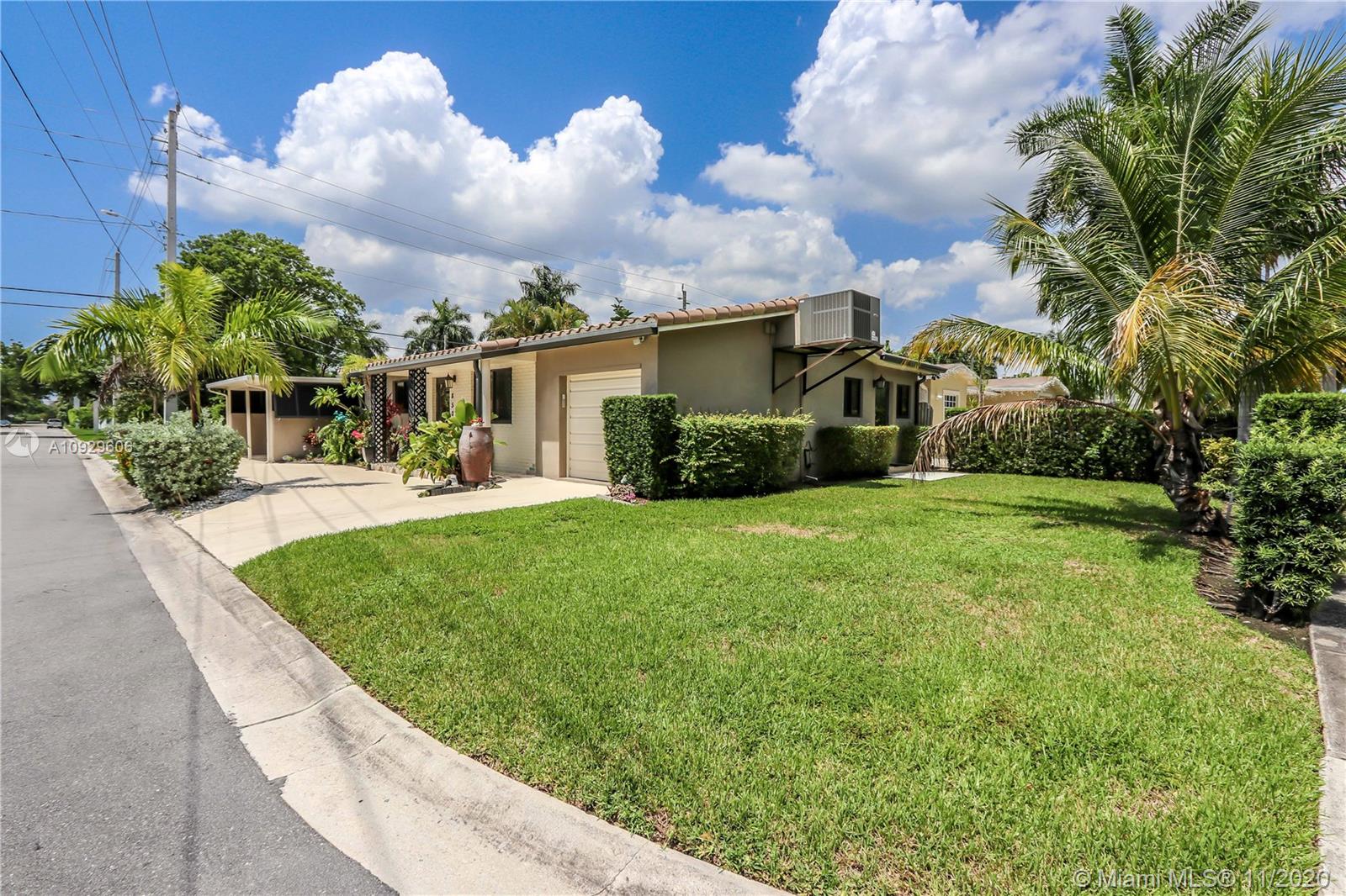 3 Bed/2 Bath CORNER LOT in the highly sought after Hollywood Lakes Section/East Hollywood. 3 bedroom currently being used as a Den/Office. This great home features Interior features along w/family room, formal dining and additional seating at kitchen, Home has tile and wood flooring throughout. Circular drive way, 1-car garage & double car carport. All high impact windows and doors! Newer A/C and roof. Room for a pool. There is a "chichier she shed" on the property, along with an Alarm system that has infrared cameras. You'll love living in Hollywood Lakes – A family friendly neighborhood nestled between the excitement of Downtown Hollywood and beautiful Hollywood Beach, also just blocks to Holland Park.