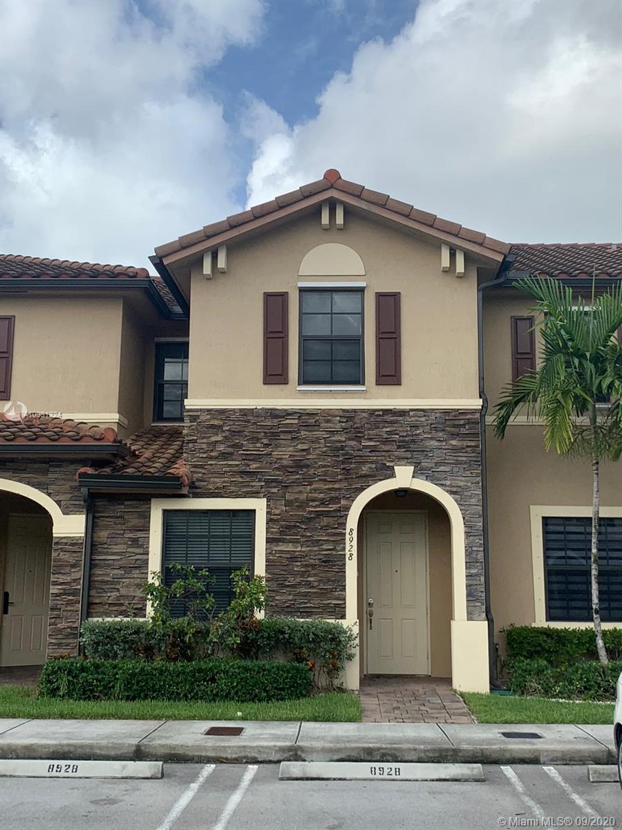 Beautiful 3/2.5 townhouse in the ARAGON gated secured community. Home features hardwood flooring throughout the first floor, stainless steel appliances, washer / dryer on the second floor, fenced yard, 2 assigned parking spaces. Occupied only by the original owners, who have taken very good care of the home. Community amenities include 24 hour security, clubhouse, fitness center, playground , plenty of green area for walking. Centrally located next to the 826, I-75 and the turnpike. Showings by appointment only. Face masks and shoe covers required.