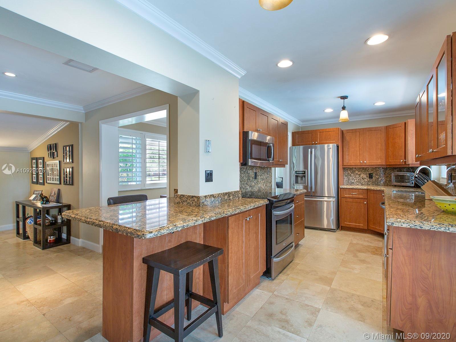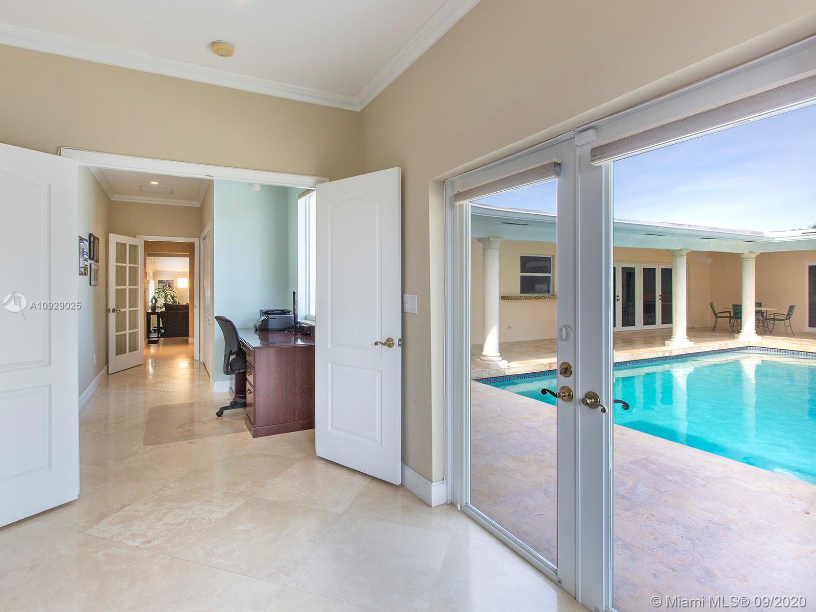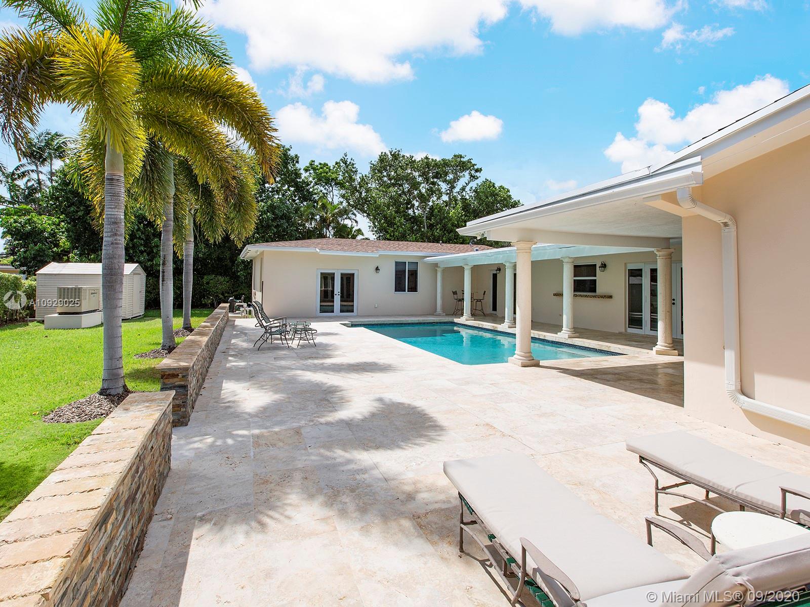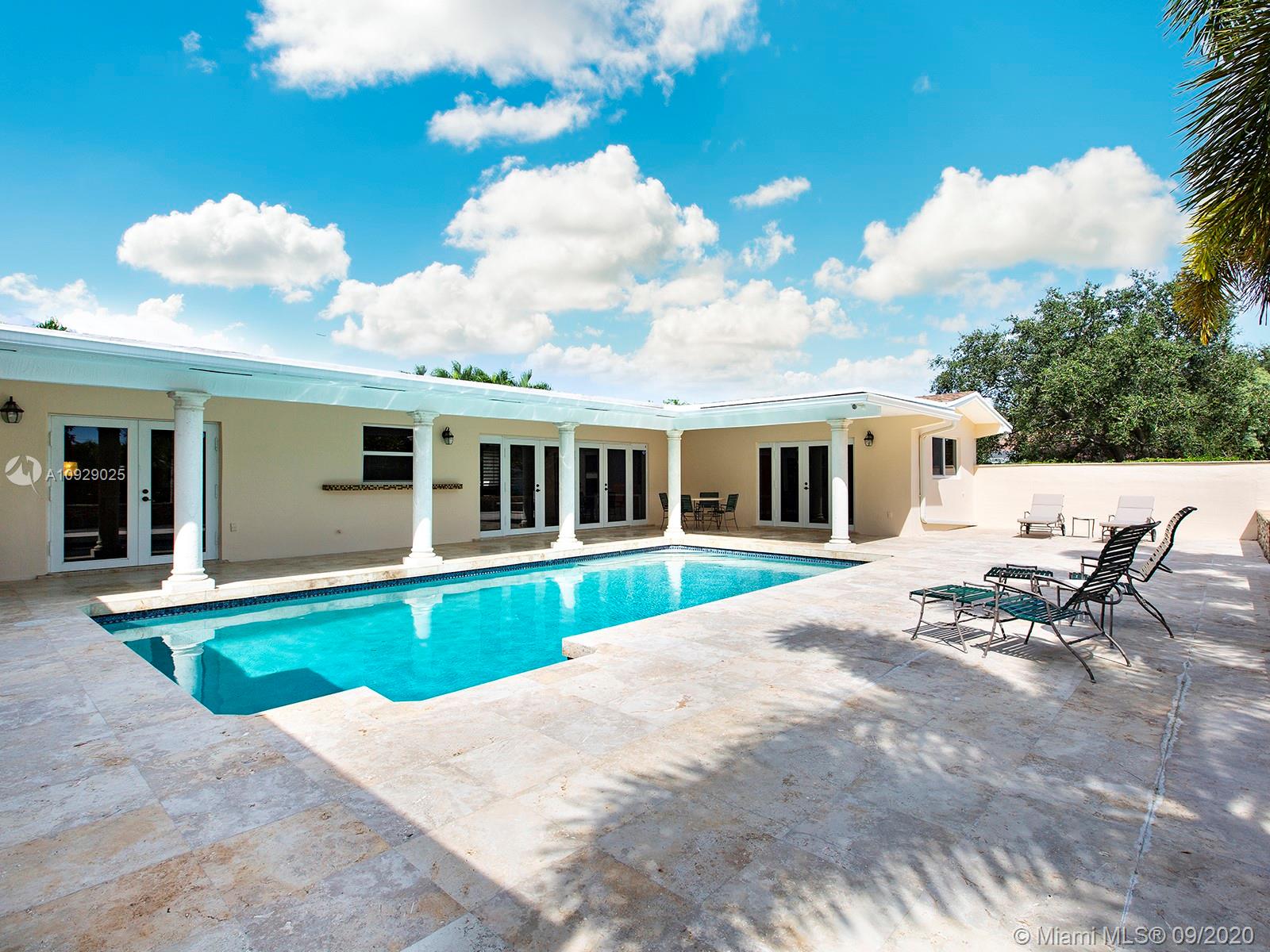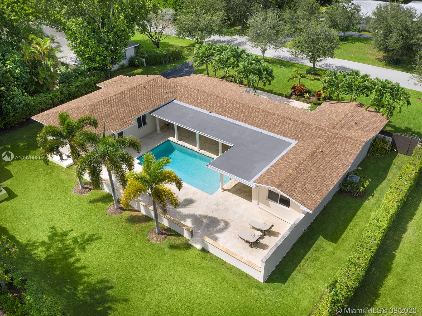 Beautiful and affordable central Pinecrest 4/4 family home on a nice quiet street! Tons of updates including: 2-year old roof still under warranty, impact glass windows and impact French doors throughout, full house generator with underground gas tank. Marble and wood floors, updated bathrooms, and a split plan with a huge master suite featuring dual closets and a huge bathroom. Nice and relaxing pool-patio (facing south), iron gates, and more. Walk to Pinecrest schools!