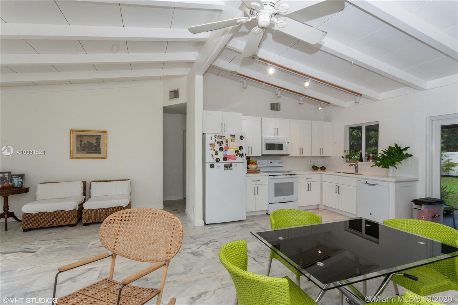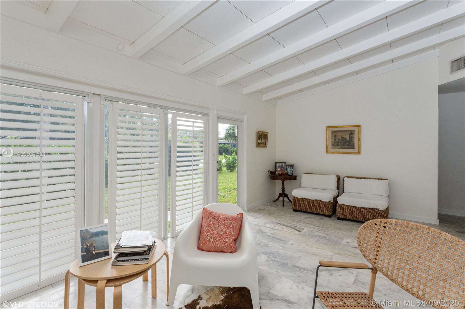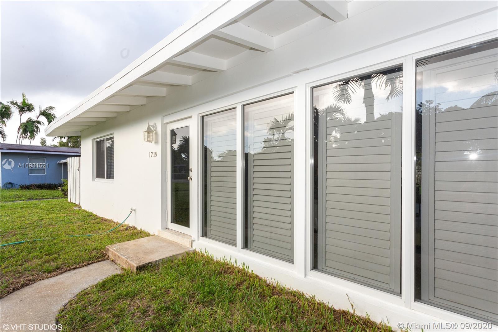 New to market, this remodeled Mid-Century Modern features high ceilings with exposed beams, 12"x24" honed Carrara marble flooring, renovated kitchen and bath & recently installed impact windows & doors. The plantation style shutters allow natural light to fill the home. A partition was added to the second bedroom allowing for a master walk-in closet, & an office with its own entrance. Partition can easily be removed to return office/closet to 2nd bedroom. Impact rated french doors lead to a large screened patio overlooking the large fenced lot, with access to the laundry room located at the rear of the carport. Located in Middle River Terrace you're walking distance to Wilton Dr., Downtown Ft. Lauderdale, shopping & the beach. Home is in good condition with potential for expansion.