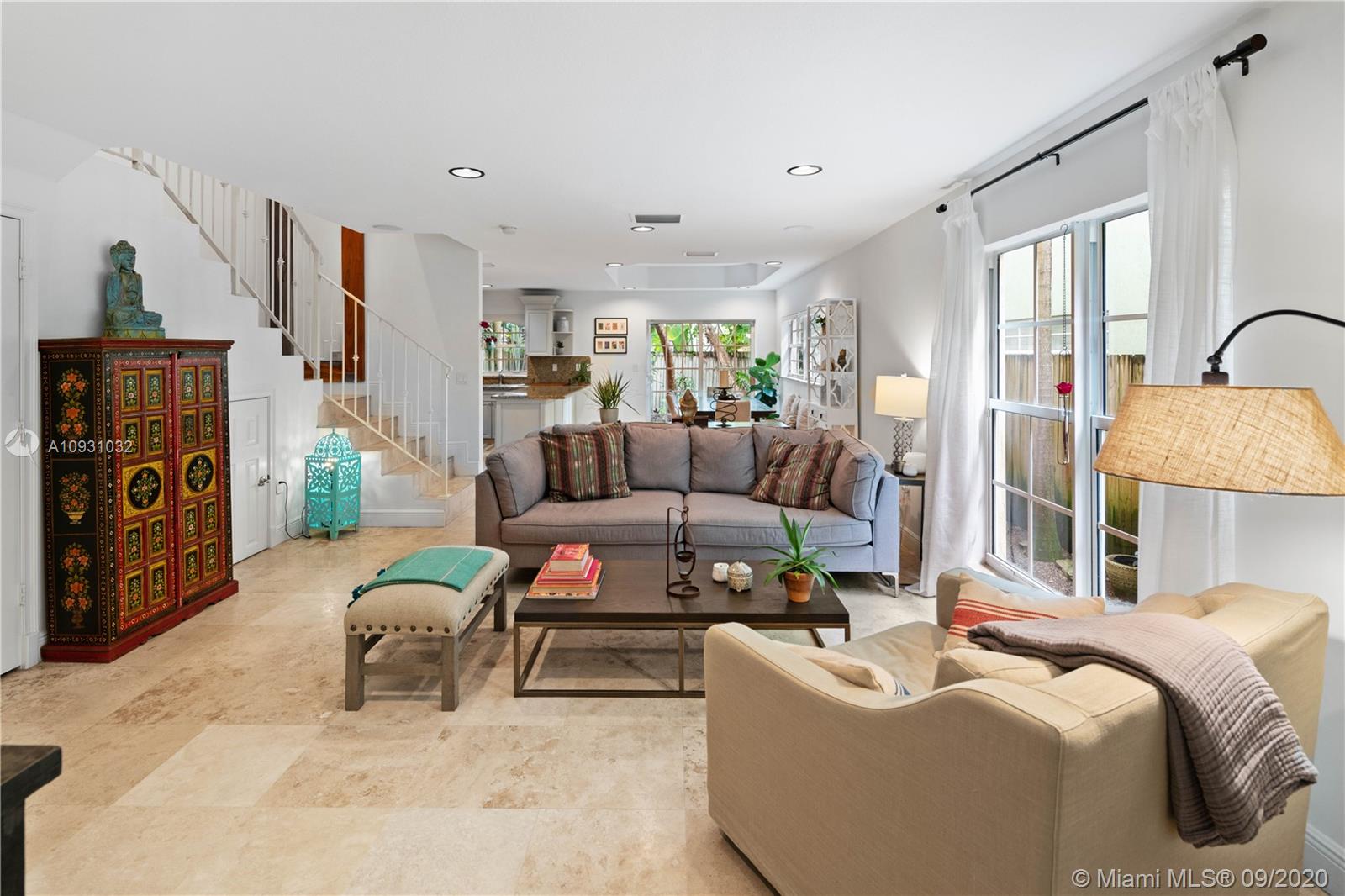 Very well maintained, 3 bedroom, 2.5 bath town home on one of the coolest Center Grove streets with its own Art Festival. Impact doors and windows. Travertine marble floors on the first level and hallway, wood floors in the bedrooms. Open floor plan with lots of natural light in tropical setting. Gated parking plus the garage. Wood kitchen and bathroom cabinets. Granite countertops. Low maintenance bricked private patio. Full size washer and dryer on the second floor. Walking distance to dog and children's park, tennis courts, restaurants, shops, Milam's and Fresh Market. Not in a flood zone. Please view the unbranded virtual tour : https://www.zillow.com/view-3d-home/34e3d17a-4170-4bbd-8a2c-dc076ecf4640/?setAttribution=mls&utm_source=email&utm_medium=email&utm_campaign=emm-3dtourpublished