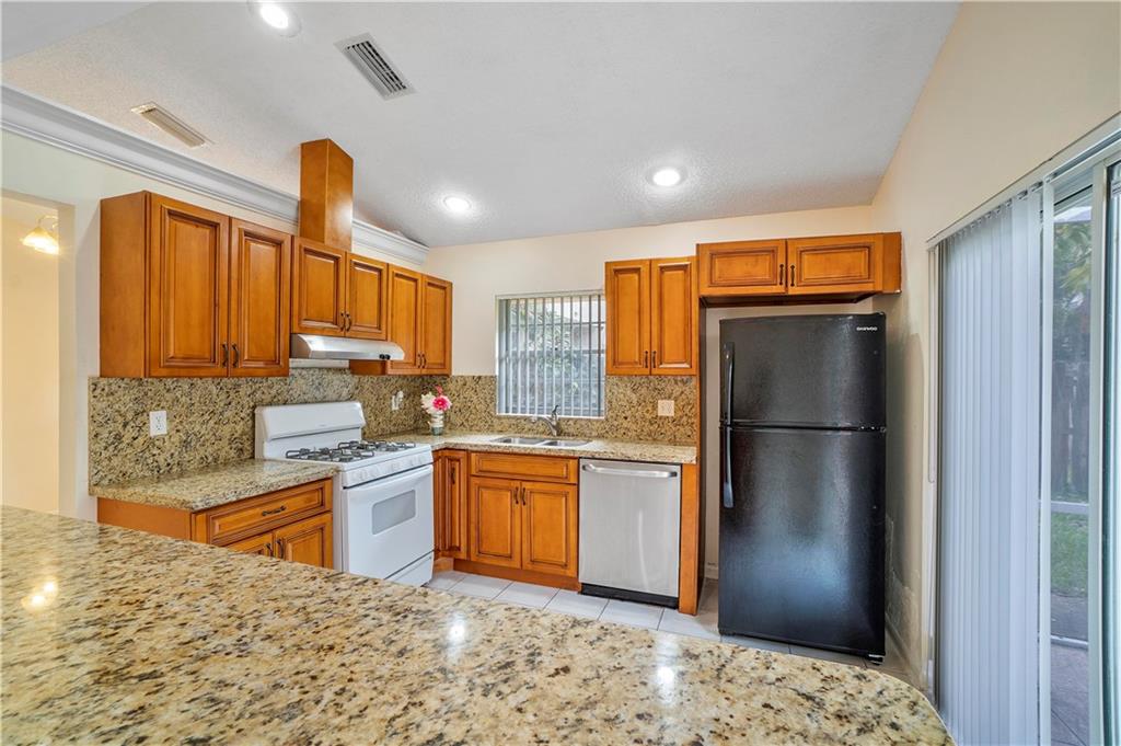 Beautiful single-family home in a great community with low association fee. This home features tile floor all over the house and high ceiling spacious living room. Kitchen with beautiful wood cabinets and granite countertops, open space to the living room. All bathrooms have wood cabinets and granite vanities. The Master bedroom has a walk-in closet, master bathroom has separate vanities, bathtub, and shower areas. This home also has a spacious screened patio with fenced backyard, 2 cars garage, and nice driveway. Great convenient location close to Sawgrass Mills Mall, Sawgrass Express Way, library, supermarkets, restaurants.