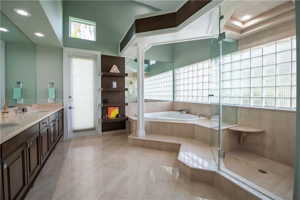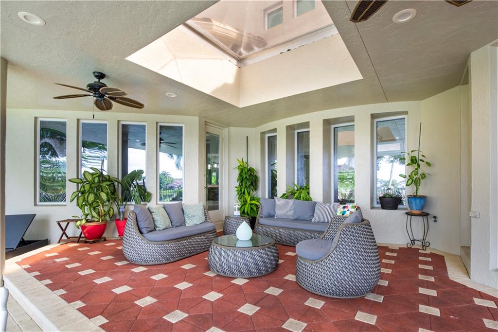 Architectural Gem! Move in Ready Contemporary Custom Estate in Exclusive Gated Plantation Palms! Fantastic water views throughout the home. Stunning Marble floors flows throughout the first floor. Custom designed chef's kitchen with center island, Stainless Steel appliances,glass tile back splash,beautiful stone counter tops, Walk in pantry and more. Split plan features Master bedroom suite on the first floor and guest room/office with private bathroom. Three bedrooms and two bathrooms with huge finished loft area upstairs. Upstairs features include high impact windows, wood flooring and two renovated bathrooms. Summer kitchen and beautiful covered patio over-look the lake.3rd car gar currently used as a full Air/Condition gym but can be converted back if needed. Walk in and fall in love!