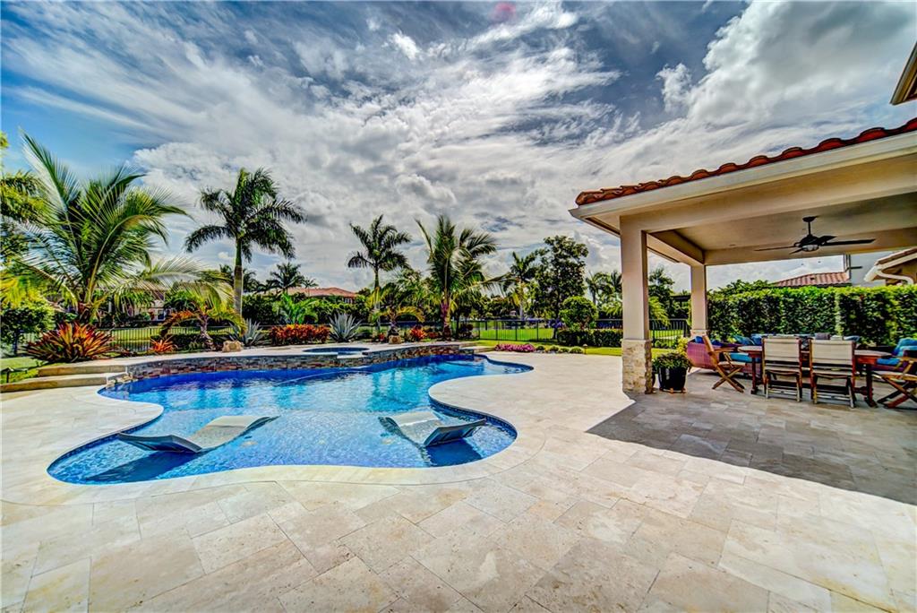OVER $200K In Upgrades! Stunning Rustic Inspired Bolano Model 5 Beds, 4.5 Baths Waterfront Pool Home On Large Fenced Lot, 3-Car Garage w/Amazing Finishes! Double Door French Door Entry, Updated Irrigation System, Amazing Expanded Chef Kitchen w/Jen Air Appliances, Double Oven, & Huge Island, Plantation Shutters Throughout, Updated Light Fixtures & Window Treatments By Interior Designer, Built-In Bar, Updated Wood Work, Crown Molding, Backyard Tropical Oasis With Custom Salt-System Pool & Spa w/Water Features, Retractable Sun Awning, Custom Built-In Family Room Wall Unit w/Soaring Ceiling, Coffered Ceiling, Built-In Library, Spacious Master Bed w/Custom Walk-In Closet, Resort-Style Bath, Meticulously Maintained, Resort-Style Amenities, A-Rated Schools, Circular Driveway, Move-In Ready!