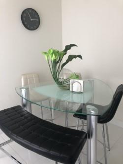 This beautiful, modern and contemporary bright 3 bedroom 3.5 bathroom unit is equipped with the most up to date technology and modern furniture, every piece of furniture was placed thinking on your comfort. Wi-Fi ready and key-less entry. This floor-plan is wonderful for entertaining. The open terrace space enables hosts to enjoy their guests even as they prep in the kitchen. The modern kitchen features a deluxe stainless steel appliance package and quartz counter top. Walk in closet and master bath with dual sinks and glass-enclosed shower. The site of this property allows parking for 4 extra driving spaces (the largest on this block) making this property more comfortable. Resort style clubhouse amenities are available for you to enjoy! just think of it and you got it.