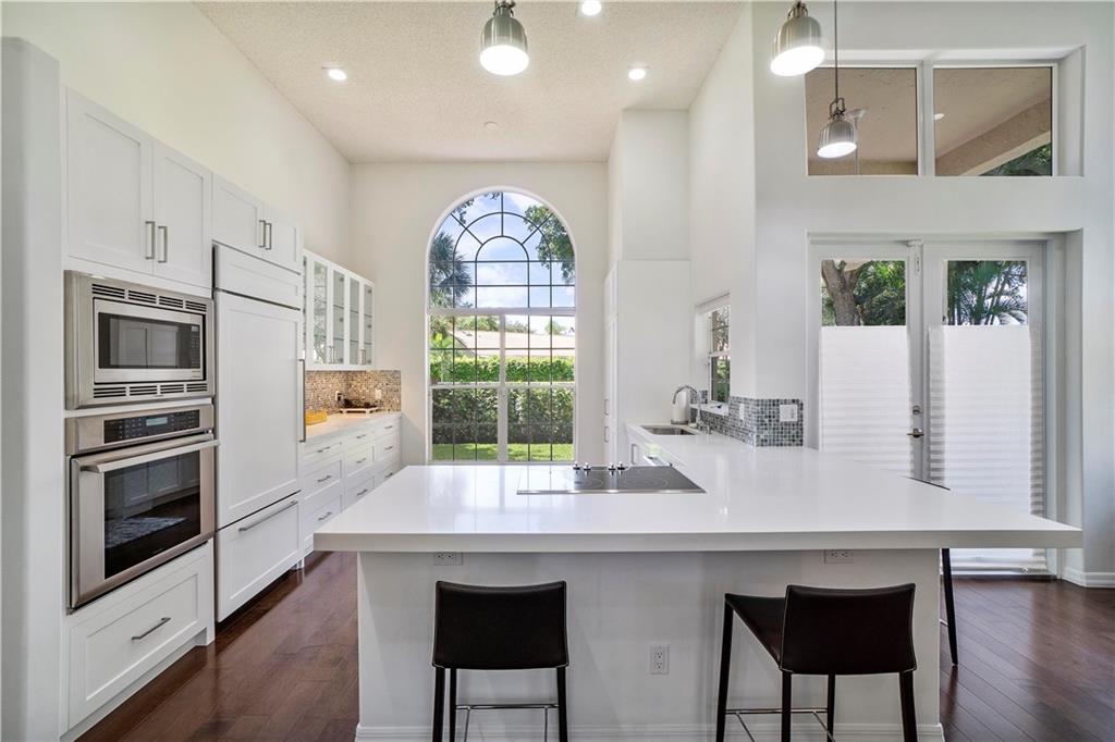 See it to believe it. Completely remodeled, stunning 3/2 Townhome, ground floor corner unit in prestigious Boca Golf Club All-Ages Somerset-C community. NO MEMBERSHIP required. Open floor plan with custom eat-in kitchen boasts high-end white cabinets/glass doors and pantry with Quartz counter tops and a complete appliance set from Thermador & a Sub-Zero Refrigerator! Real Wood floors throughout all rooms. Swarovski Crystal lighting, 14 ft ceilings, Impact Patio doors. floor to ceiling windows in gathering room and owners bedroom, rounded wall corners, Frameless shower door, double custom closets in owners suite and custom closet in guest bedroom, LG washer/dryer set and cabinets in laundry room, Nest thermostat, A/C- 5 yrs new, large patio area, close to pool/spa. Great schools & shops.