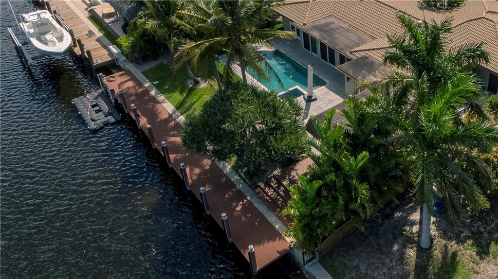 Great lot in Cypress Lakes with 98 feet of water frontage. 700 sq feet dock with LED lighting. Heated pool, fenced yard, and circular paved driveway. Updated kitchen white quartz waterfall, gas stovetop, high end appliances, porcelain plank flooring, impact glass throughout, wide lake views, updated saltwater pool.