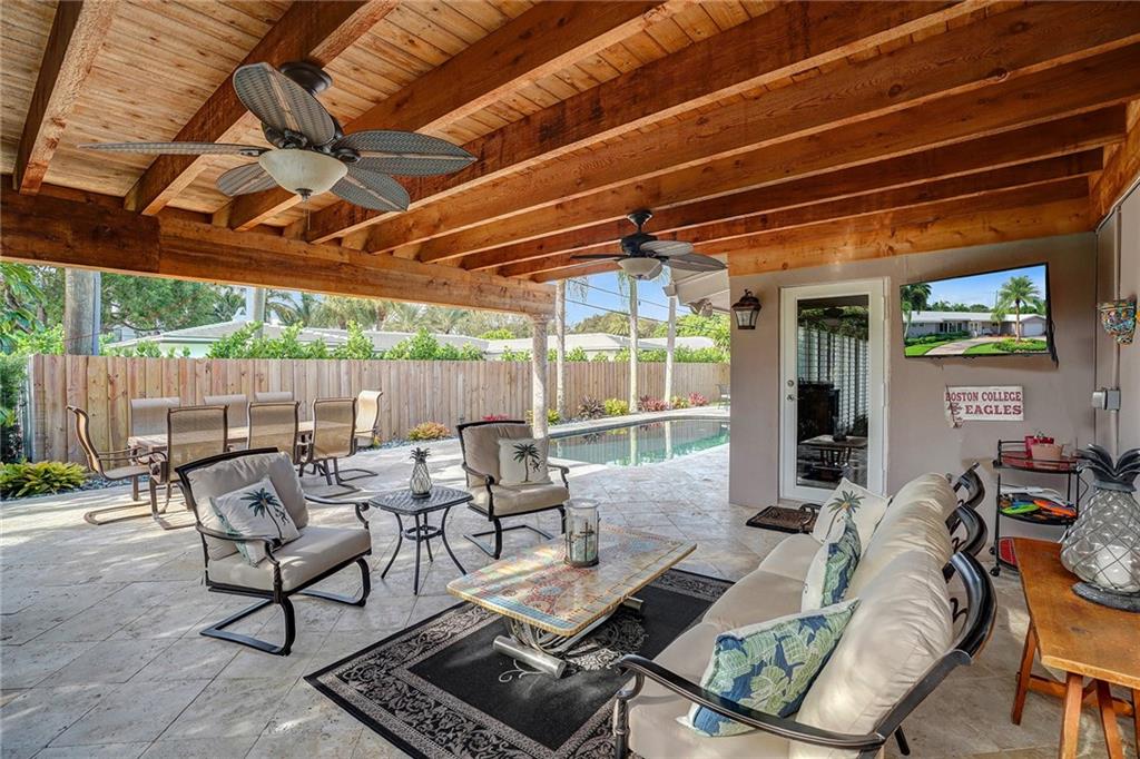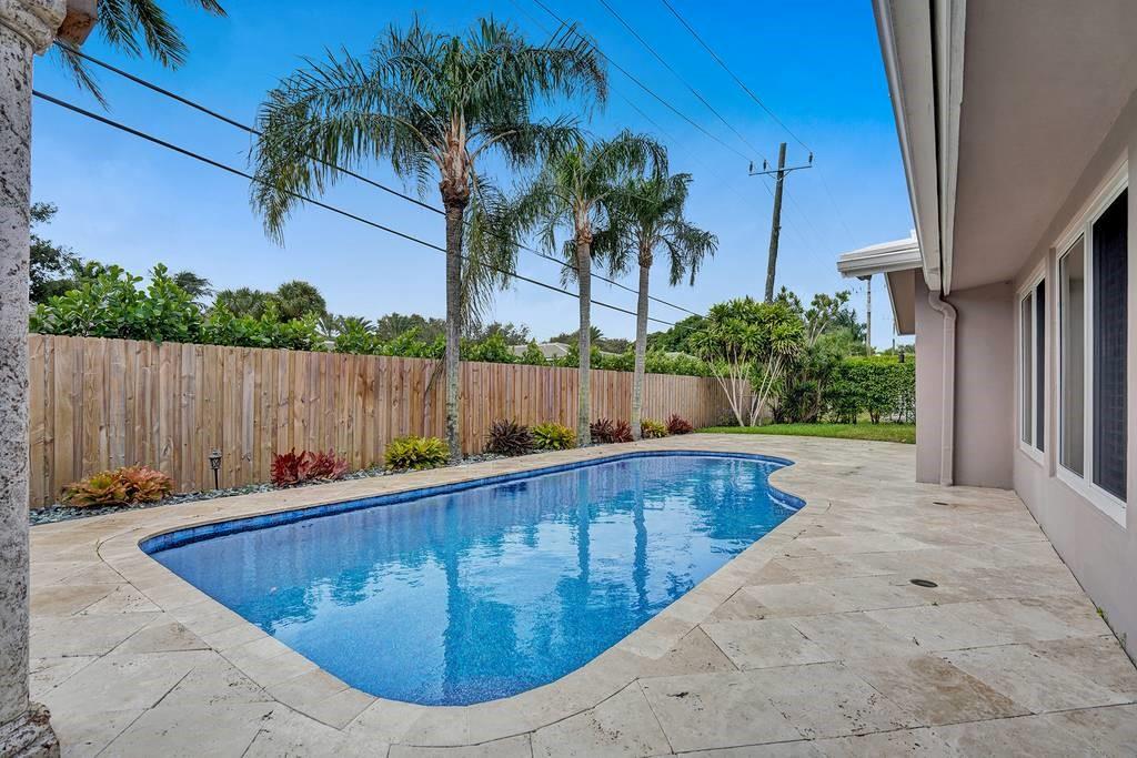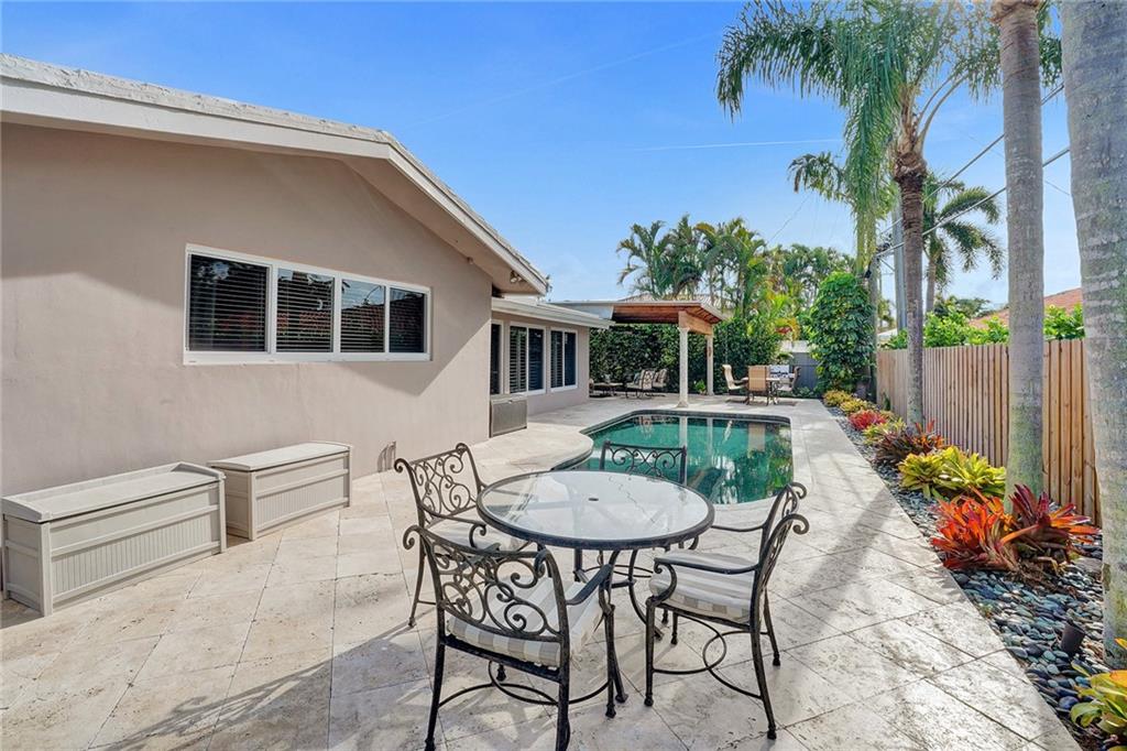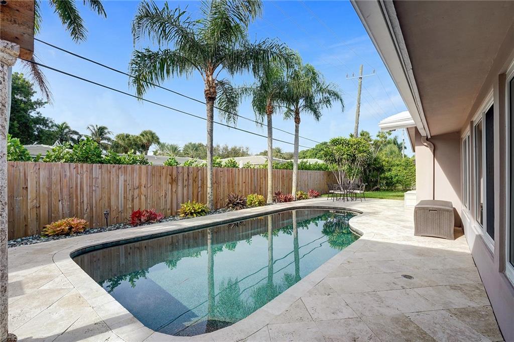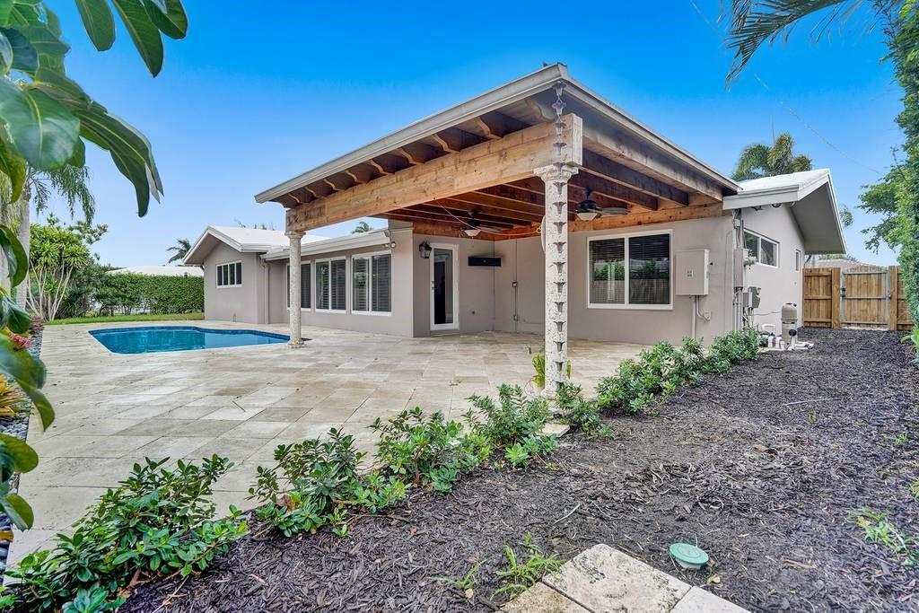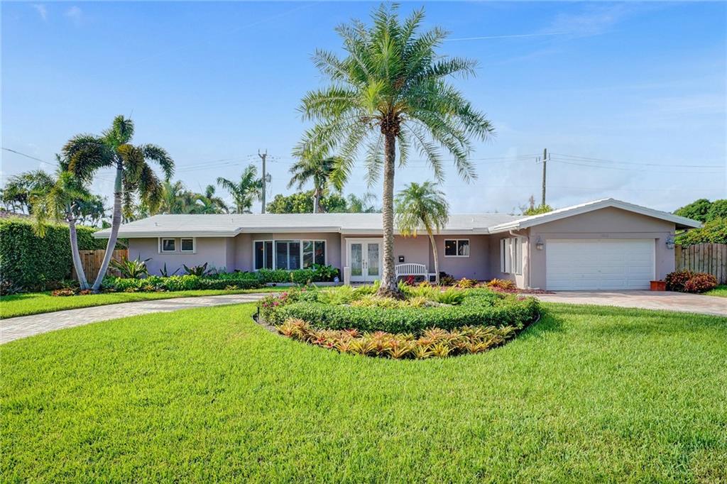 HUGE PRICE IMPROVEMENT!! Perfectly situated in the heart of Coral Ridge Country Club neighborhood and ready for new owners, this residence features 3BR/2BA/2CG, foyer entry, formal dining & living areas, hardwood floors, renovated kitchen with built-in buffet and breakfast nook, family room overlooking the pool area, generous rooms, two car garage. The lot is 10,000sf on a quiet street featuring circular driveway in front and a fully fenced back yard. The tropical cabana is perfect for entertaining family & friends poolside. Plenty of yard space for gardening and pets. Ideal location for walkability to beach, proximity to Coral Ridge Country Club, great schools, restaurants & entertainment. Easy drive to downtown Fort Lauderdale and the airport. Must see!!!