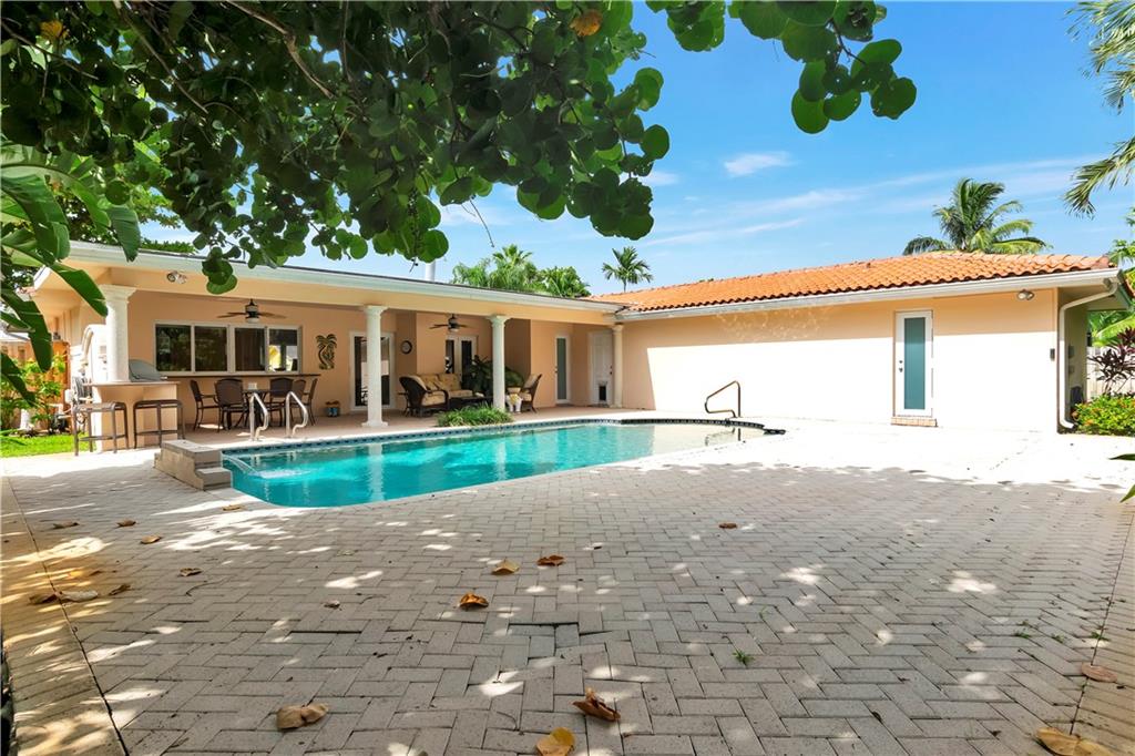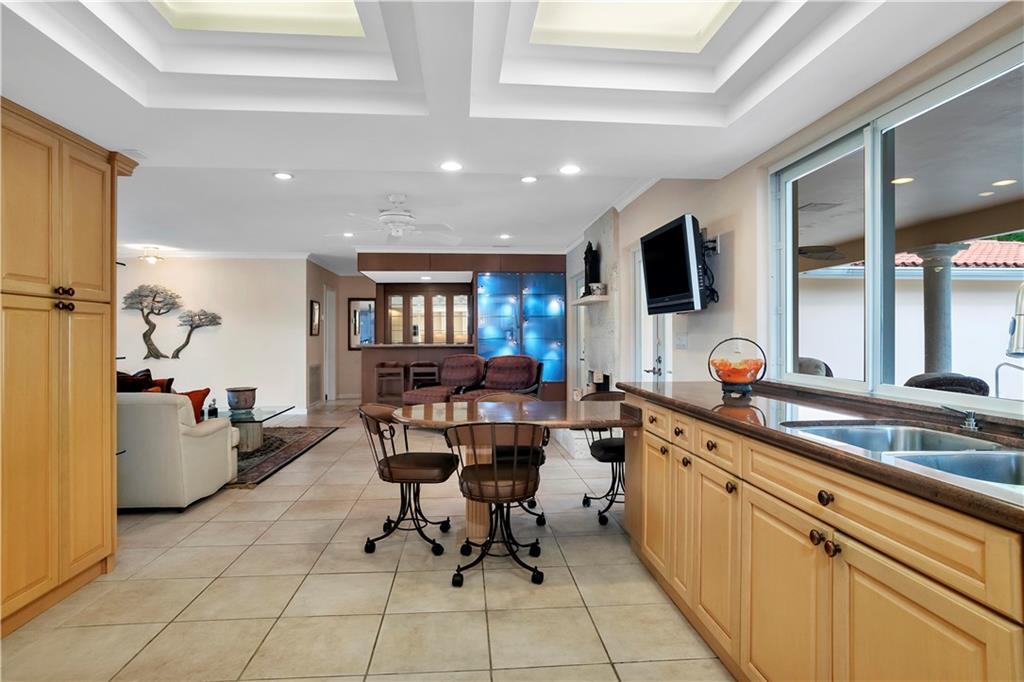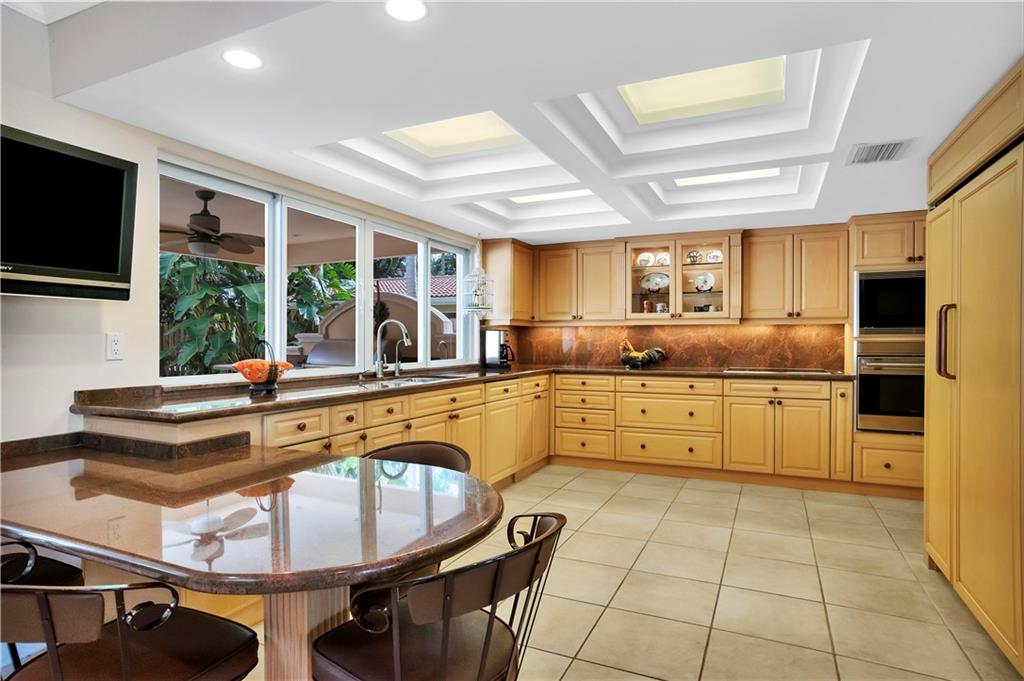 This tastefully updated 3 bed, 2 bath home has the open floor concept. Wolf & Subzero appliances with high end wood cabinets and granite, full wet bar & fireplace. Enjoy the views of the out door seating area, pool, & summer kitchen under extended covered patio perfect for entertaining. Both Master and 2nd bath beautifully updated 2017, basket weave granite flooring, high end fixtures, granite & vanities. Built-ins in all bedrooms with new wood flooring. Impact windows and full house generator. Walk thru house using 3D view... https://my.matterport.com/show/?m=XzTn9KGPsa7&mls=1