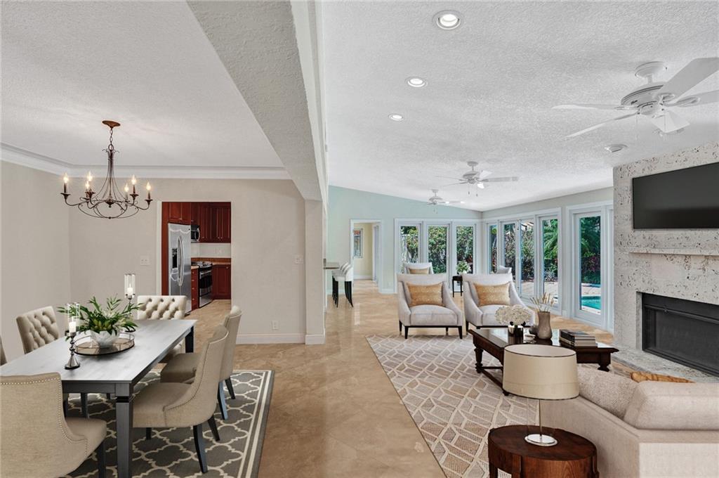 Fantastic 4 bedroom 3 bath home in the heart of Coral Ridge Country Club. Open and spacious floorplan totaling 2,700 square feet. Beautiful marble flooring throughout, crown molding and recessed lighting. Impact windows and doors! Huge living space with fireplace and pool views! Spacious bedrooms. All bathrooms updated! Beautiful and private backyard features pool, lush landscaping and grass area. Big laundry room with storage. 2 car garage!
