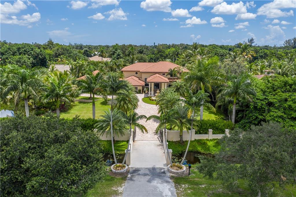 Sunshine Ranches privately-gated 6944SF/6BR/4.5BA sprawling estate. Interior boasts marble and hardwood flooring, granite surfaces, open kitchen, impact glass and more. Owner’s Suite opens to sweeping balcony/outdoor spiral staircase for access to grounds. Outside is a wonderland built with tranquility, health and entertaining in mind. Winding/circular drive leads past a private pond, up to 6-car (air-conditioned) garage. Impeccable grounds showcase lush foliage, landscape lighting and a tiki pavilion suitable for large gatherings. Carved pathways lead to a freeform, saltwater (heated/chilled) pool spanning 75’x40’ with lighted lap lane for the serious swimmer or triathlete, and expansive summer kitchen for the cool down. Truly unbelievable in every way and not to be missed. Show and sell.