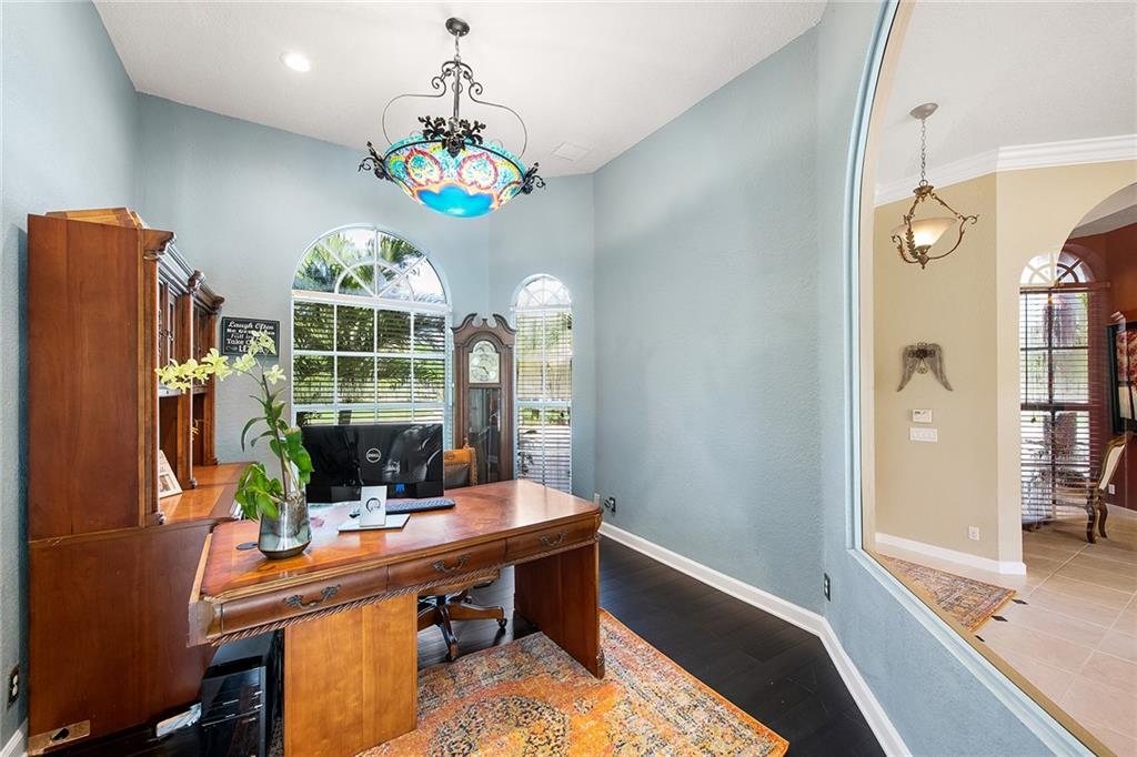 Custom built, one-story, split floor plan home featuring 4 bedrooms + office, 3.5 bathrooms and a brand new heated pool and spa on over an acre lot in Pine Tree Estates! Long, circular driveway and 3 car garage, fresh landscaping, new well, & fully fenced-in yard with a stunning Saturnia marble pool deck. Enjoy views of the pool from your Master suite which features dark wood floors, his/hers built-in walk-in closets, dual vanity sinks, whirlpool spa and walk-in shower. Home office has glass window which is perfect to keep an eye on the family as you work. Large, open kitchen with walk-in pantry, granite counters, wood cabinets, cooking island and stainless steel appliances. Crown molding and hi-hats throughout living areas. Lots of natural light in this spacious home. No HOA, A-schools!